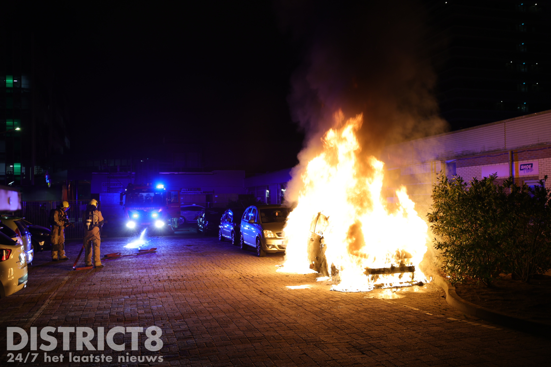 Rond 02.50 uur werd de brandende auto, die naast winkelcentrum De Hoven Passage geparkeerd stond, ontdekt. Nadat 112 was gebeld, werd de brandweer van kazerne Delft met spoed ter plaatse gestuurd.