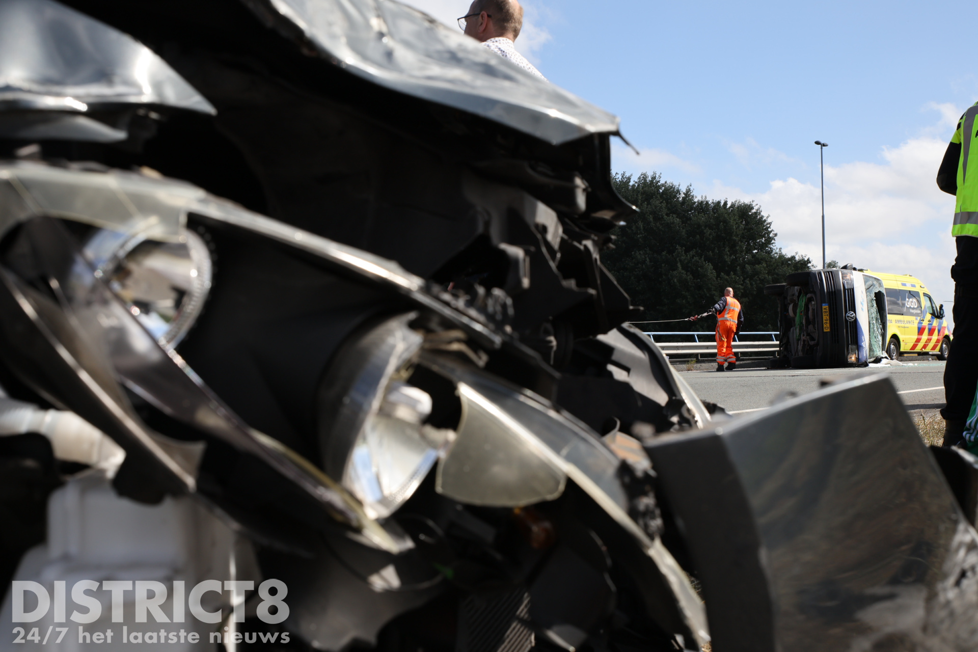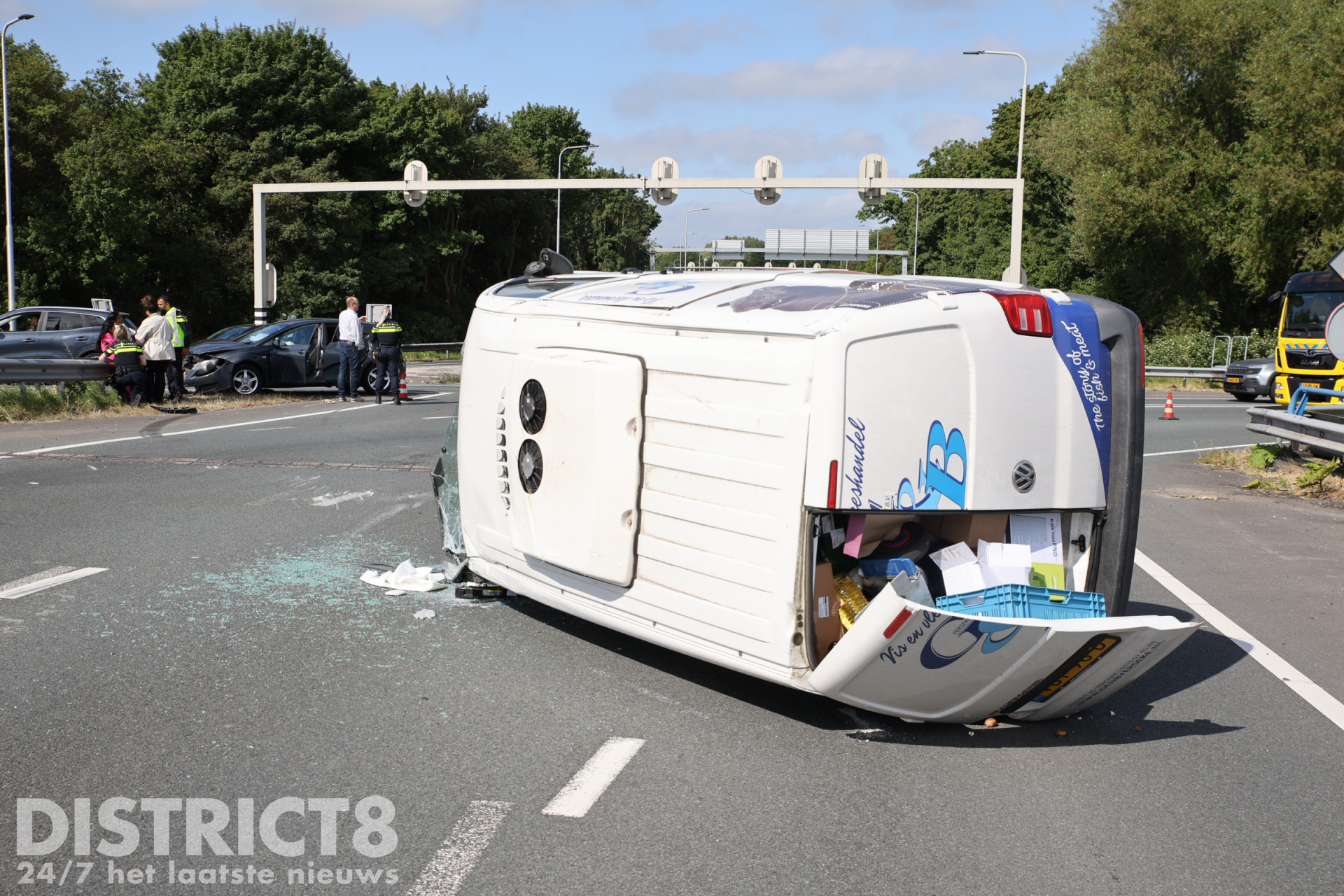 De brandweer heeft ter plaatse hand- en spandiensten verricht en konden hierna al snel vertrekken. Agenten hebben in de tussentijd bij de betrokkenen en getuigen verklaringen afgenomen om de oorzaak van het ongeval te achterhalen. Een berger heeft het busje weer op vier wielen gezet en daarna het busje en de personenauto meegenomen. Hoe het ongeval kon gebeuren is niet bekend.