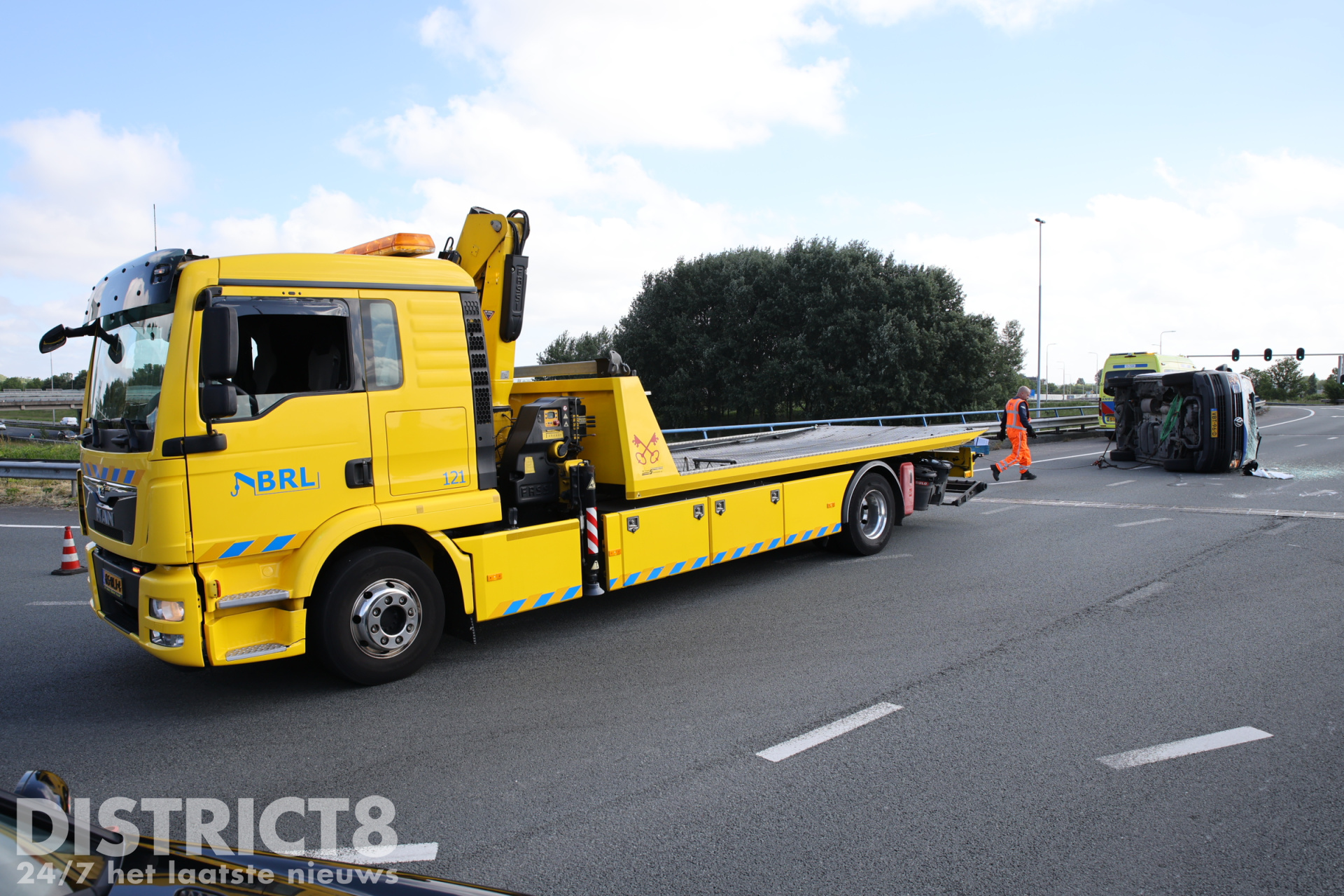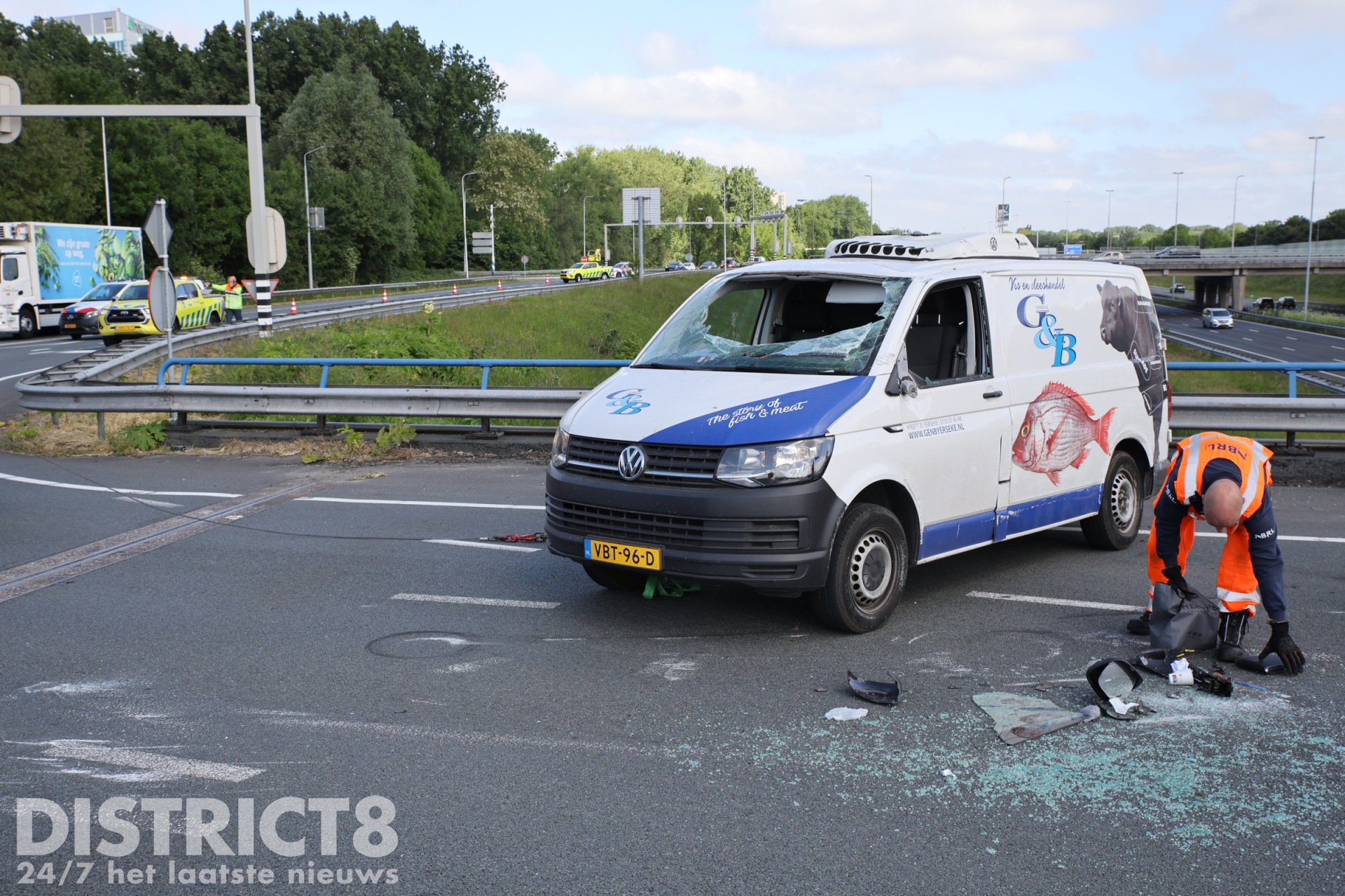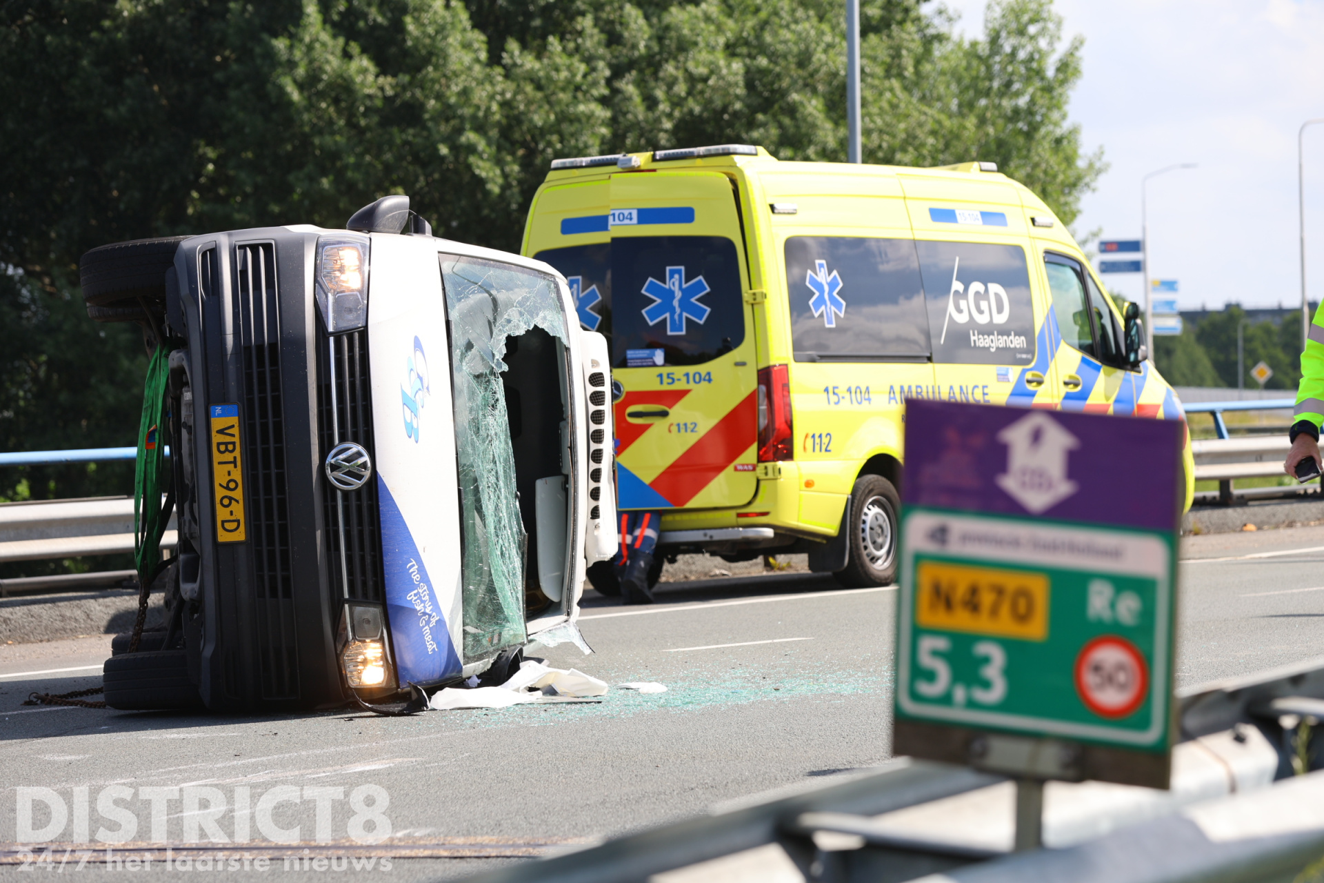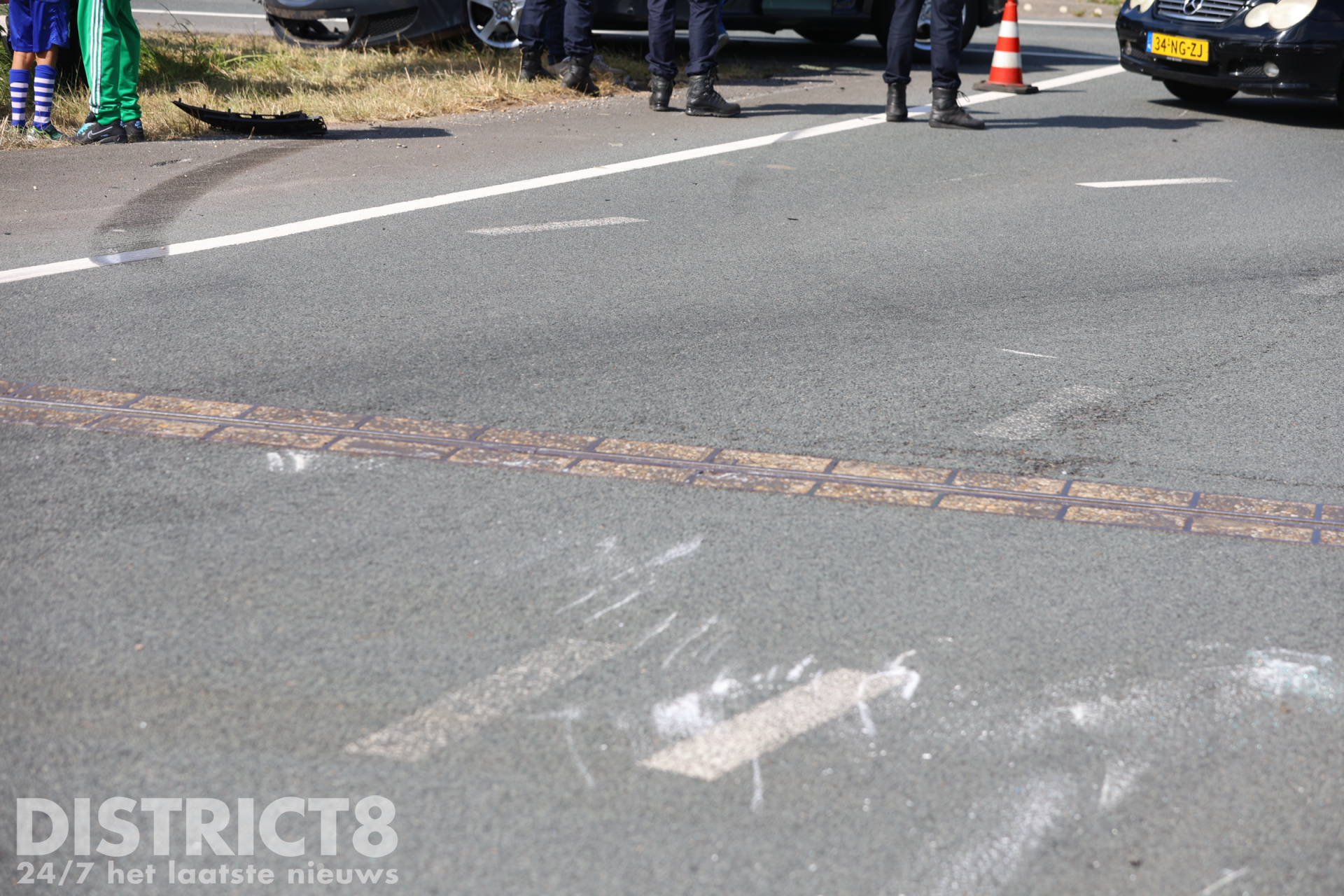 Het ging opnieuw mis op het beruchte punt, een auto en een busje kwamen in botsing. Door de klap werd het busje gelanceerd en belandde op z’n kant.