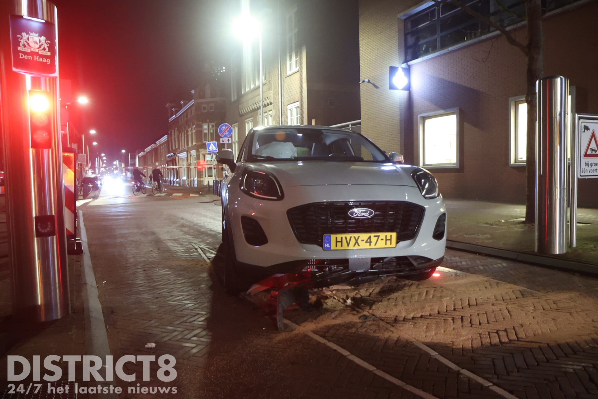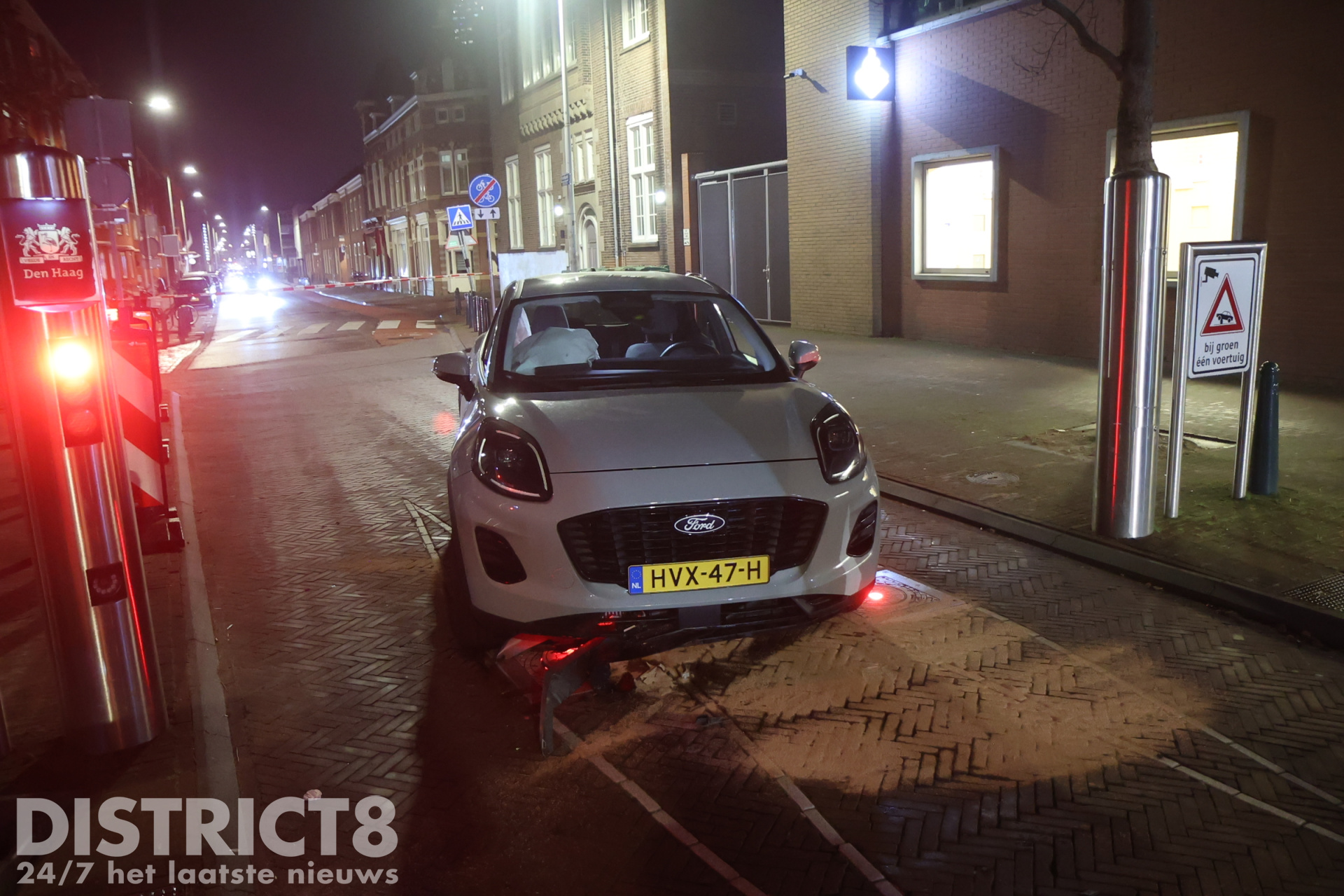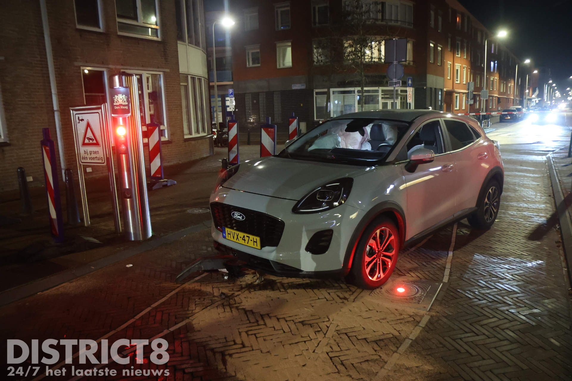 Opnieuw rijdt auto zich stuk op poller Hoefkade Den Haag
