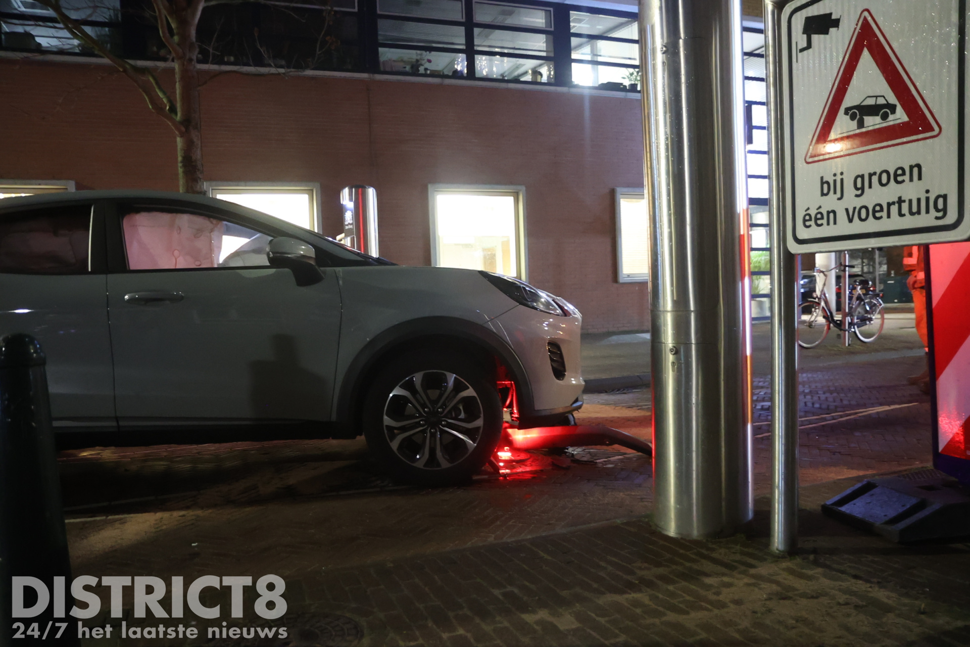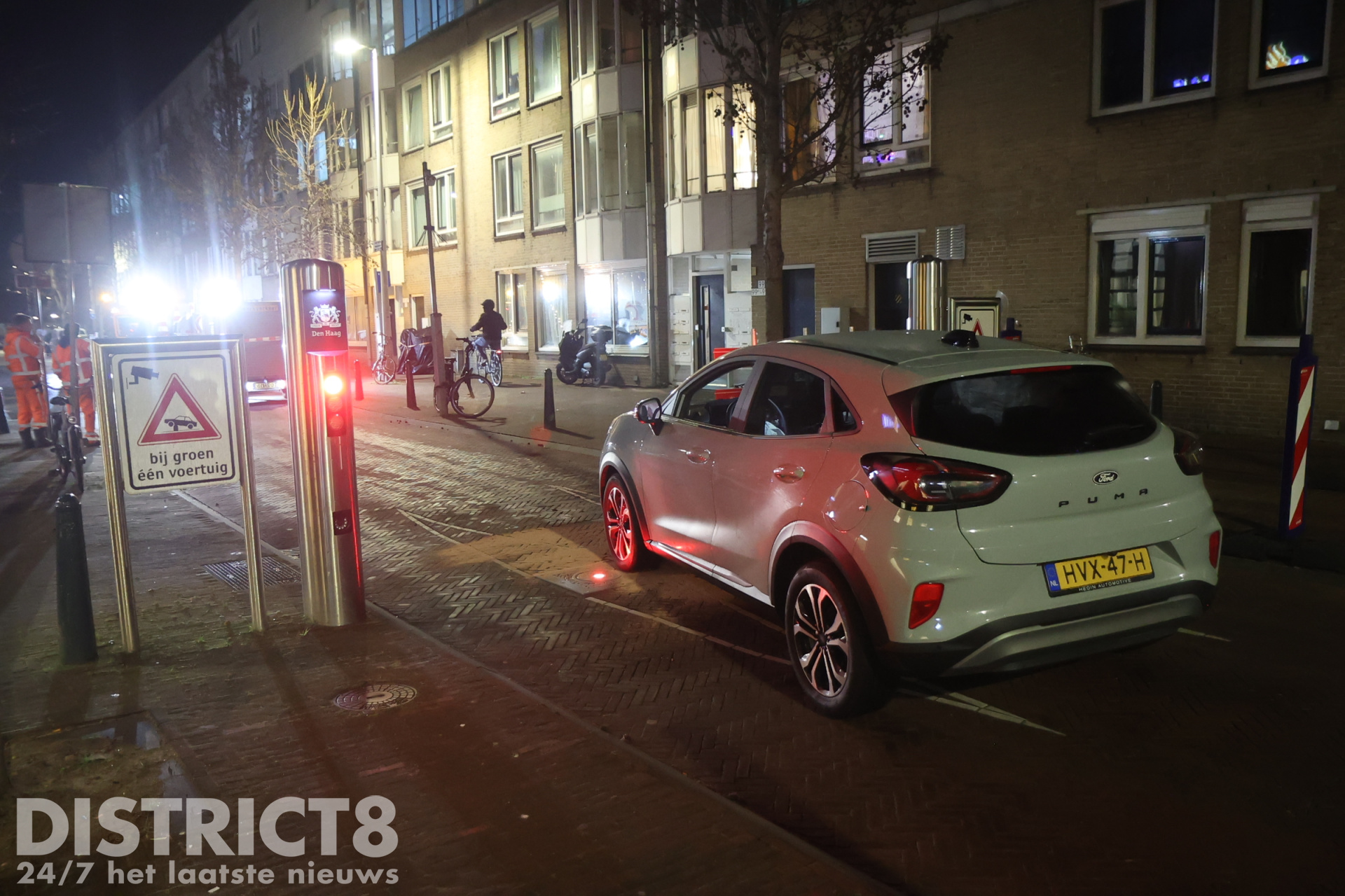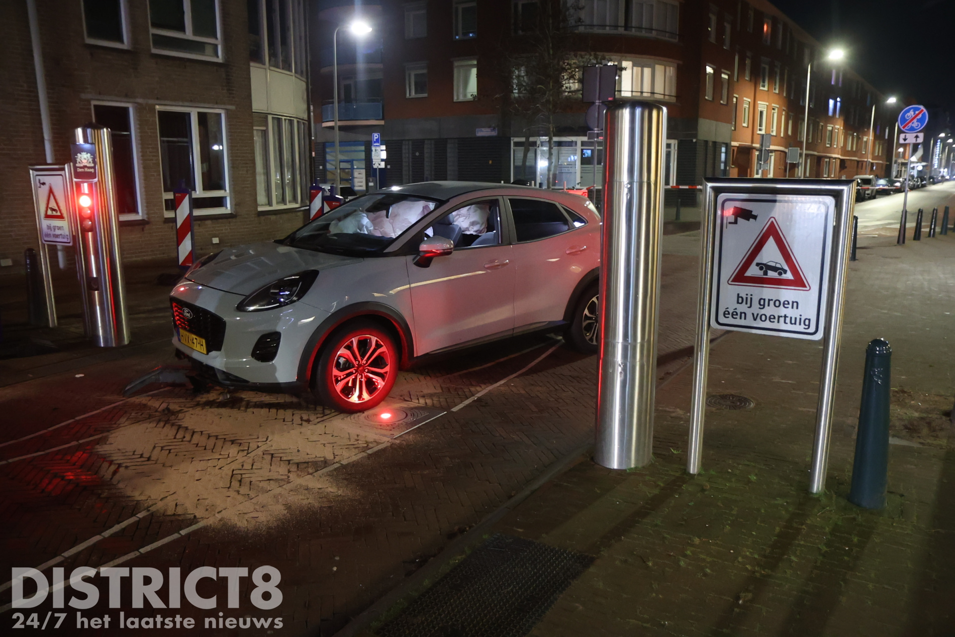 Opnieuw rijdt auto zich stuk op poller Hoefkade Den Haag