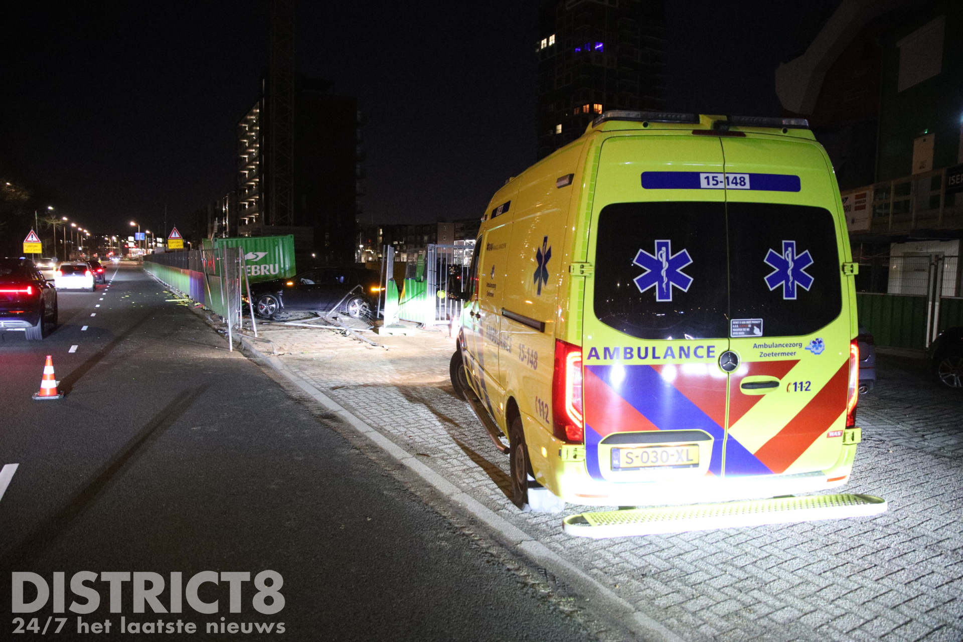 Den Haag – In de nacht van zaterdag op zondag 1 maart is een automobilist op de Neherkade door de omheining van een bouwterrein gereden. De auto kwam na de crash tot stilstand op het bouwterrein. De inzittenden van het voertuig raakten licht gewond en zijn ter plaatse nagekeken door een toevallig passerende ambulance.