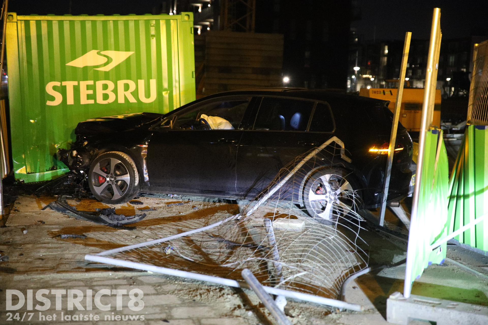 Opvallend is dat in de nacht van 21 op 22 februari op exact dezelfde plek ook al een auto door de omheining van het bouwterrein is gereden.