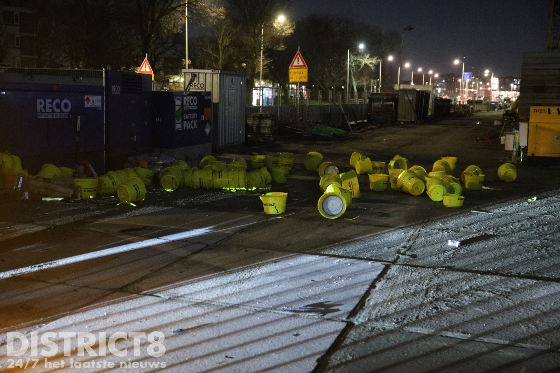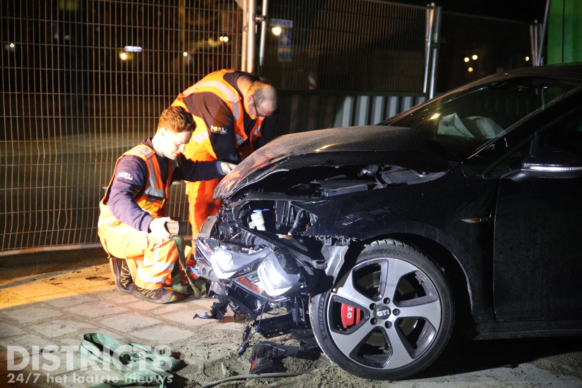 De politie heeft kort onderzoek gedaan op de locatie. Het verdere afhandelen van het incident wordt overgelaten aan de verzekering. De aannemer van het bouwterrein is op de hoogte gebracht om de omheining te herstellen.