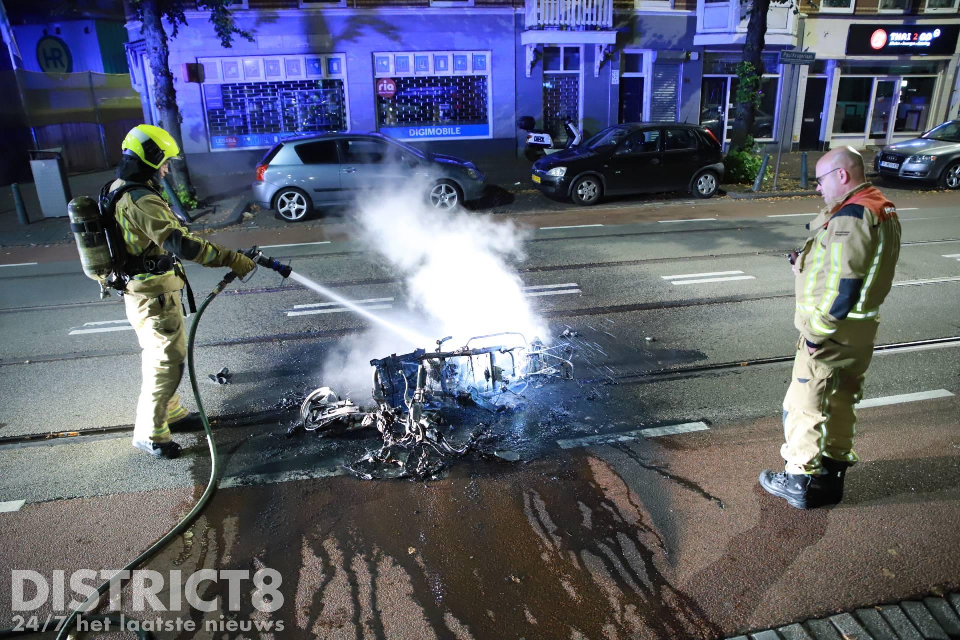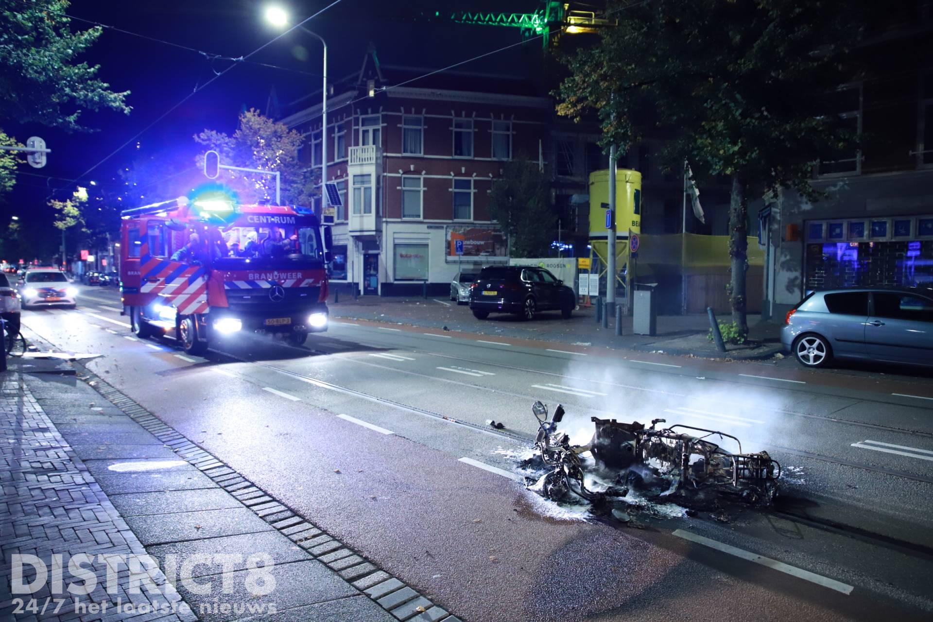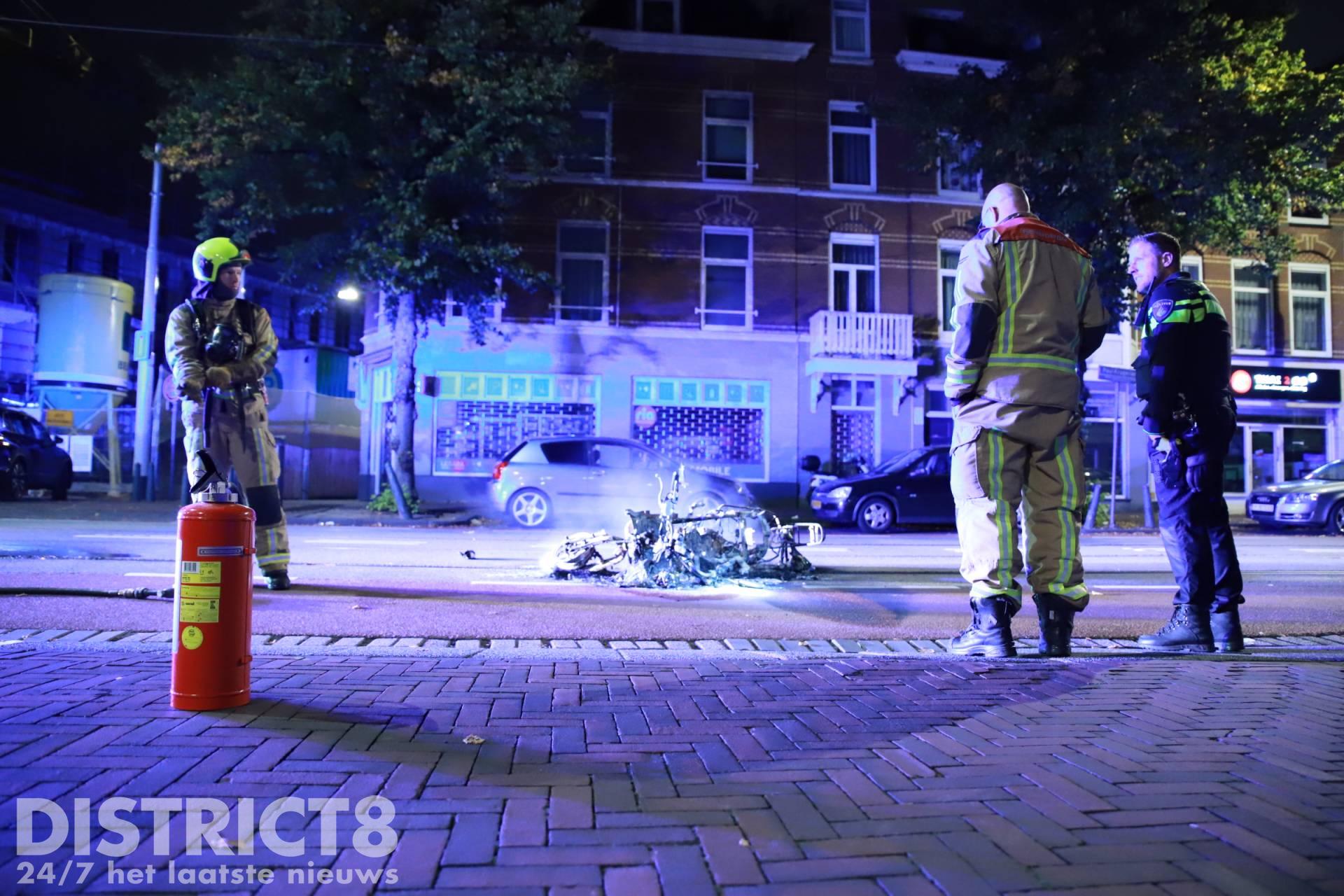 Den Haag – In de nacht van zondag 25 op maandag 26 september hebben vandalen opnieuw een scooter in brand gestoken in de buurt van de Haagse Schilderswijk, nadat op 22 september jl. tijdens ongeregeldheden in de Schilderswijk een scooter in brand werd gestoken op de Vaillantlaan werd ook afgelopen nacht, de nacht van 24 op 25 september een scooter in brand gestoken op de Hoefkade.