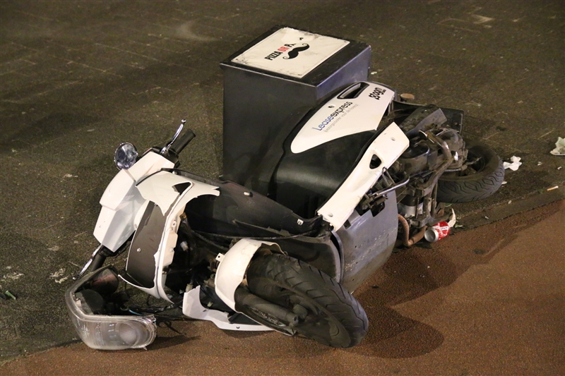 Waarom de bezorger met zijn scooter op het fietspad reed in plaats van op de weg is onbekend.