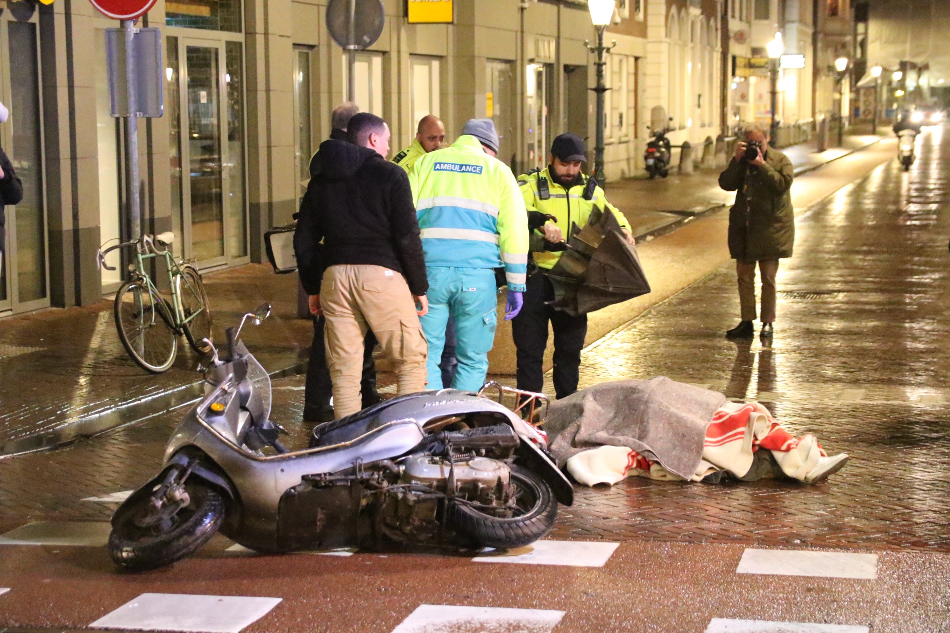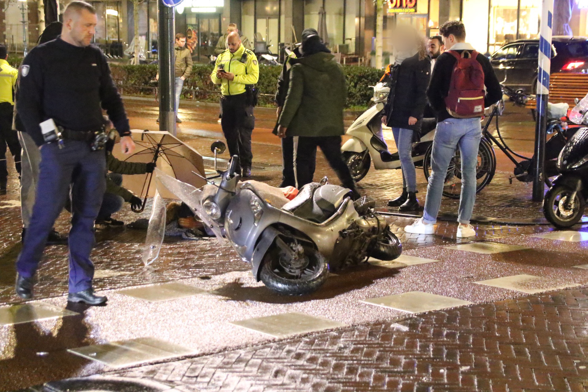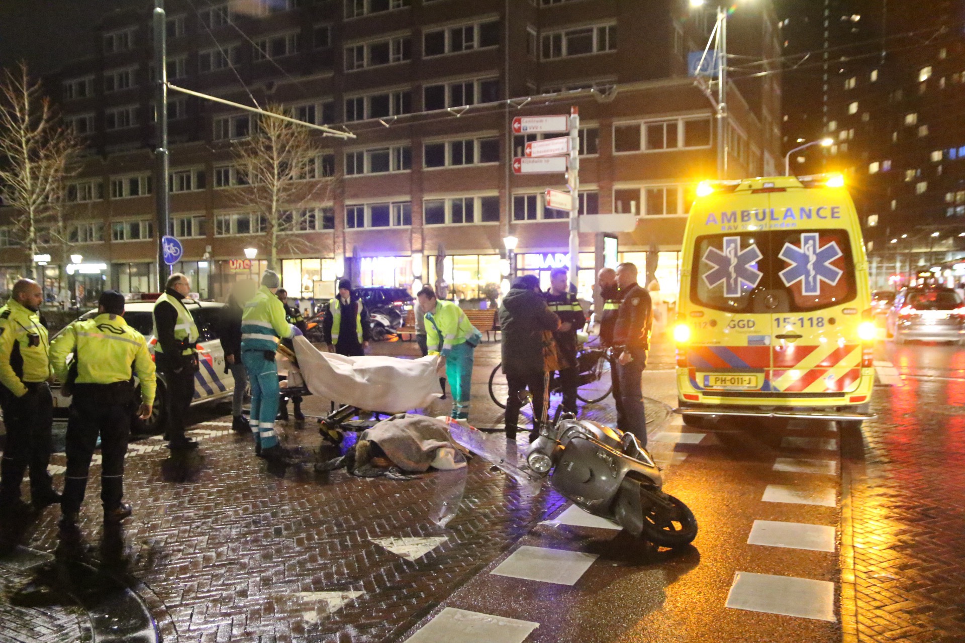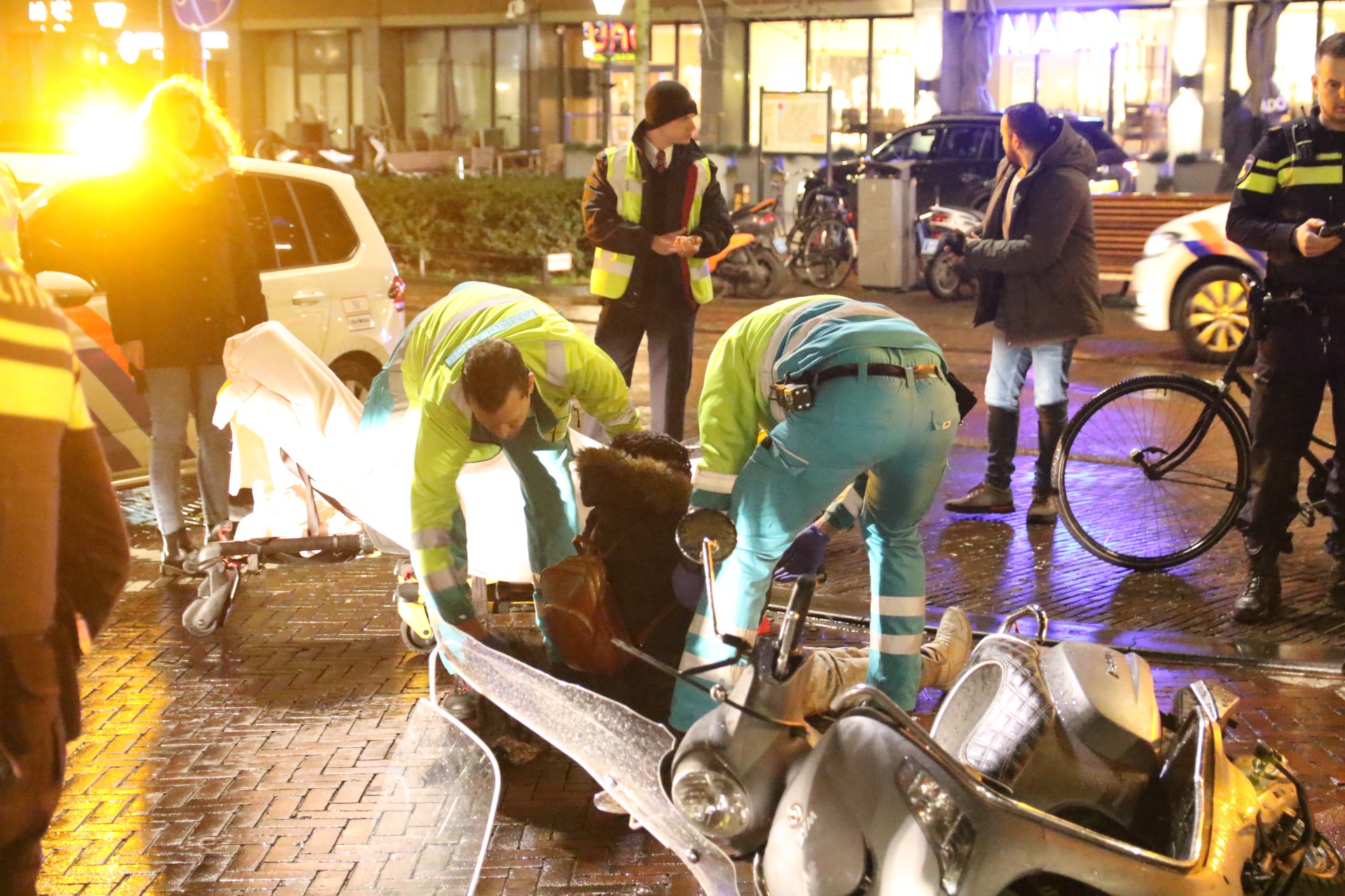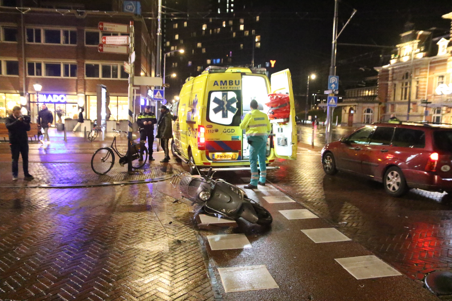 Den Haag – Op het Stationsplein in Den Haag is zaterdagavond een opzittende van een brommer gewond geraakt bij een aanrijding.