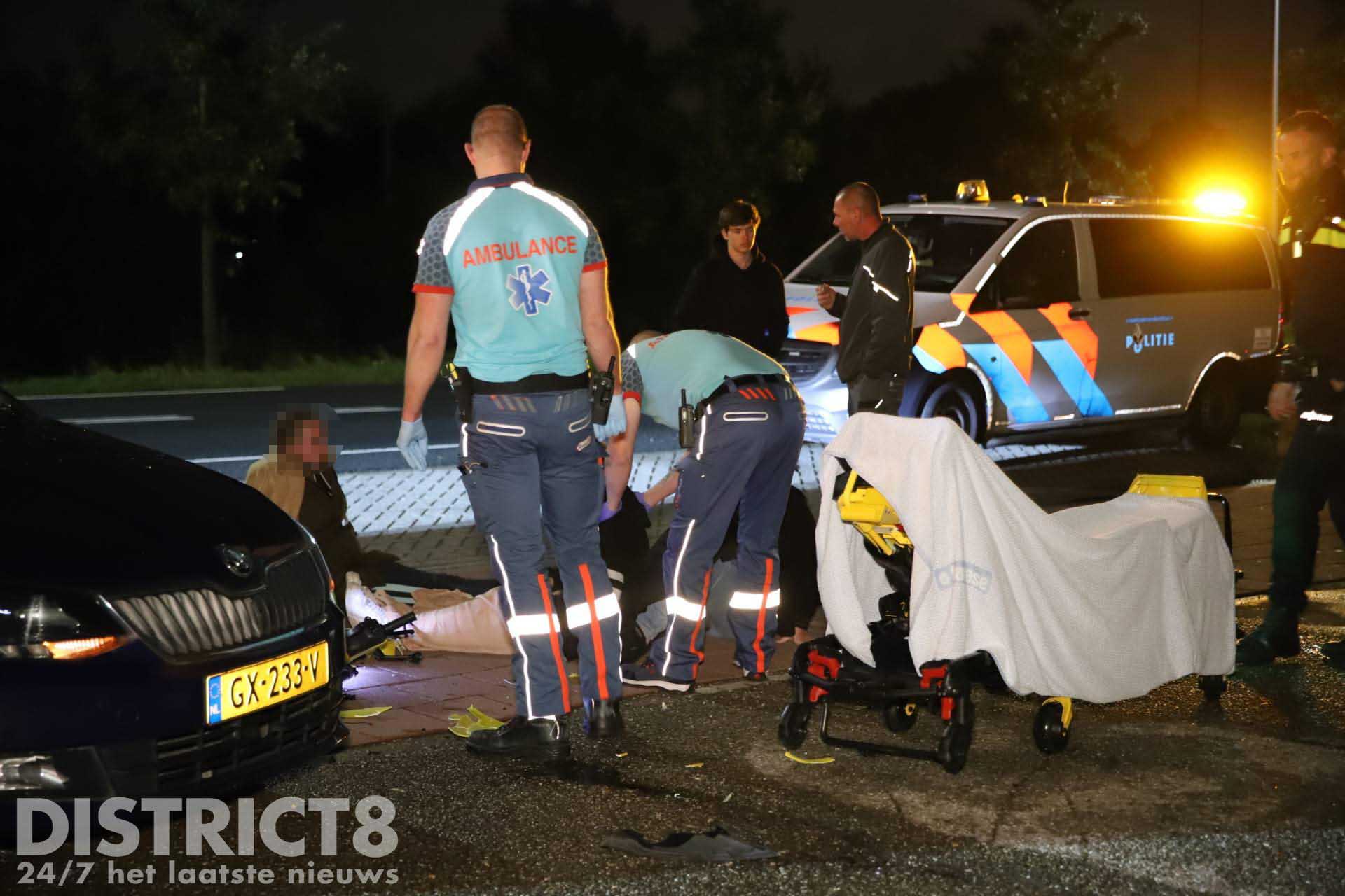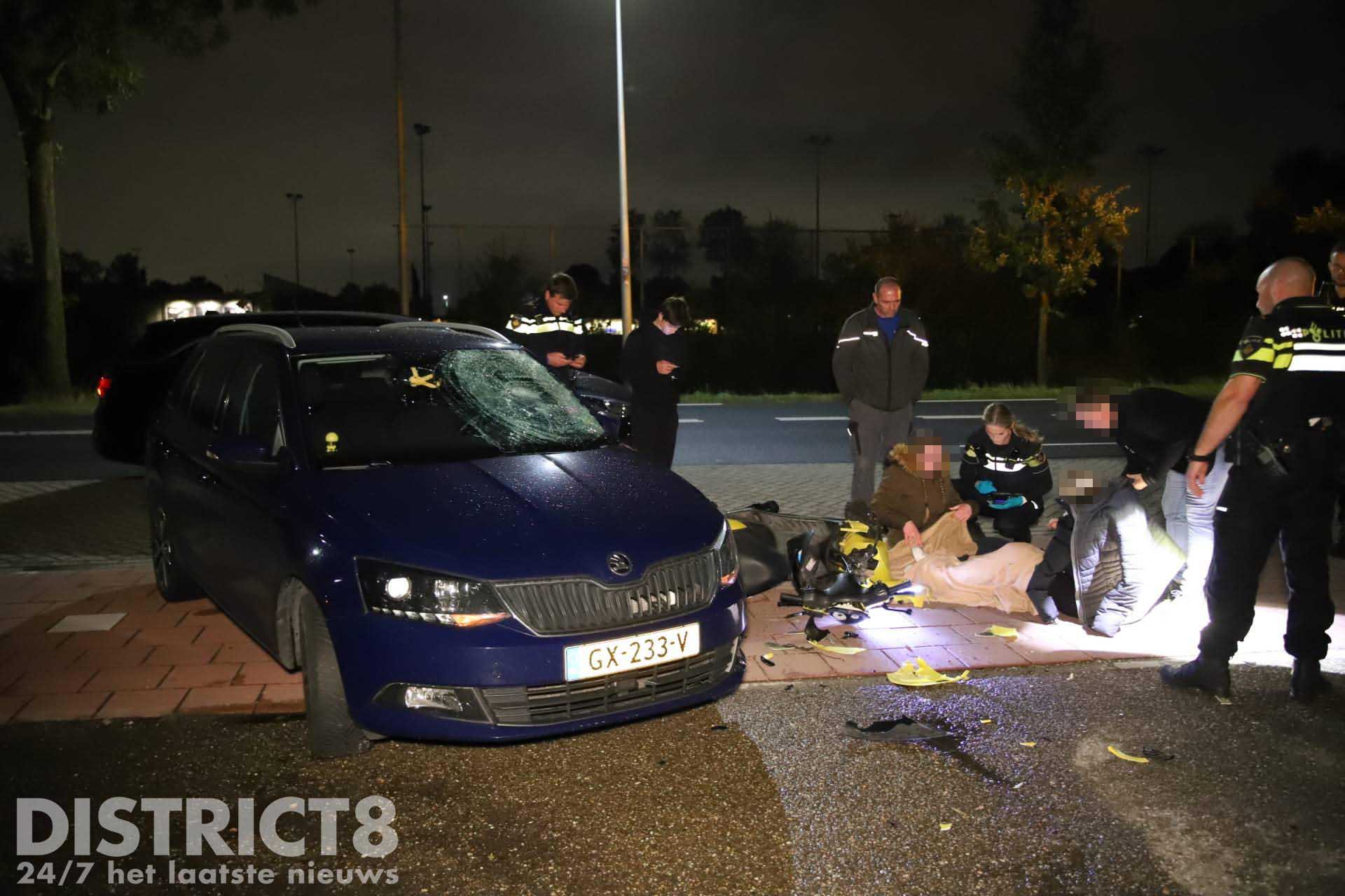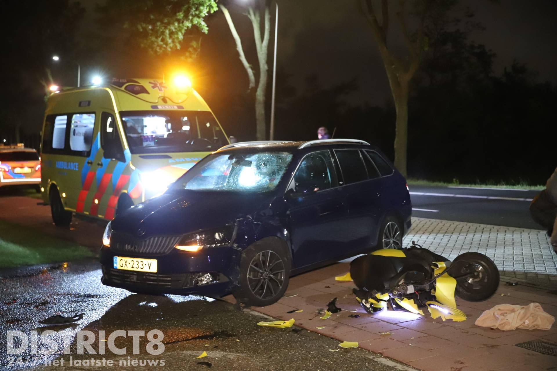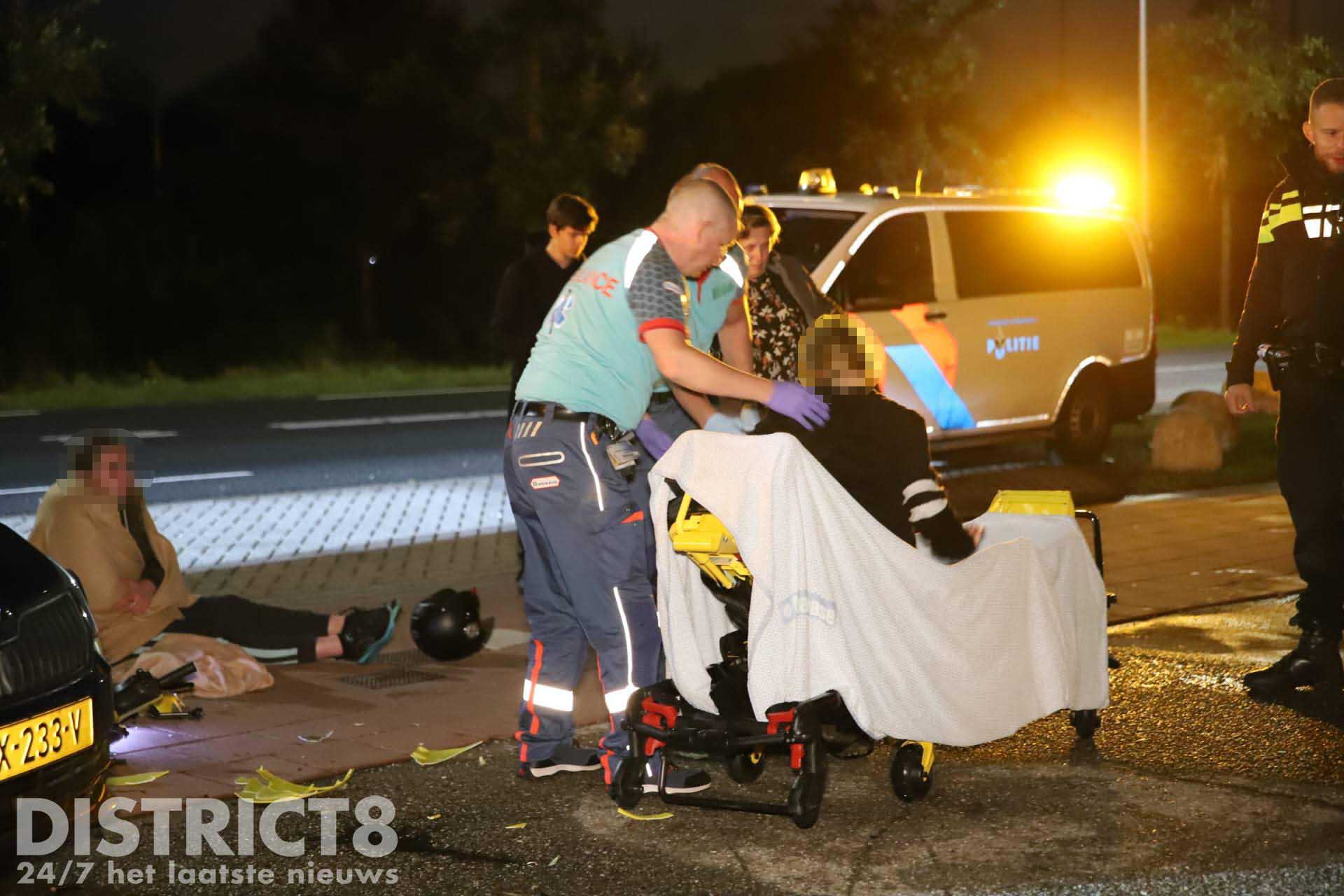 De personenauto wilde afslaan en zag de scooter met daarop twee opzittenden over het hoofd. De scooter kwam in botsing met de auto, beide opzittenden kwamen hard ten val en raakten gewond.