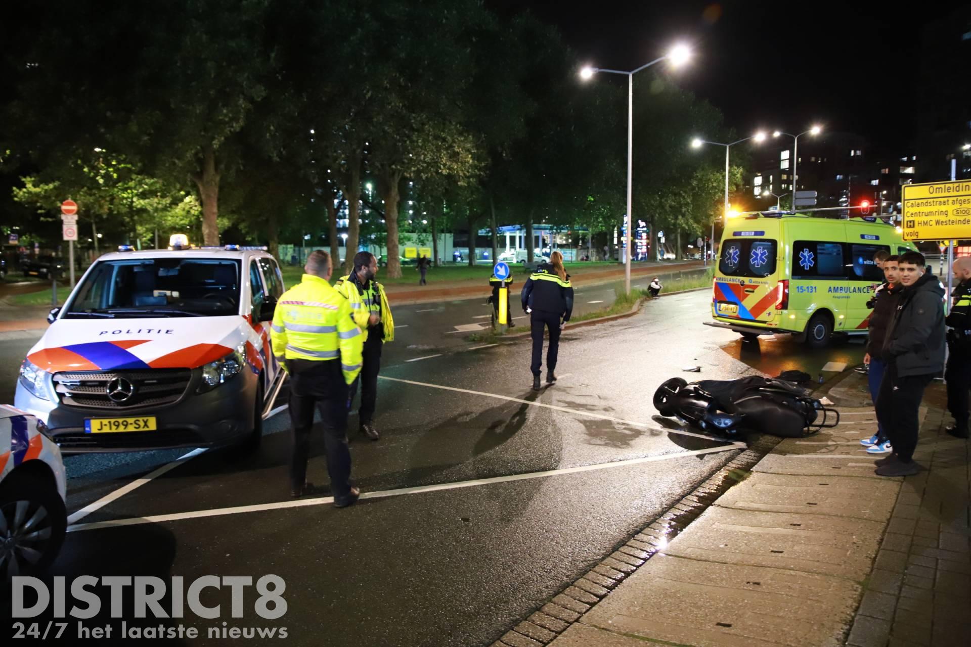 Omstreeks 23:20 kwamen de snorscooter en auto in botsing op de kruising van de Slachthuislaan met de Tak van Poortvlietstraat in Den Haag. Beide opzittenden kwamen na de aanrijding ten val.
