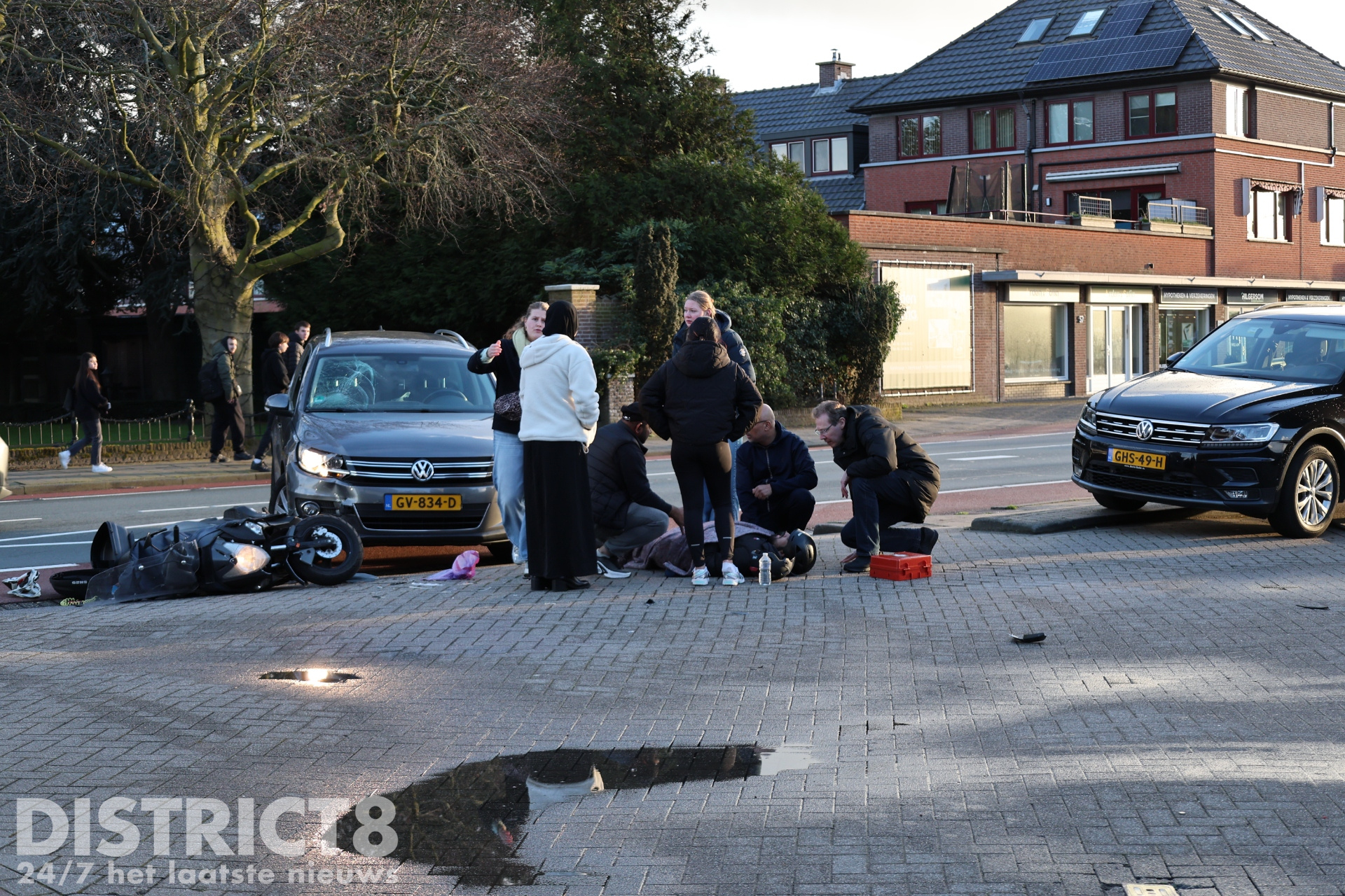 De opzittenden van de scooter kwamen vanuit de richting van Rijswijk. Toen een automobilist wilde afslaan naar het tankstation, zag zij de scooter over het hoofd. Na het incident zijn beide slachtoffers gecontroleerd in de ambulance. Vervolgens zijn zij naar het HagaZiekenhuis in Den Haag vervoerd voor verdere controle.