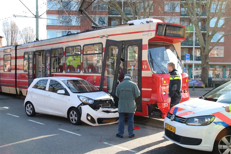 Oude man botst met auto tegen tram 1 Jan van der Heijdenstraat Den Haag [VIDEO]