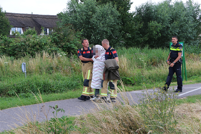 De vrouw kwam er met lichte verwondingen vanaf. Vermoedelijk is de harde wind de oorzaak geweest van het te water raken.