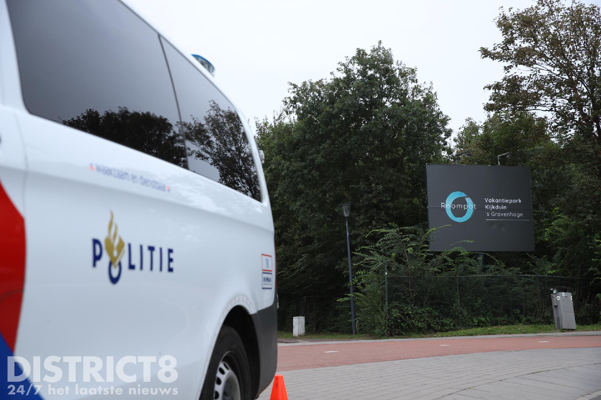 Met hekken en zwarte schermen werd het ‘Plaats Delict’ aan het zicht onttrokken. Het lichaam werd gevonden pal naast het druk bezochte Roompot vakantiepark Kijkduin.
