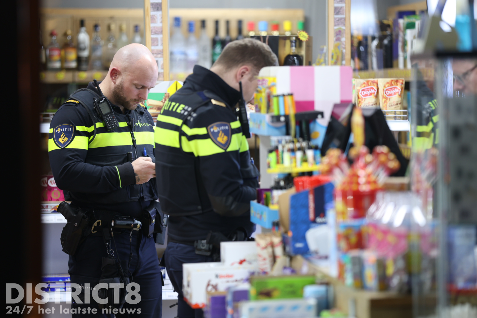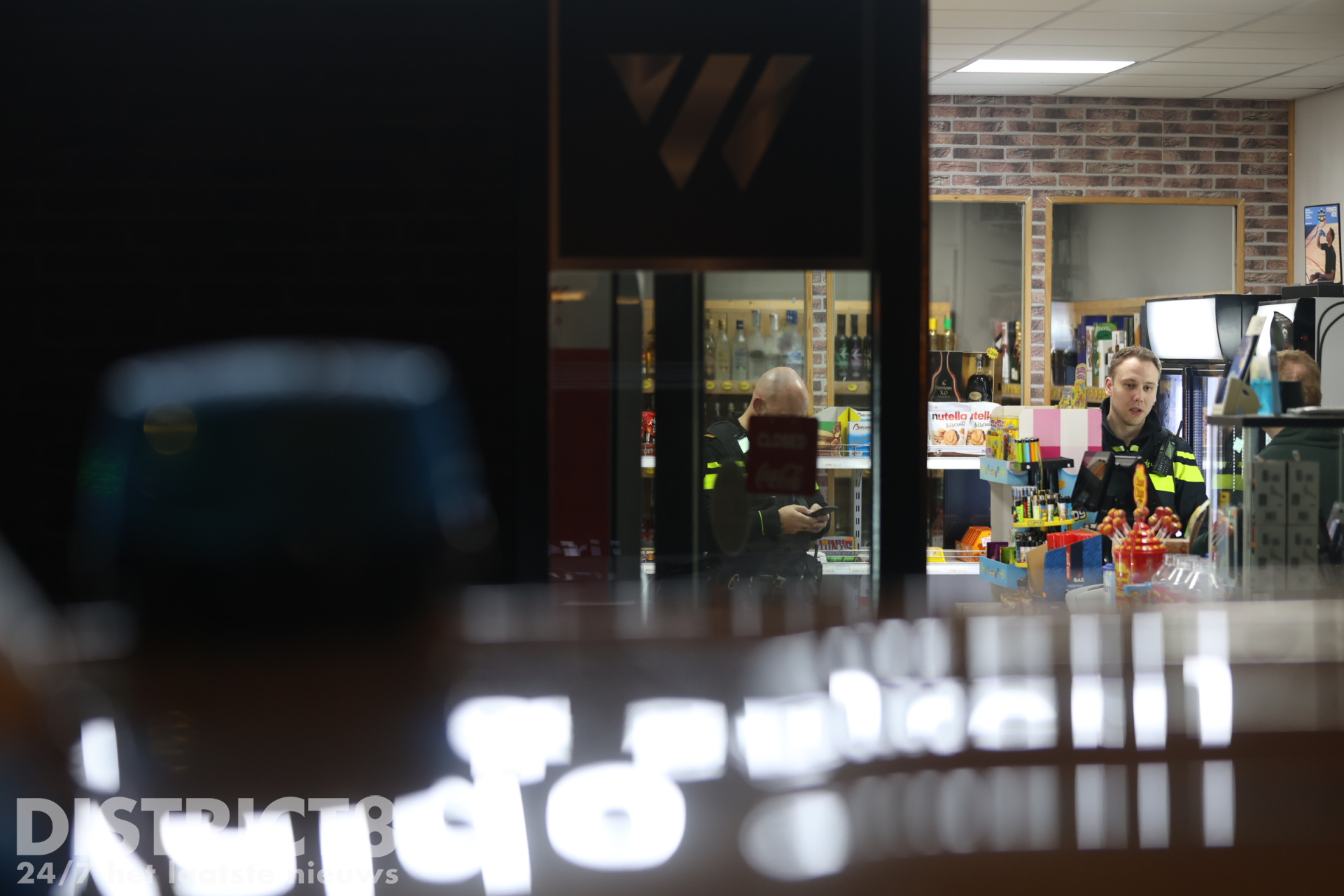 De politie kwam met spoed ter plaatse, terwijl meerdere eenheden in de omgeving zochten naar de verdachte(n) waren agenten bij de avondwinkel aanwezig om onderzoek te doen.