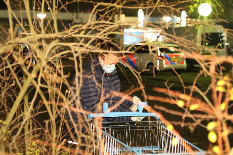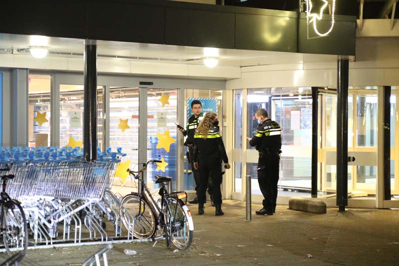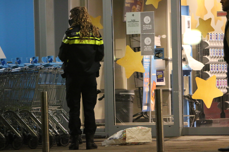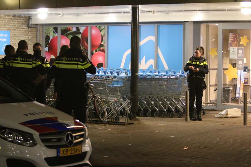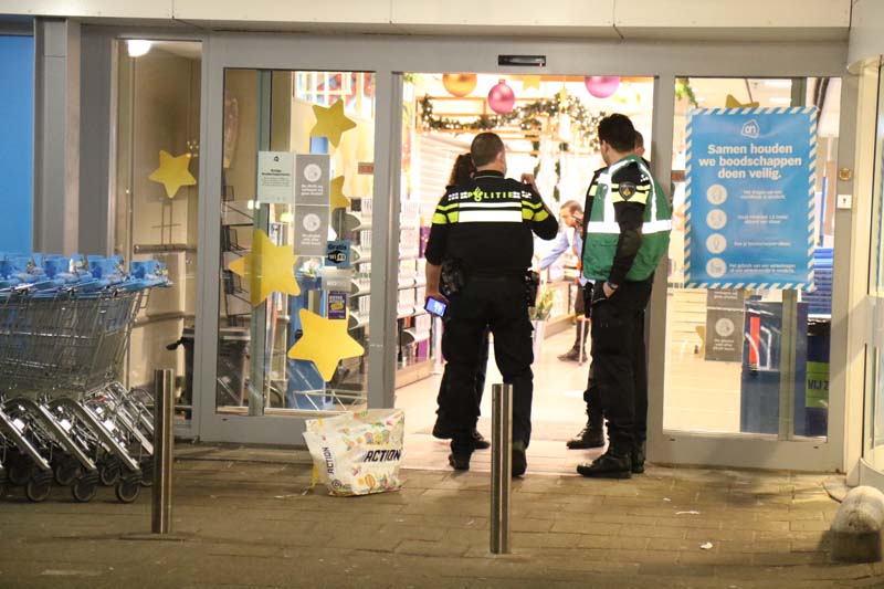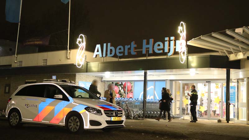 De recherche is ter plaatse om onderzoek te doen. Twee medewerkers van de supermarkt zijn mee naar het politiebureau.
