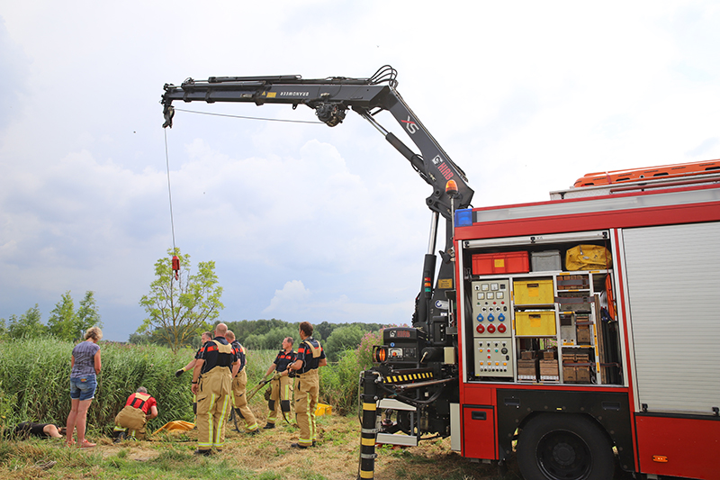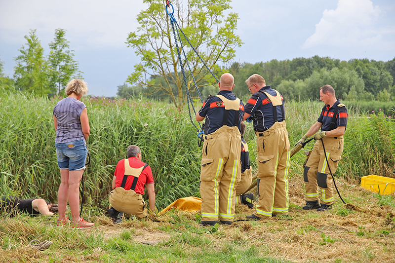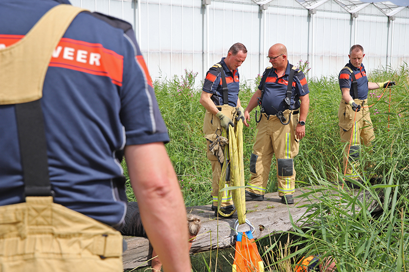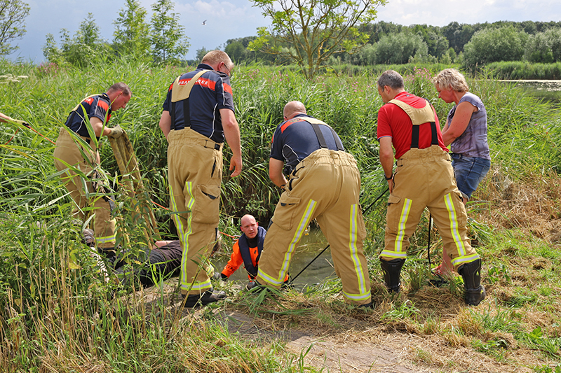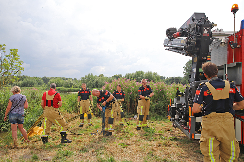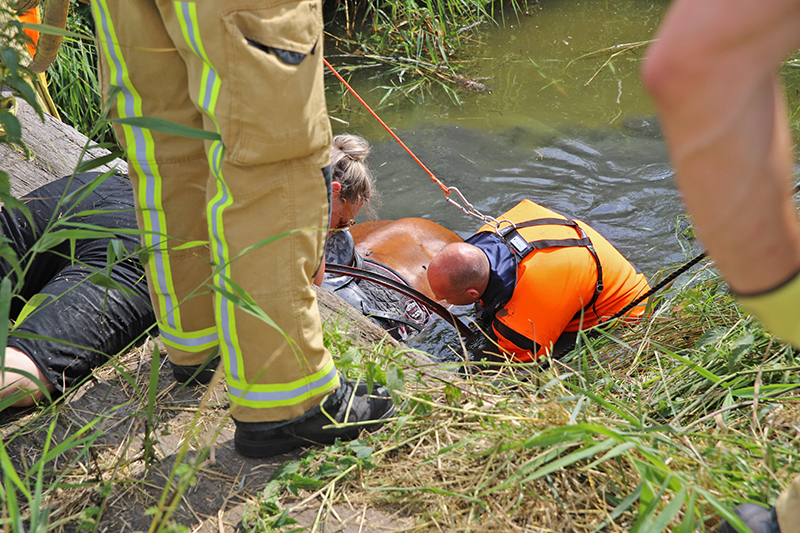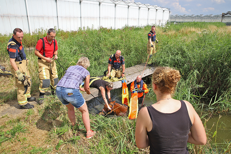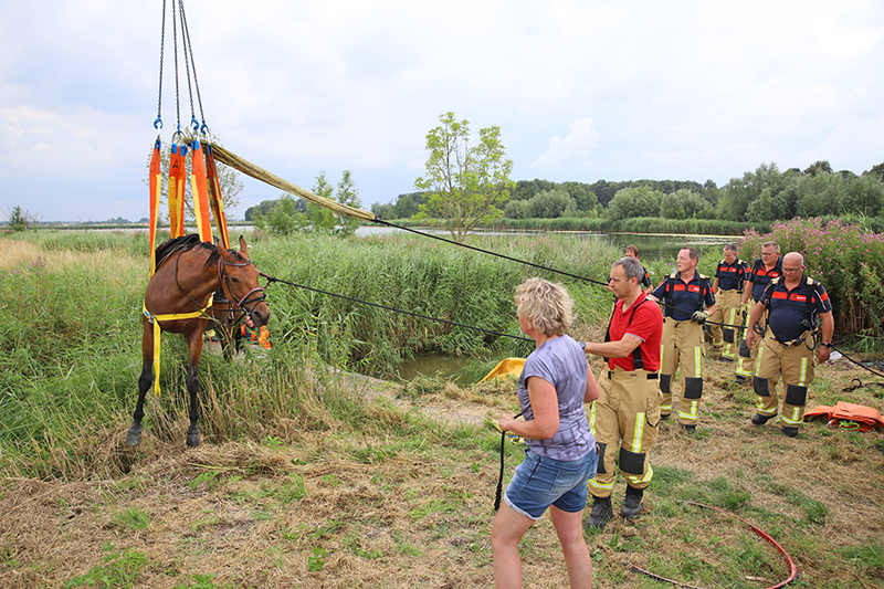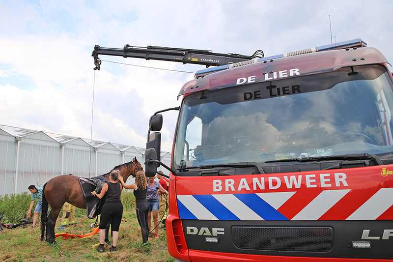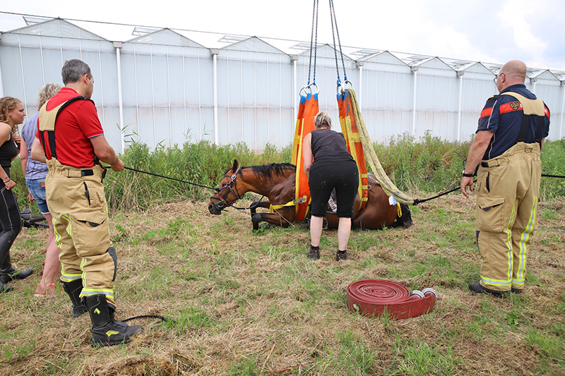 De hulp van de brandweer werd ingeschakeld. Deze zijn met een hulpverleningsvoertuig ter plaatse gekomen. Na enige pogingen om met handkracht het paard uit het water te halen werd besloten om toch maar de kraan van het hulpverleningsvoertuig te gebruiken.