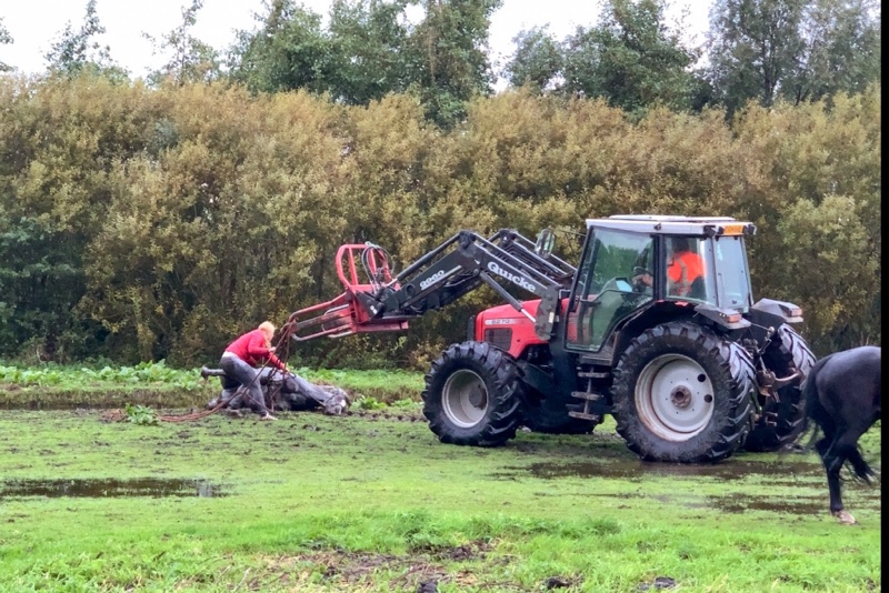In de tussentijd was de eigenaar ook op de hoogte gesteld. Met behulp van een trekker is Tinka vervolgens op het droge getrokken.