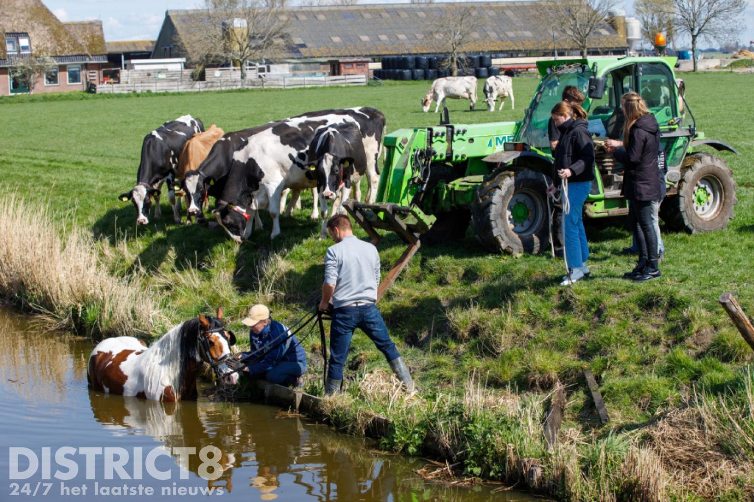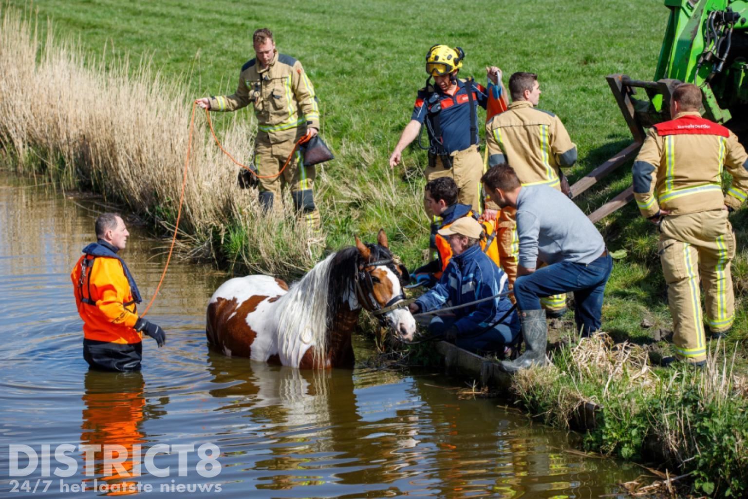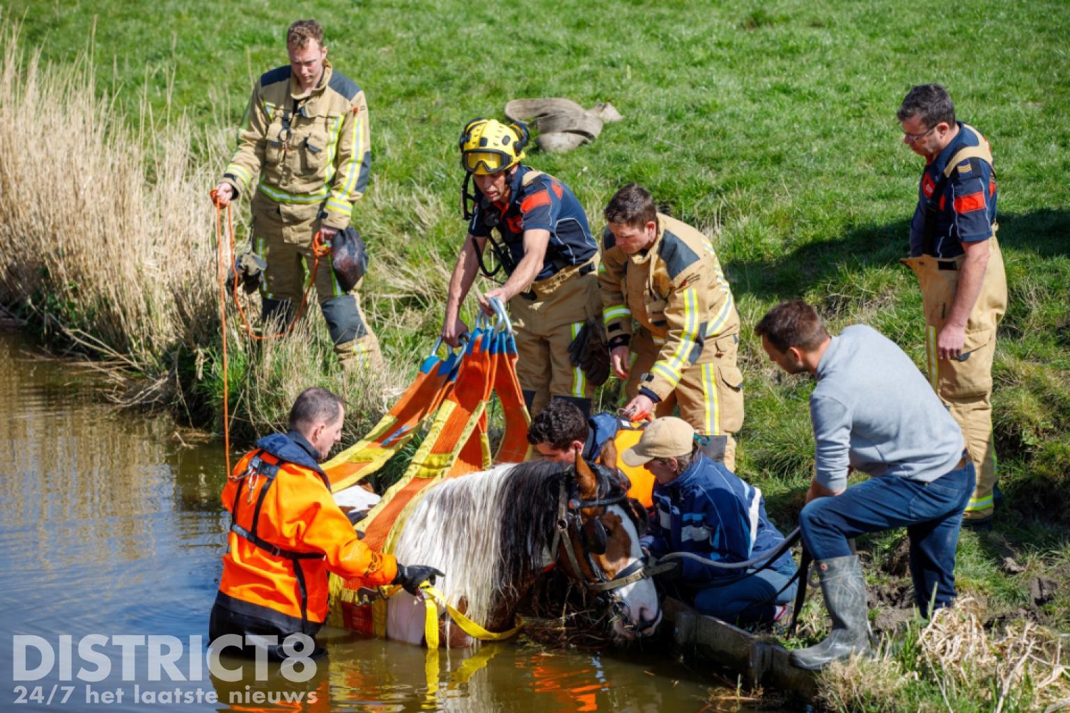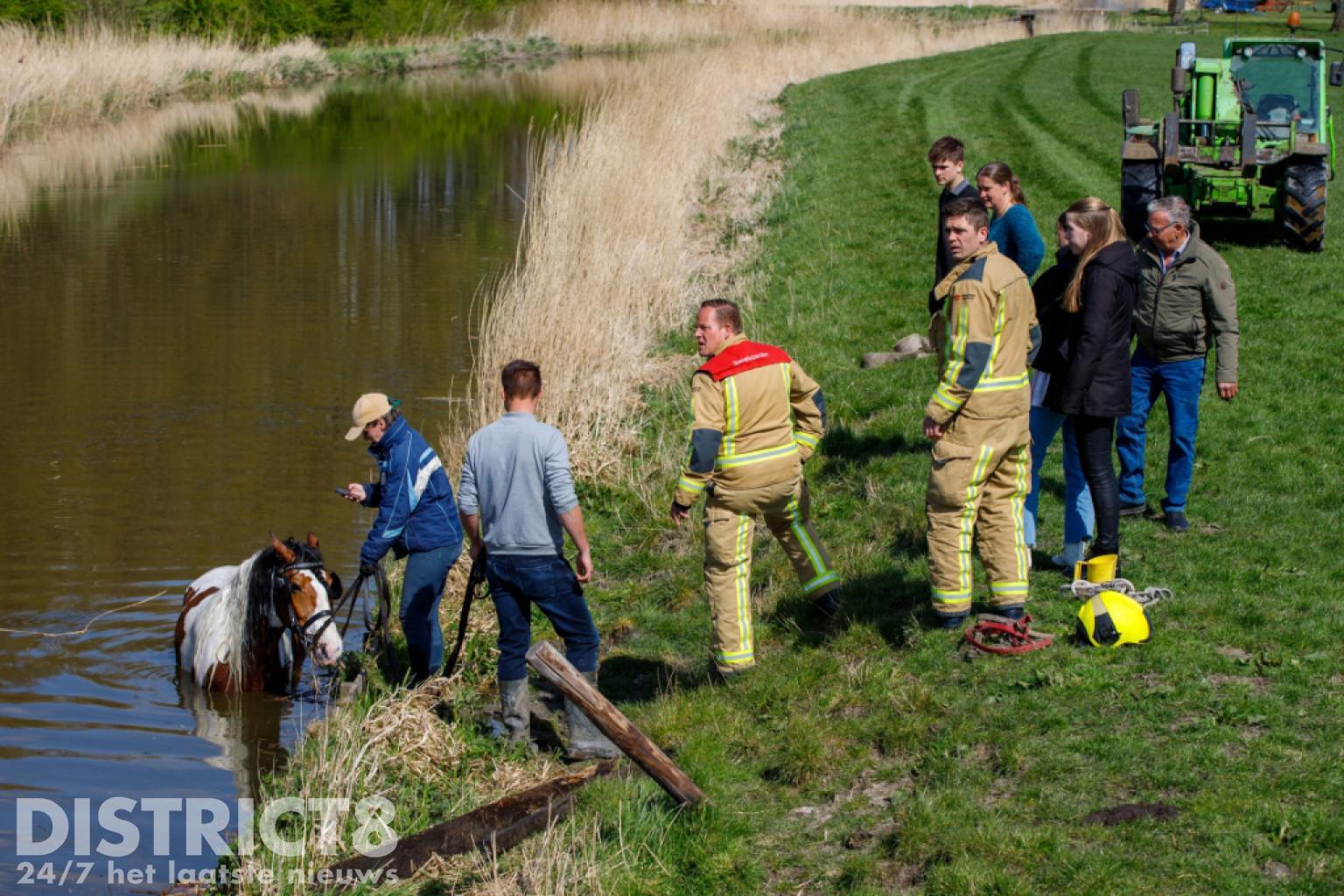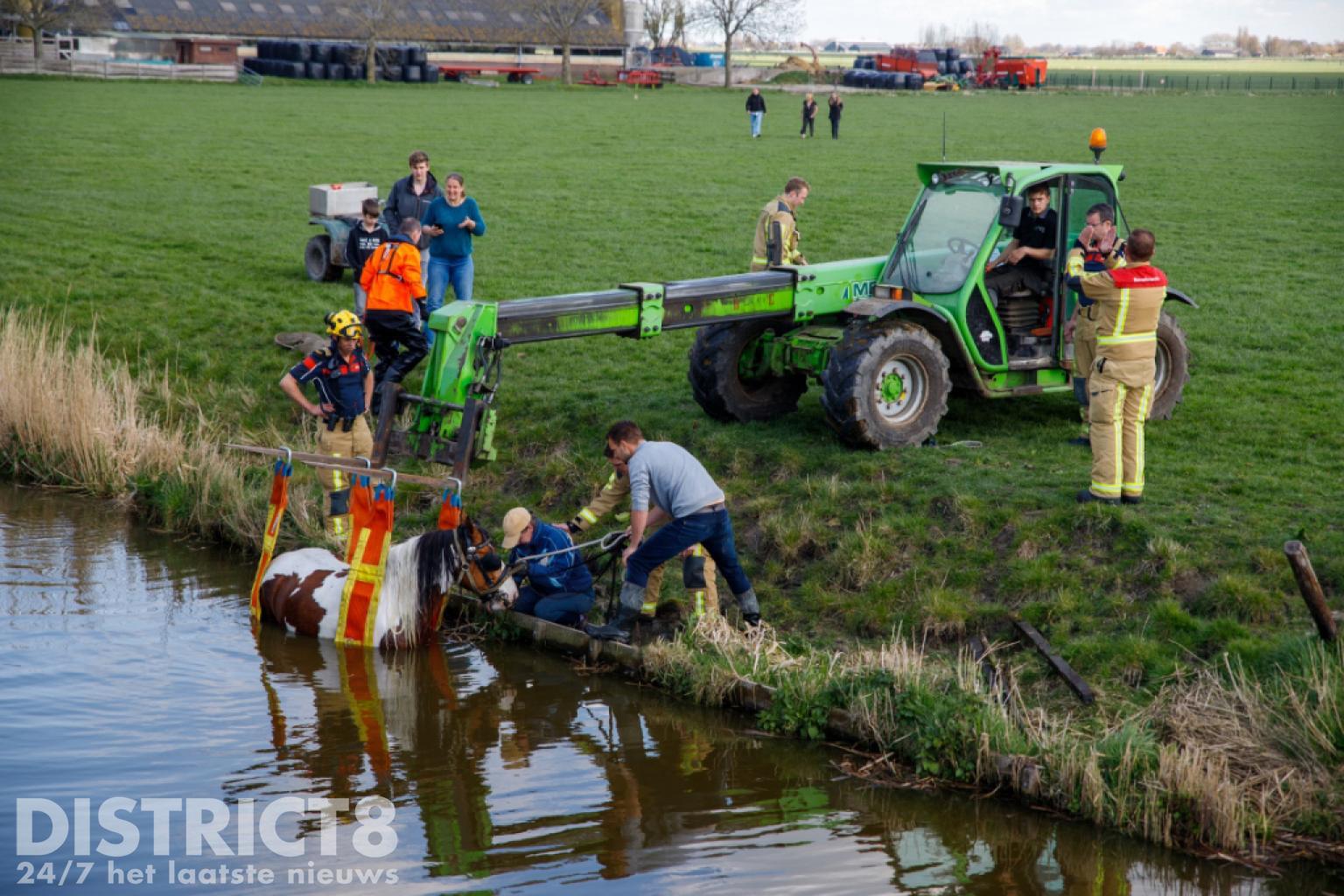 Het paard is even later door de brandweer en hulp van een vorkheftruck uit het water gehezen. Het paard kwam er zonder verwondingen vanaf.