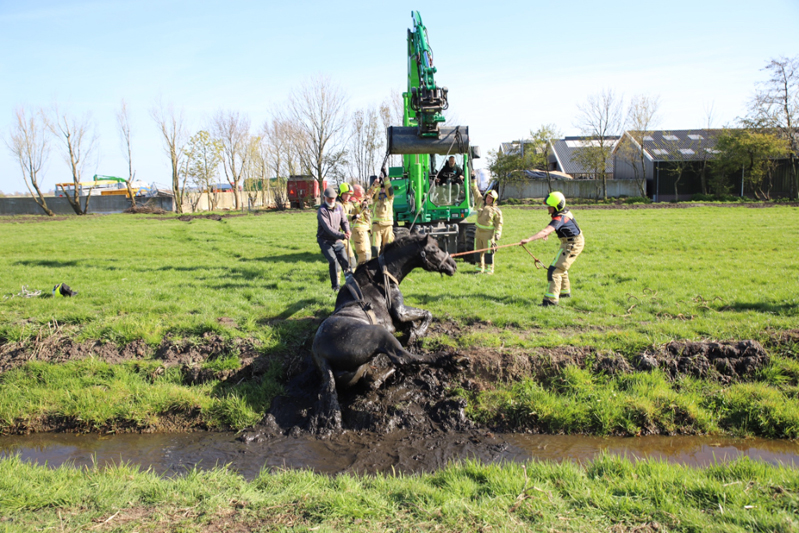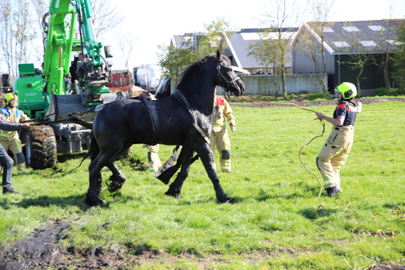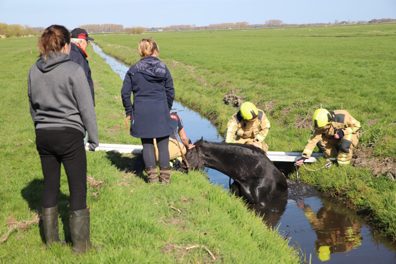 Daar was om onbekende oorzaak een paard in een sloot gevallen. Het Friese paard kon er op eigen kracht niet meer uit komen. En zakte steeds verder weg in de bagger.