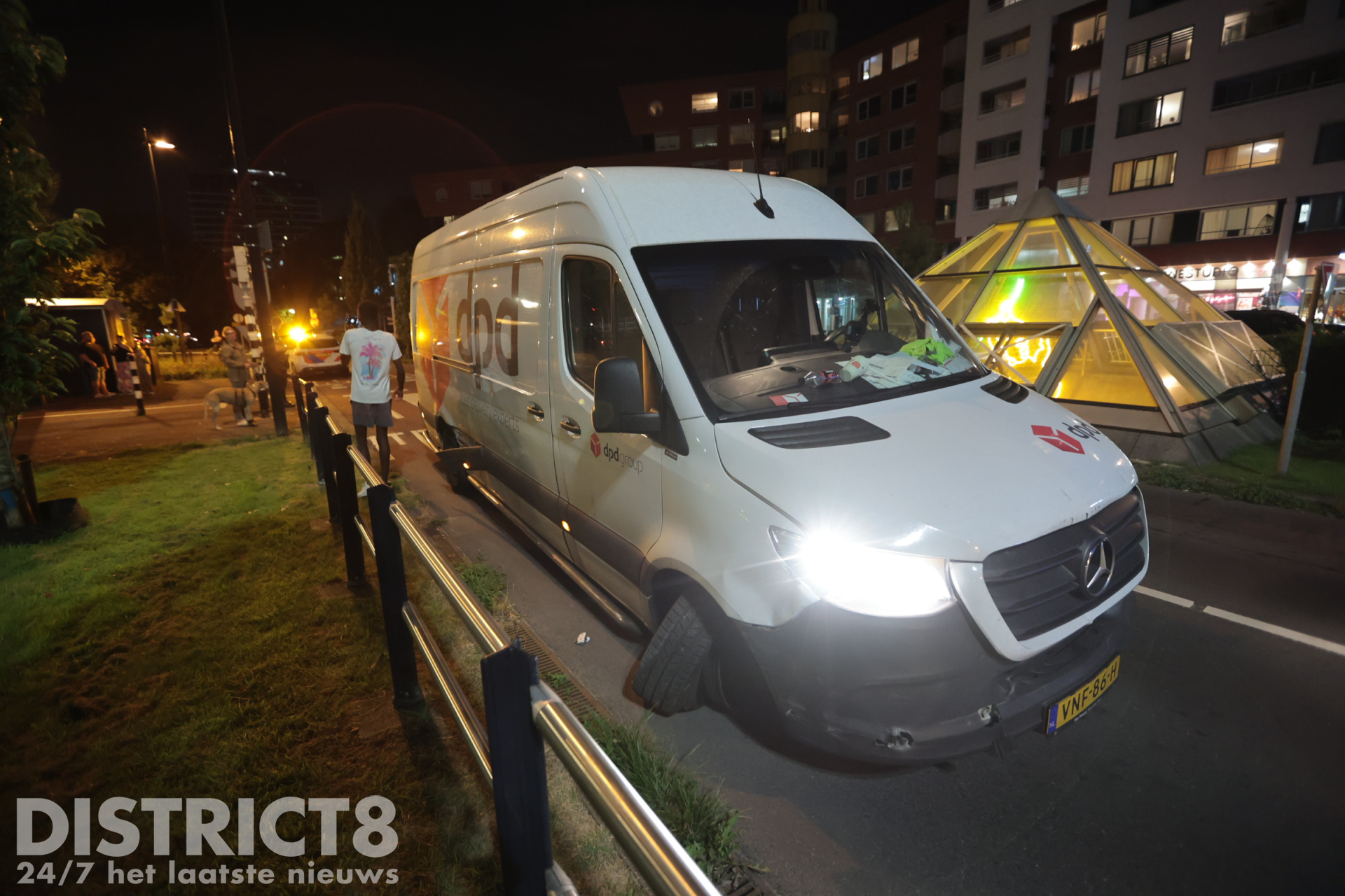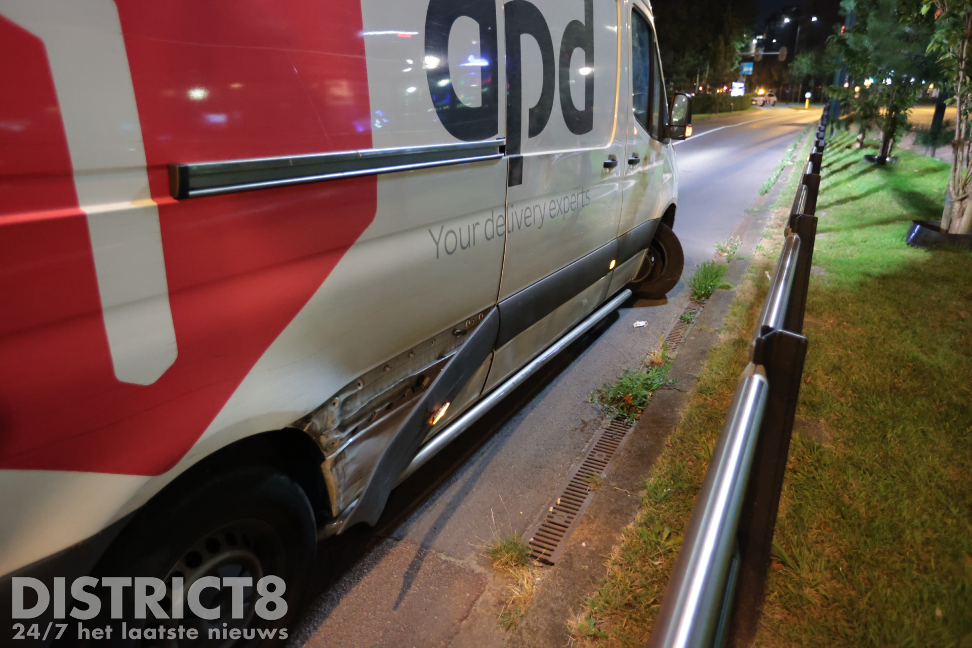 Rijswijk – Op de Sir Winston Churchilllaan in Rijswijk is een pakketbezorger met zijn bus maandagavond 2 september de bocht uitgevlogen ter hoogte van Station Rijswijk.