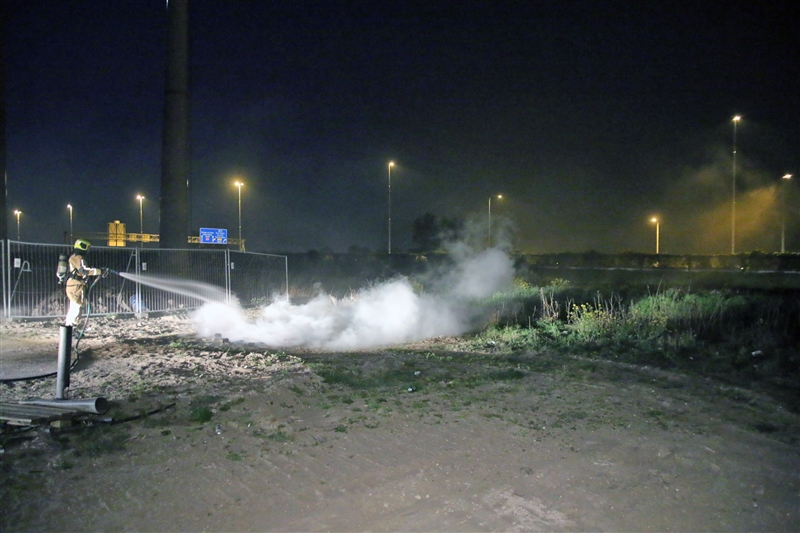 Den Hoorn – Afgelopen nacht moest de brandweer van kazerne Den Hoorn alweer vroeg uit hun bed voor een buitenbrand langs de A4 aan de Harnaschdreef in Den Hoorn.