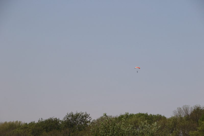 De parachutiste probeerde op een stuk gras te landen, maar kwam in de bosjes terecht.