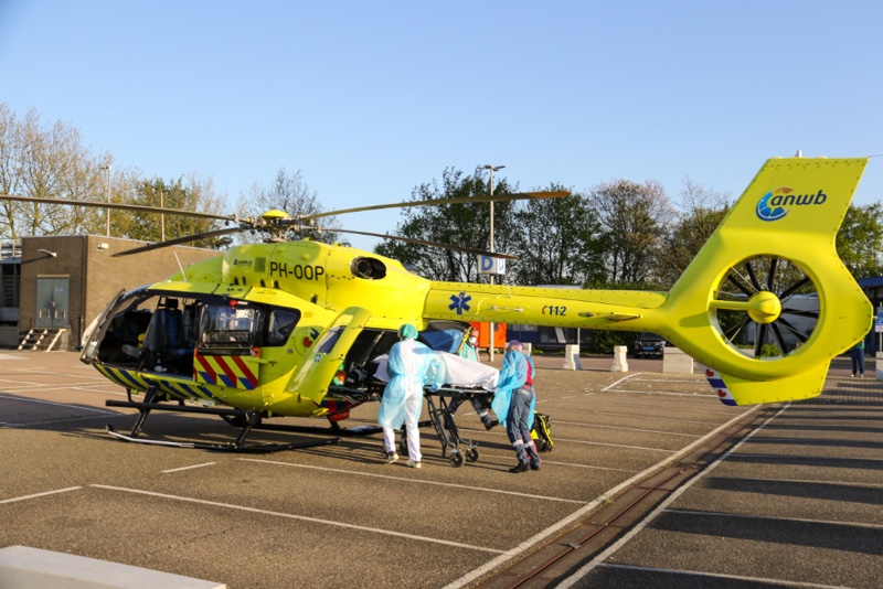 De lifeliners 5 & 6 zijn speciaal ingericht om Corona patiënten te vervoeren. Op het parkeerterrein van het ziekenhuis is een tijdelijke landingsplaats gemaakt voor de helikopters.