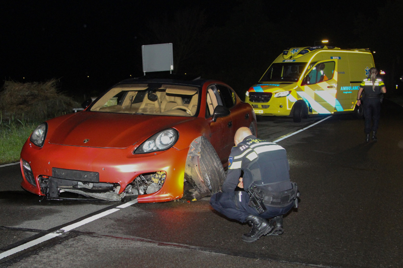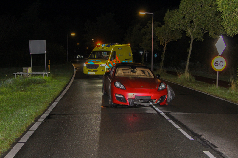 Als gevolg van de klap is er behoorlijke schade ontstaan aan het linker voorwiel en de onderzijde van de auto, die een cataloguswaarde heeft van ruim 168.000 euro. De bestuurder heeft vervolgens ruim 300 meter met de beschadigde auto gereden, voordat hij halverwege de Haakweg op het midden van de weg tot stilstand kwam.