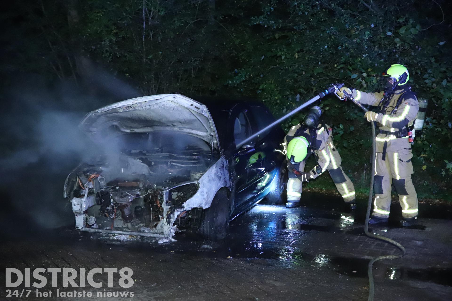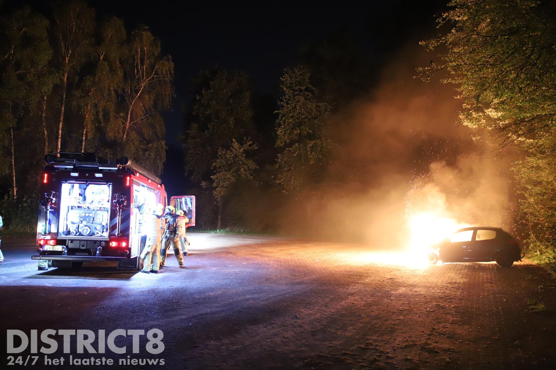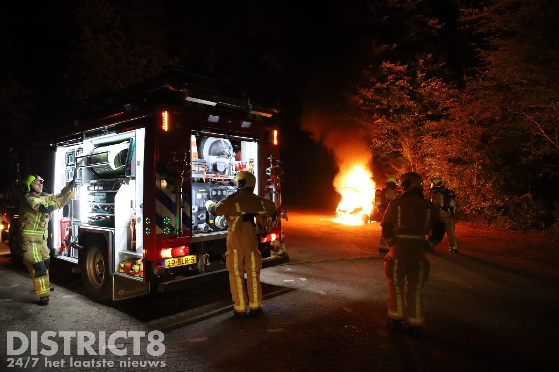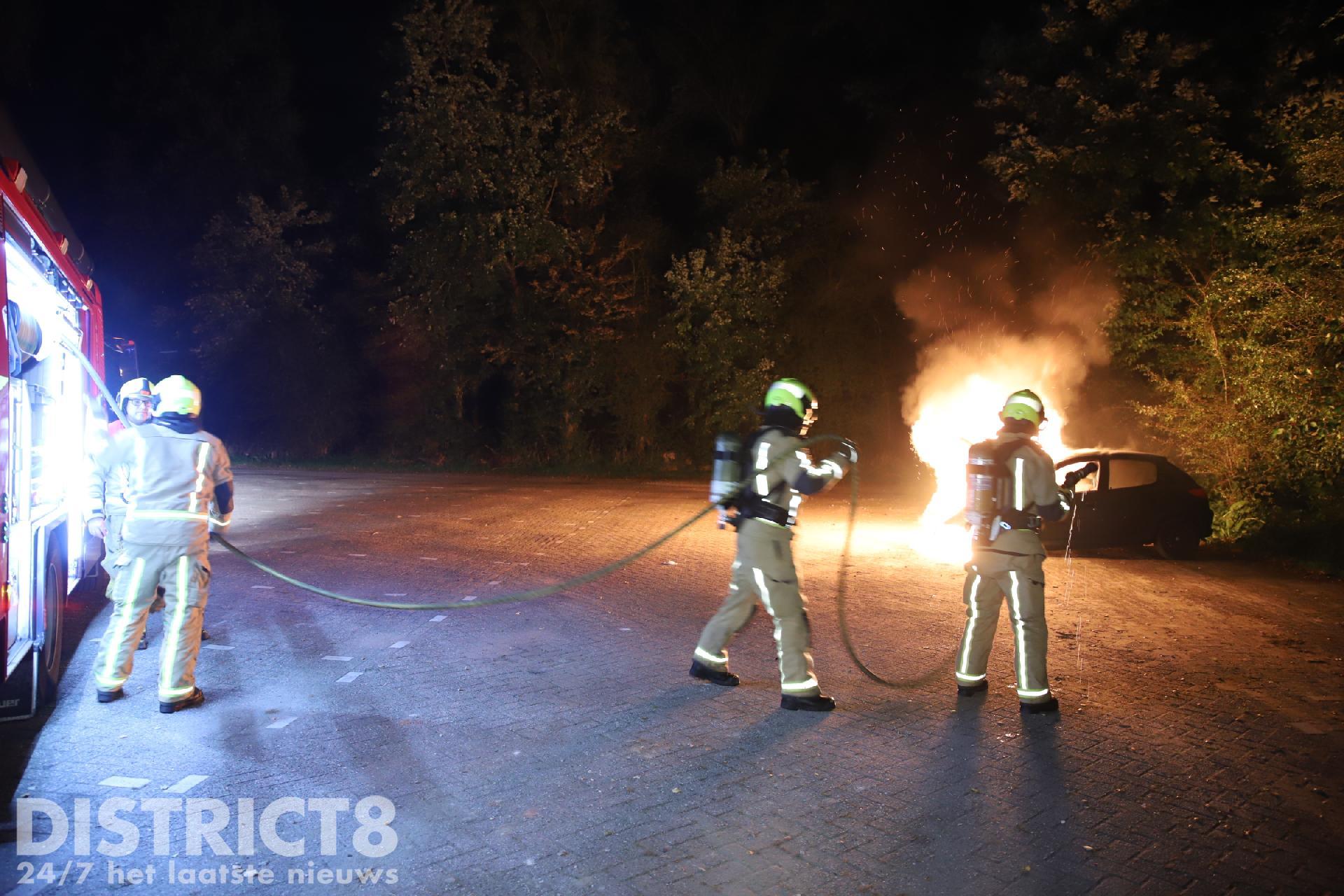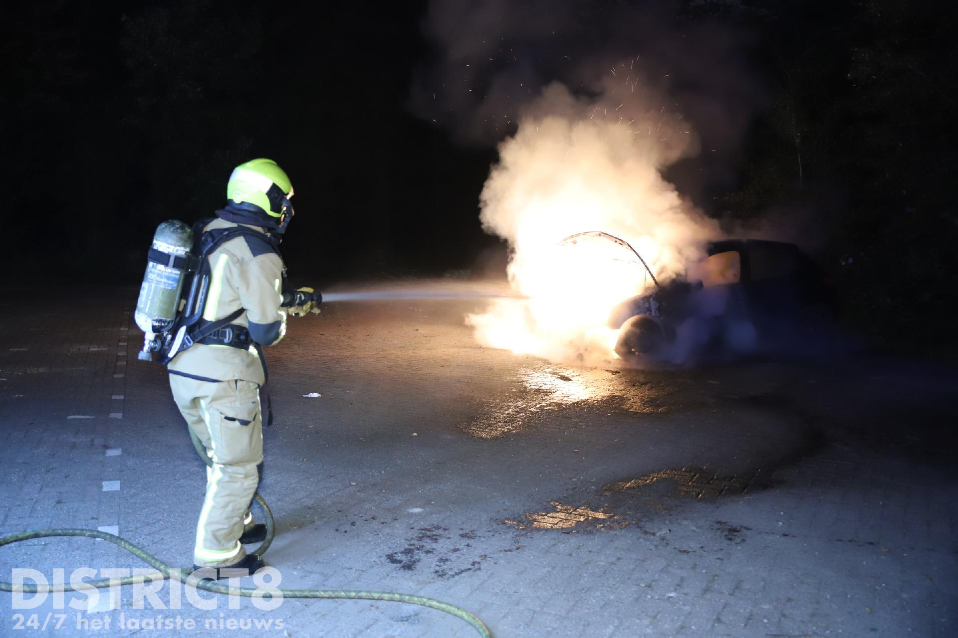 Bij aankomst van de brandweer sloegen de vlammen al metershoog boven de auto uit. De auto was niet meer te redden.