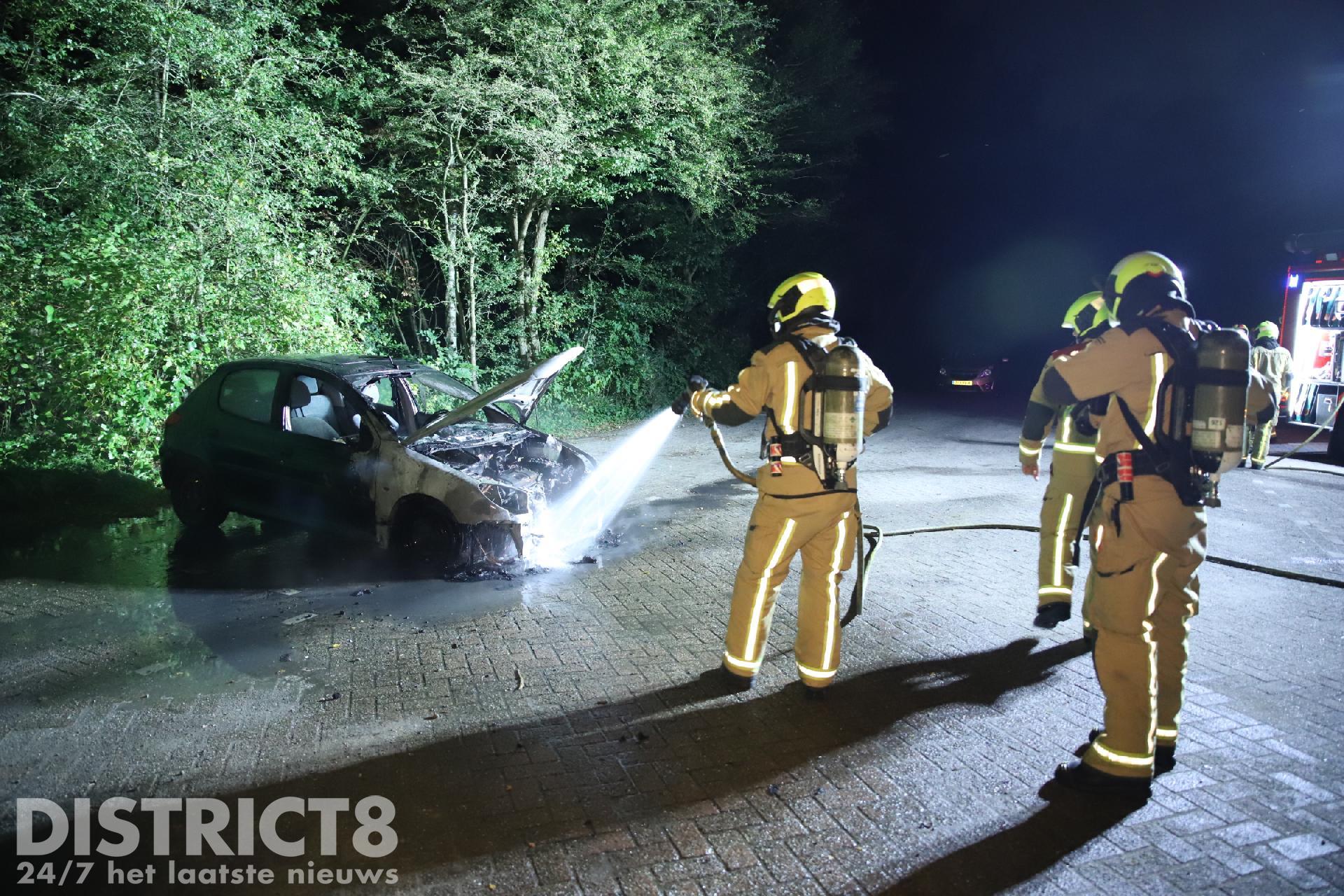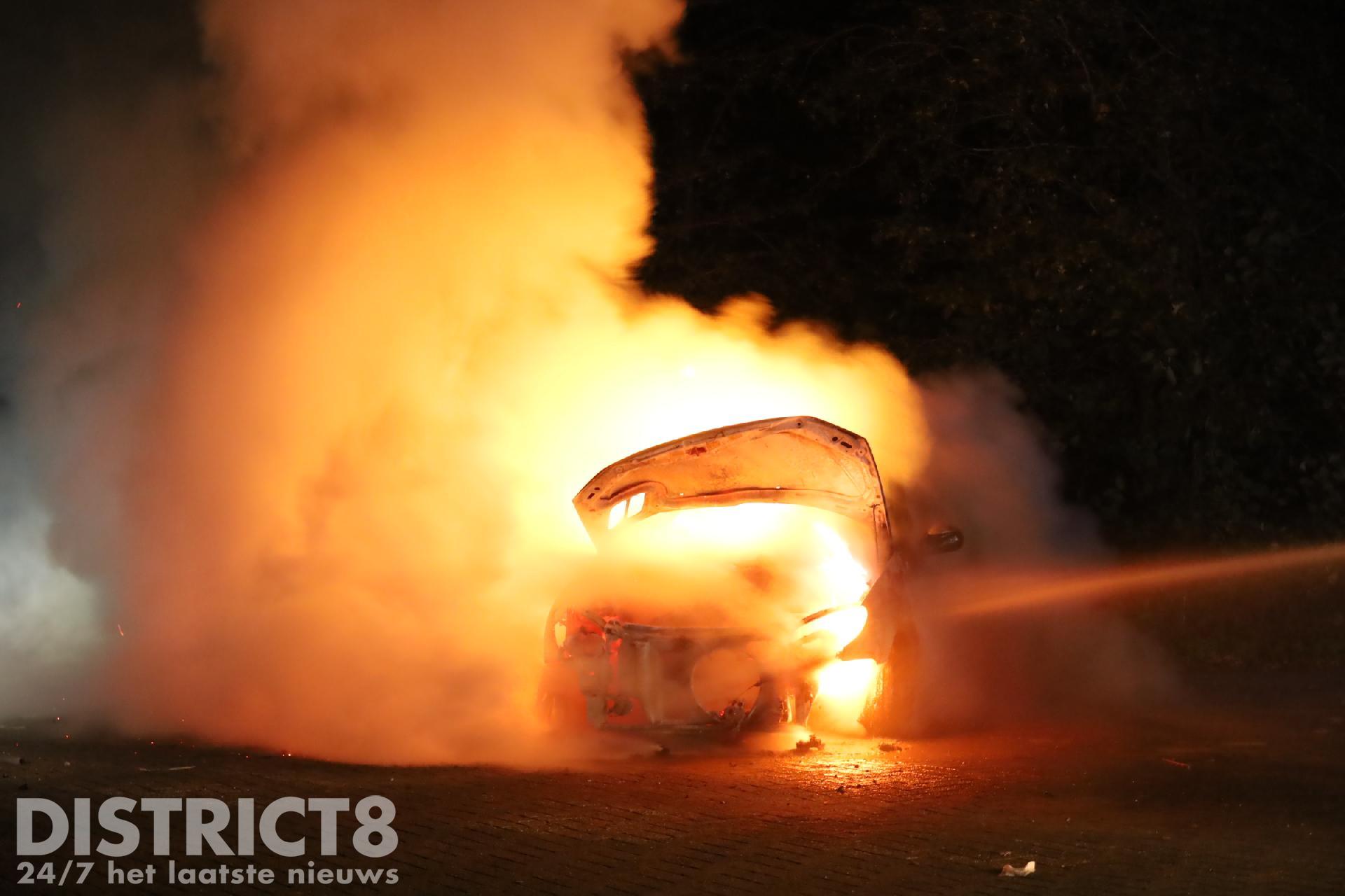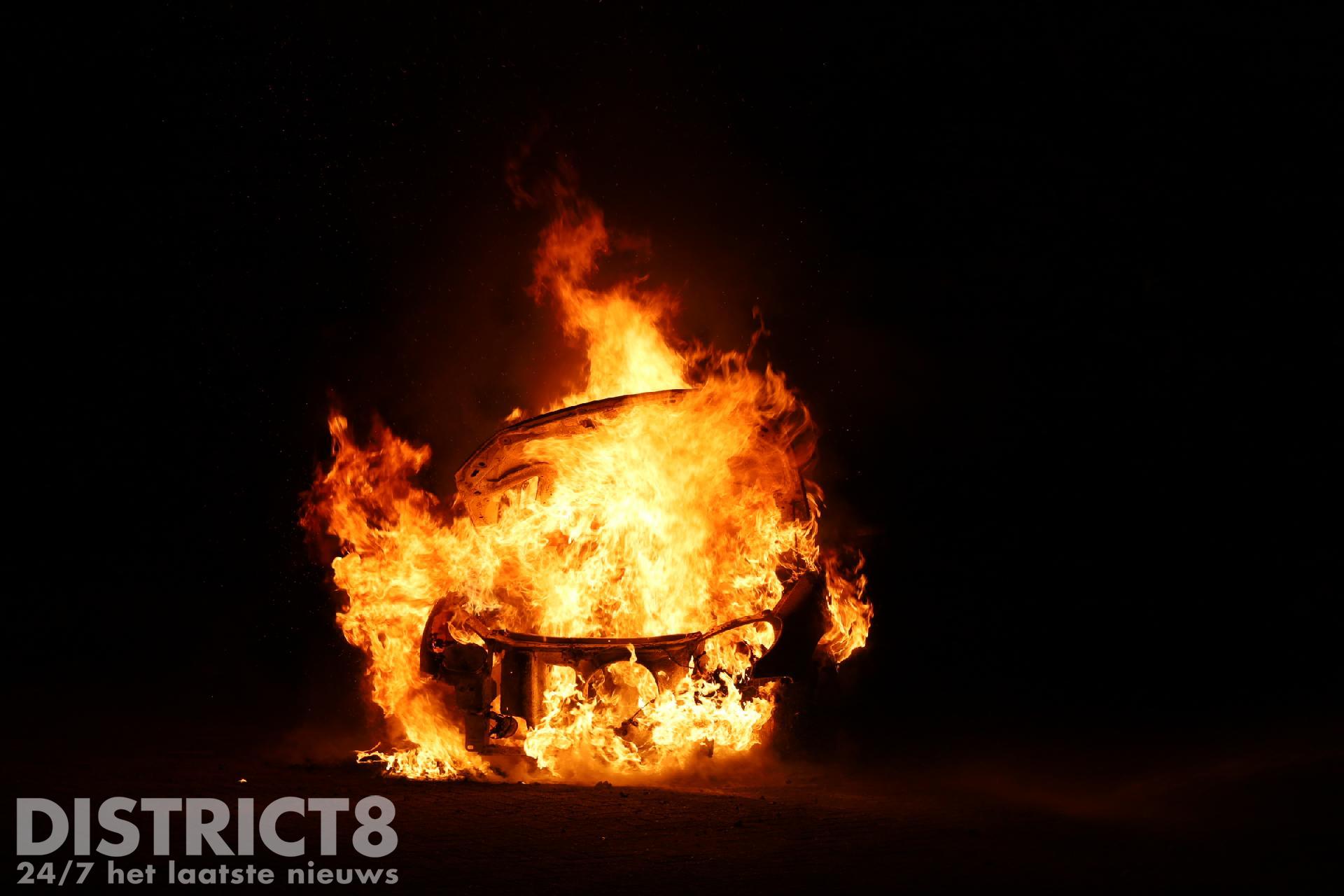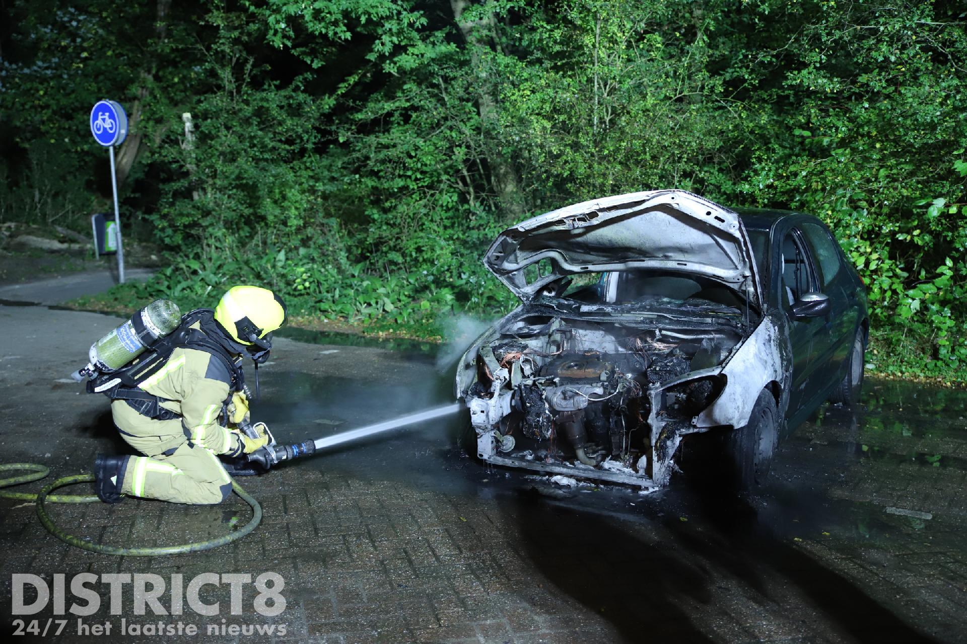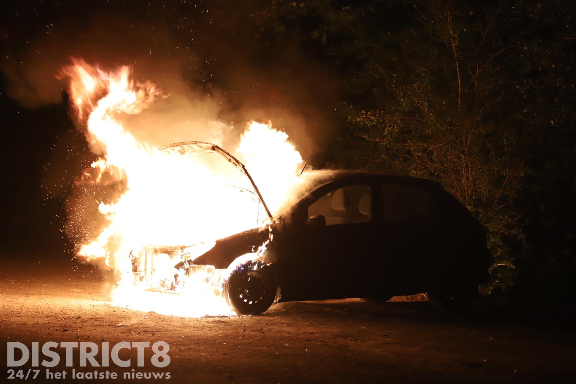 Bij aankomst van de brandweer sloegen de vlammen al metershoog boven de auto uit. De auto was niet meer te redden.