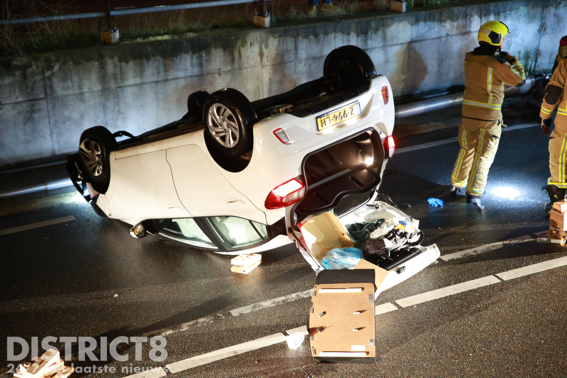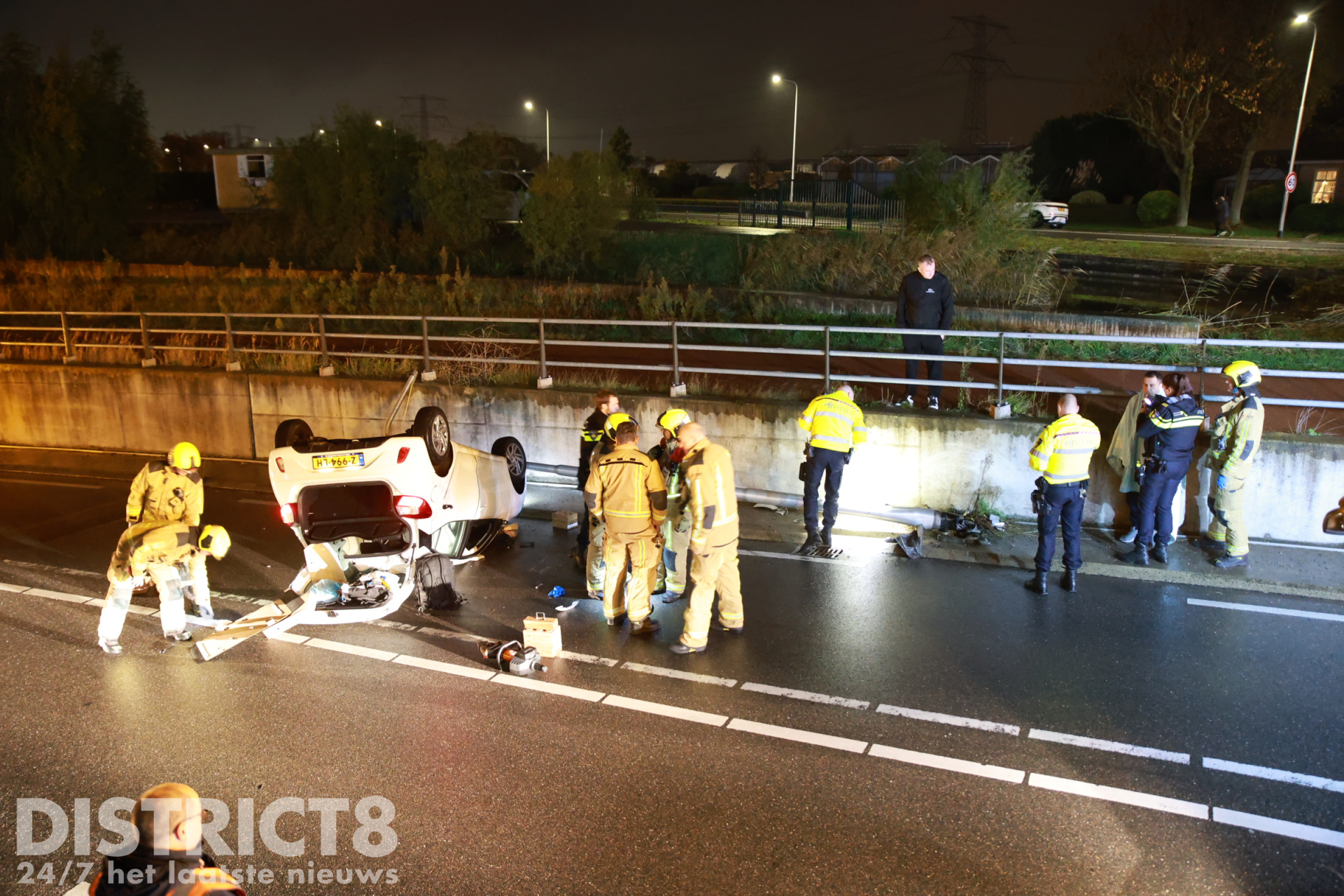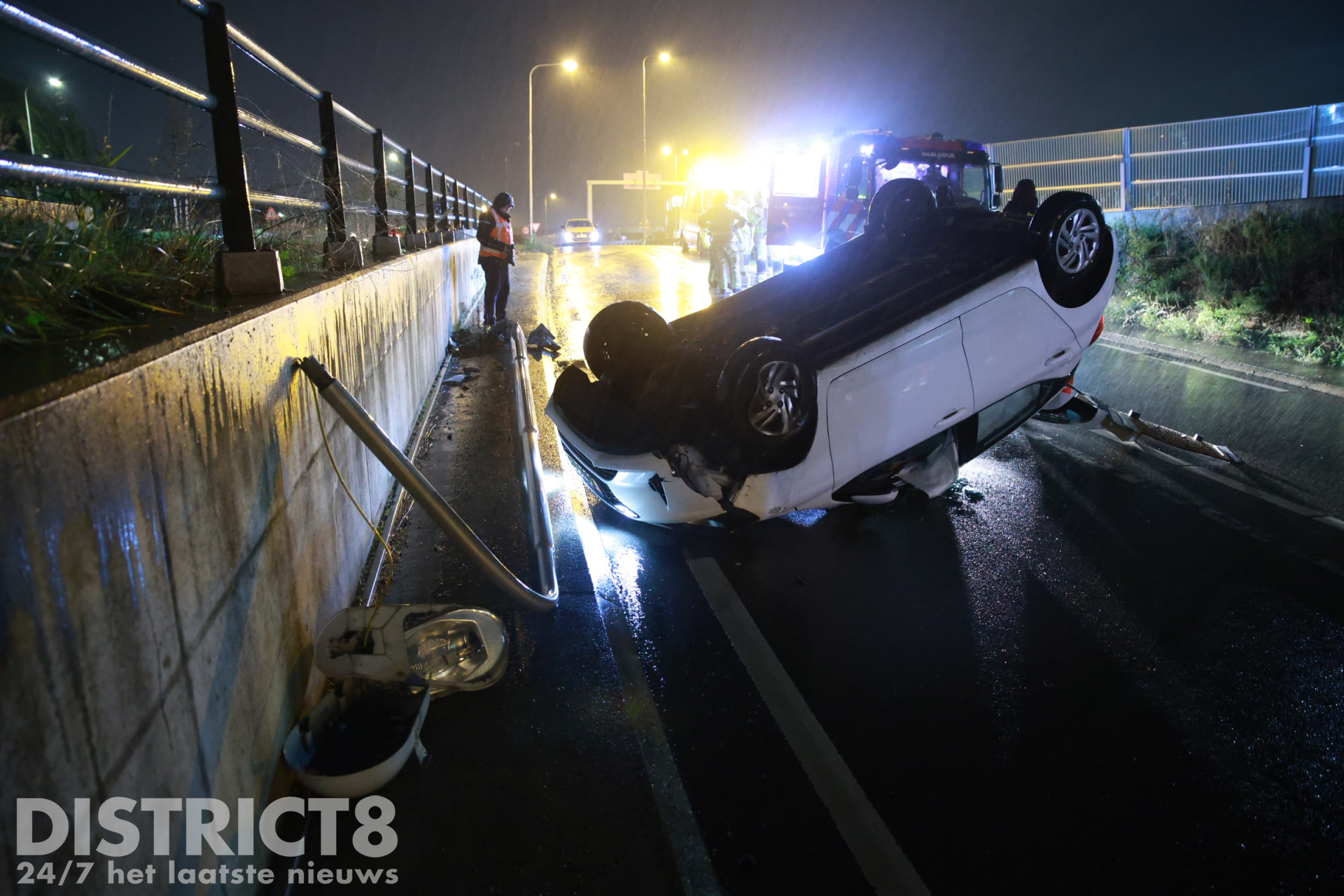 De bestuurder wist zelfstandig uit het voertuig te komen en is ter controle nagekeken door het ambulancepersoneel. Politie, brandweer en ambulance kwamen met spoed ter plaatse.