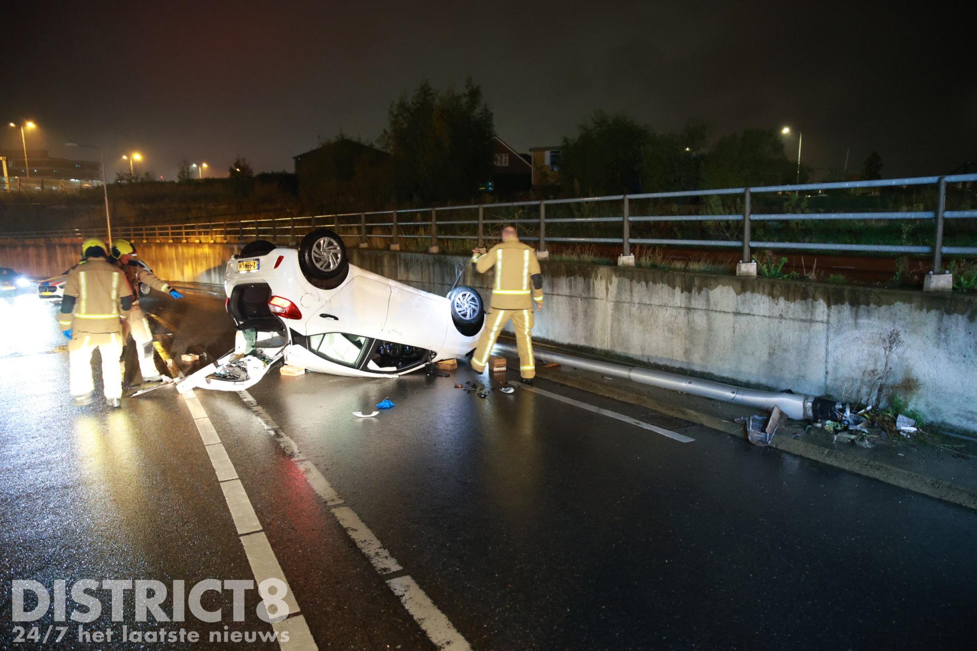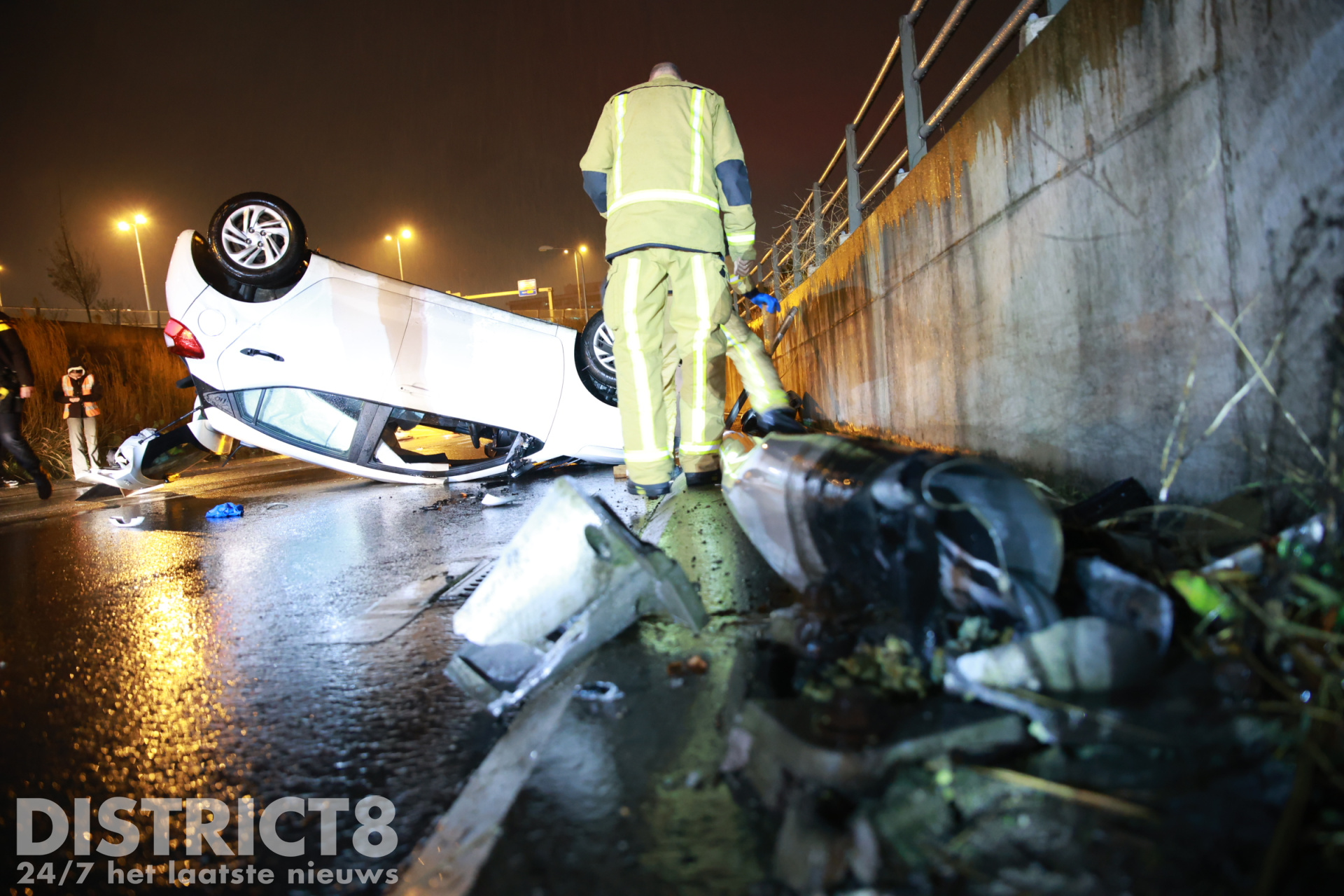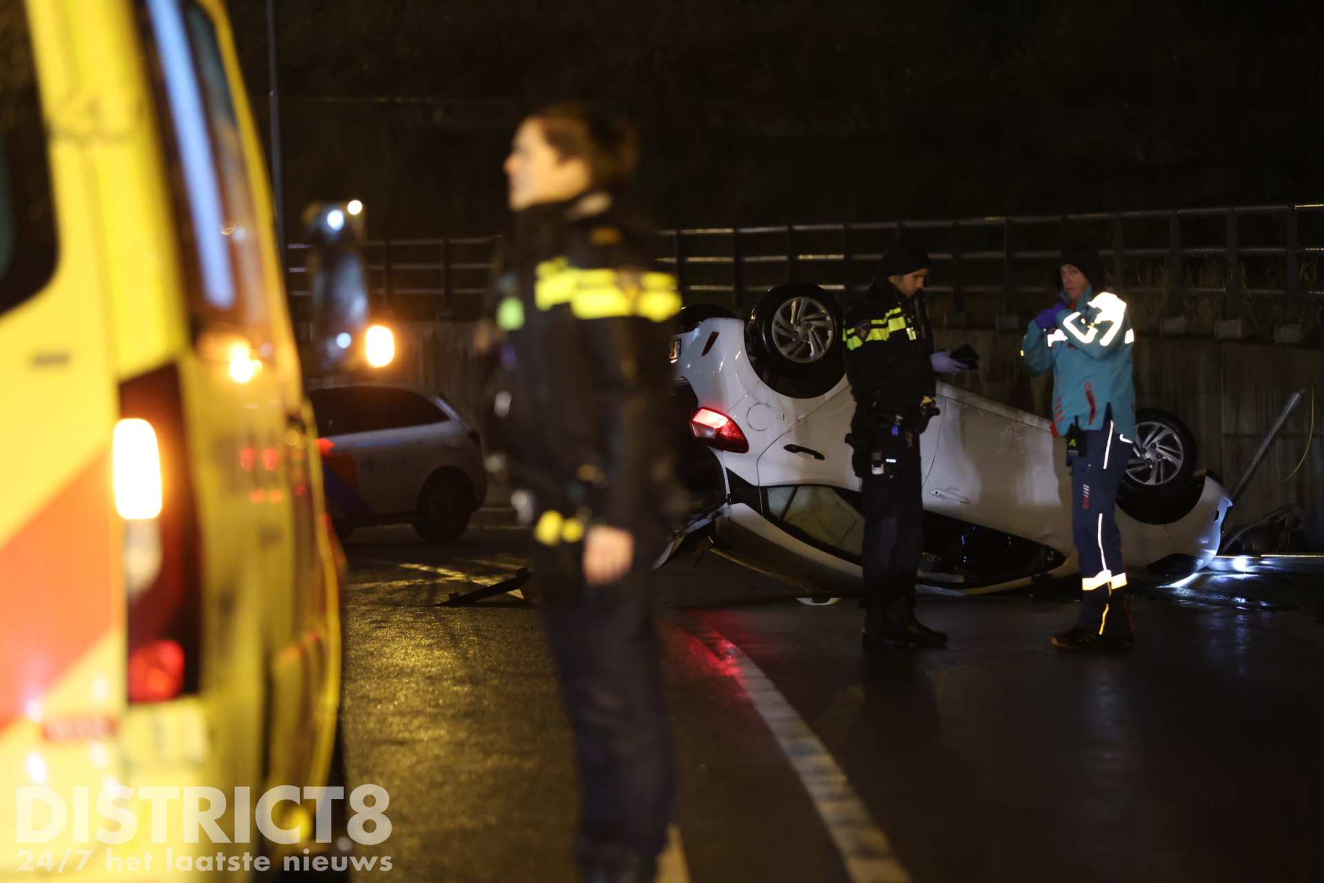 De bestuurder wist zelfstandig uit het voertuig te komen en is ter controle nagekeken door het ambulancepersoneel. Politie, brandweer en ambulance kwamen met spoed ter plaatse.