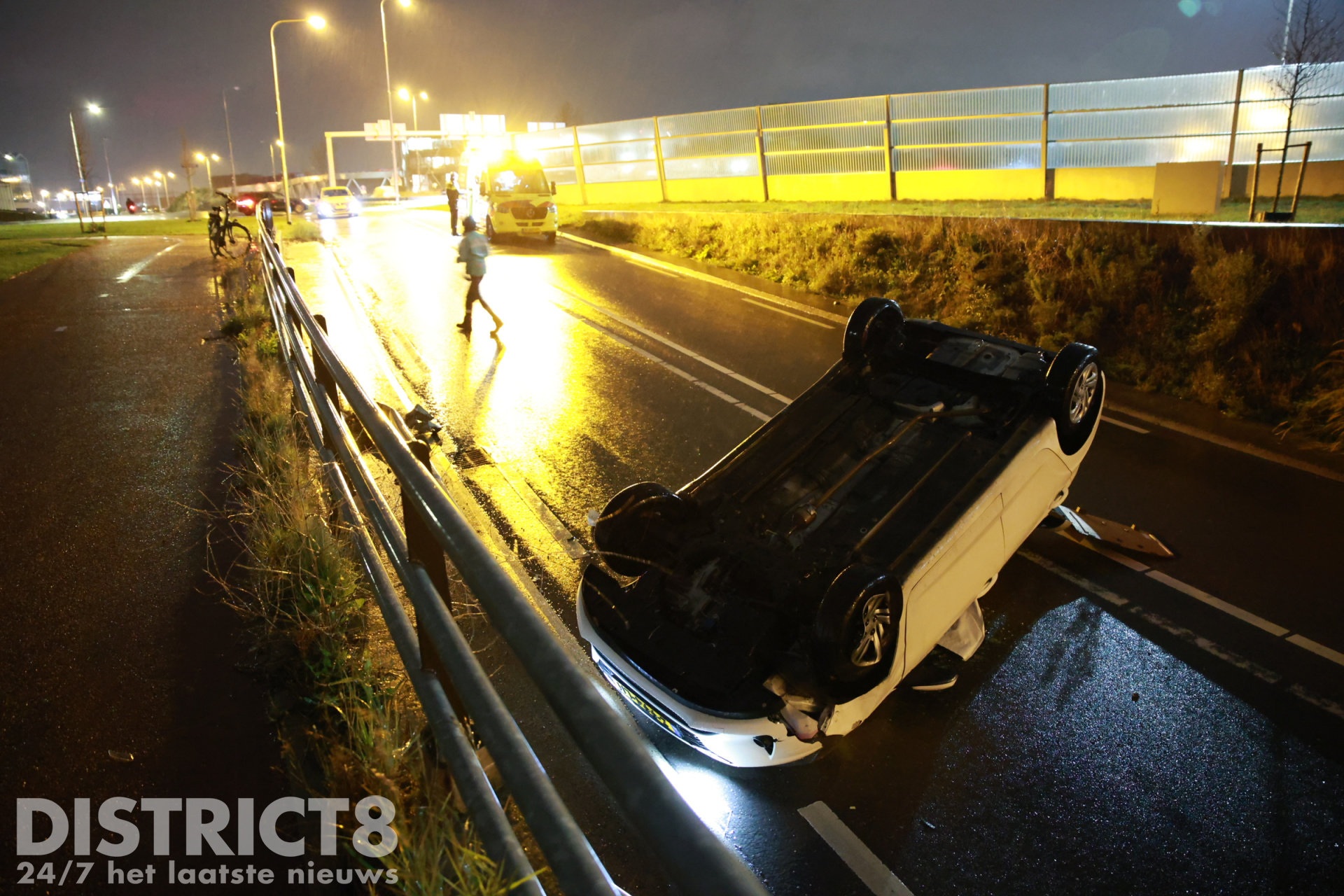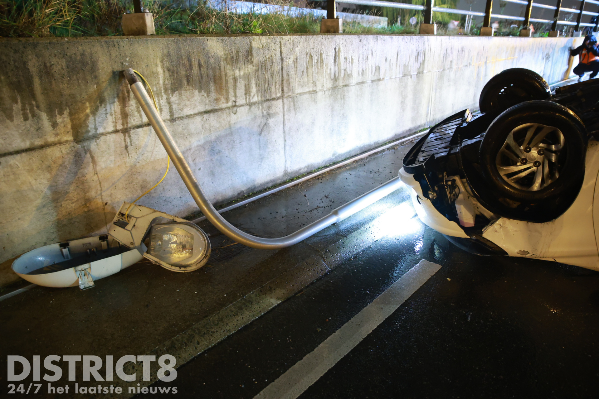 Naaldwijk – Op het Blauwhek in Naaldwijk is zaterdagavond een personenauto op z’n dak terechtgekomen bij een eenzijdig ongeval. De auto raakte een lichtmast en sloeg daarna over de kop.