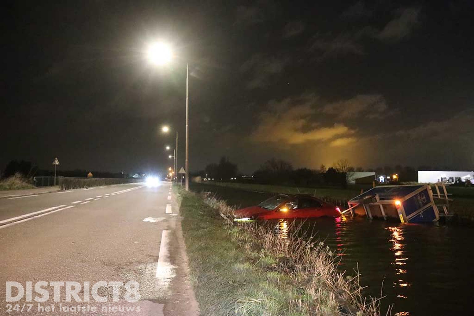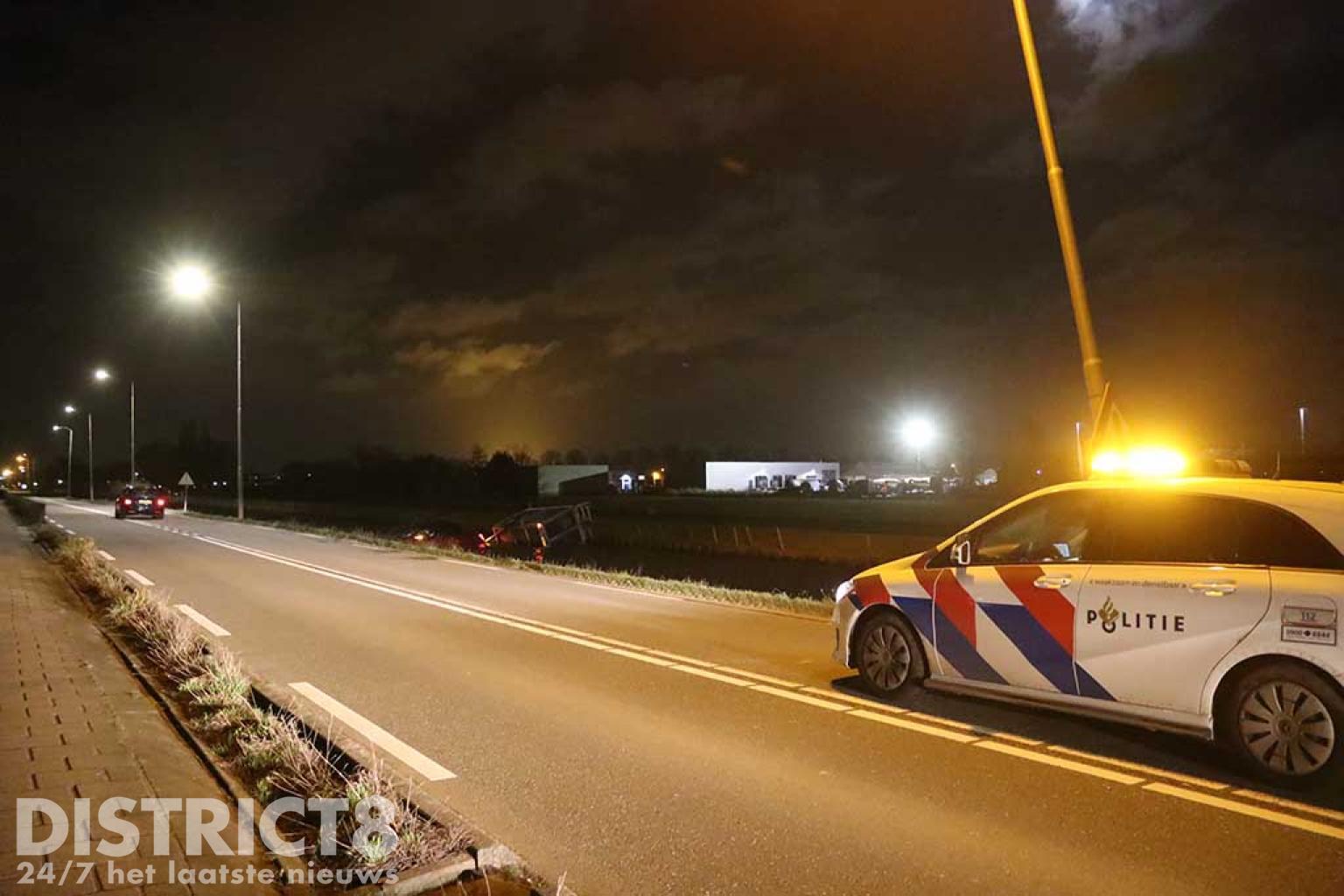 Door een onbekende oorzaak kwam de personenauto in de naastgelegen sloot terecht. De bestuurder kon zijn auto gelukkig op tijd verlaten, hij raakte niet gewond.