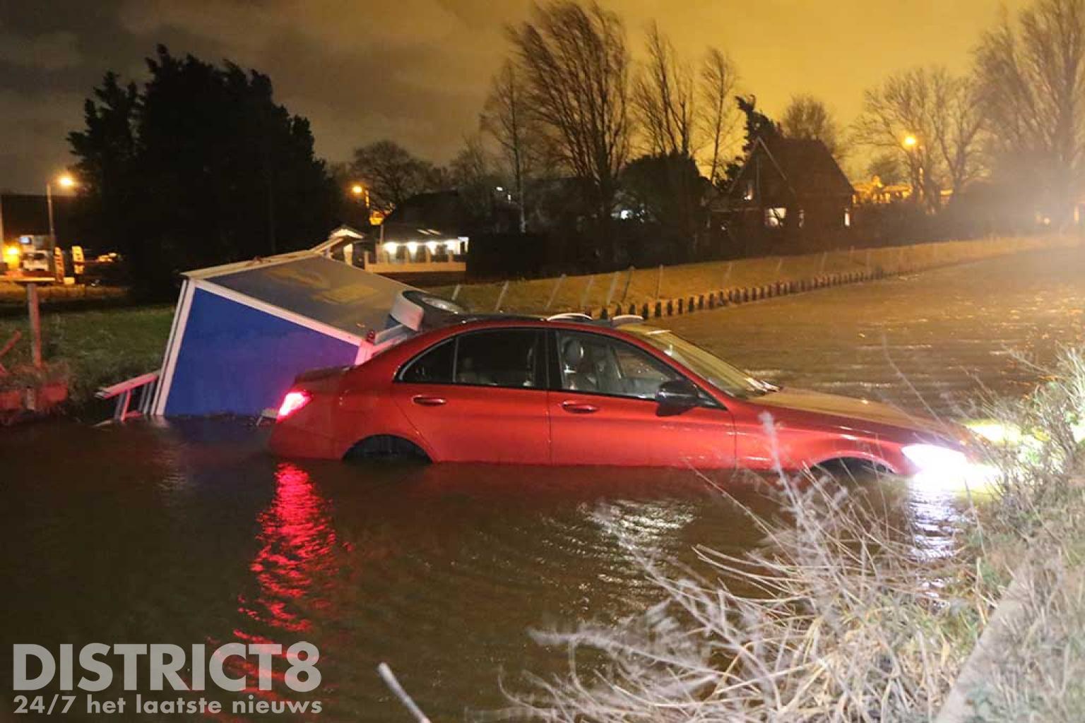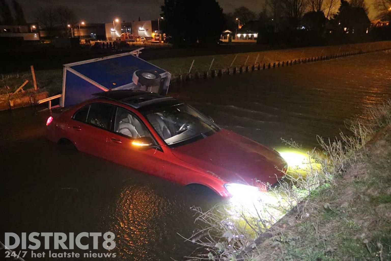 Pijnacker – Op de Katwijkerlaan in Pijnacker is vrijdagavond 18 februari een personenauto met aanhanger te water geraakt.