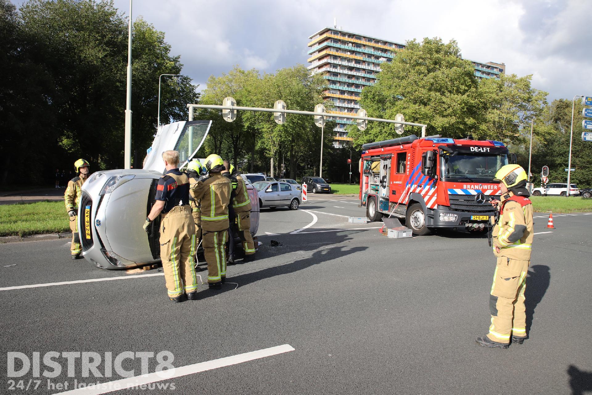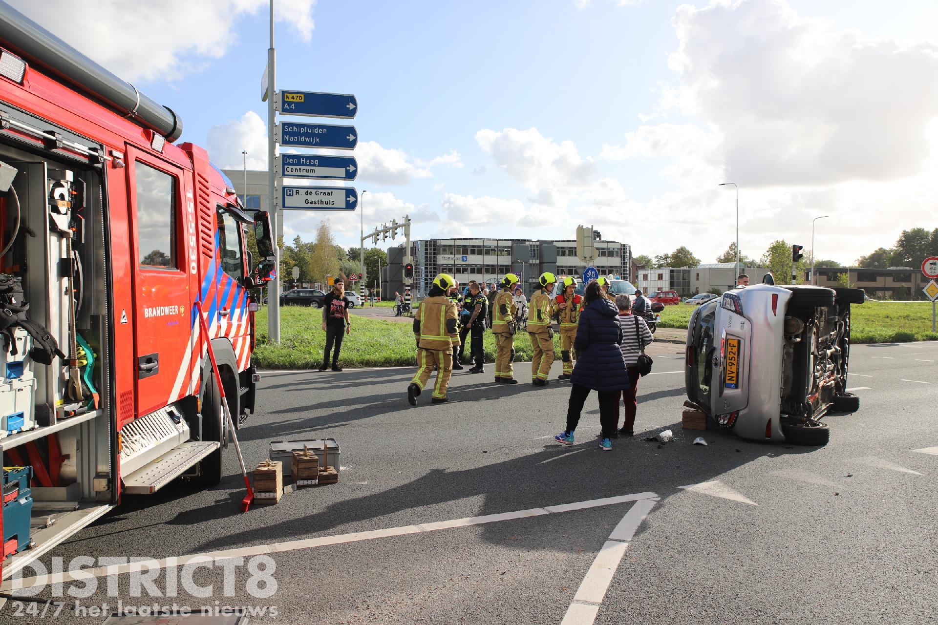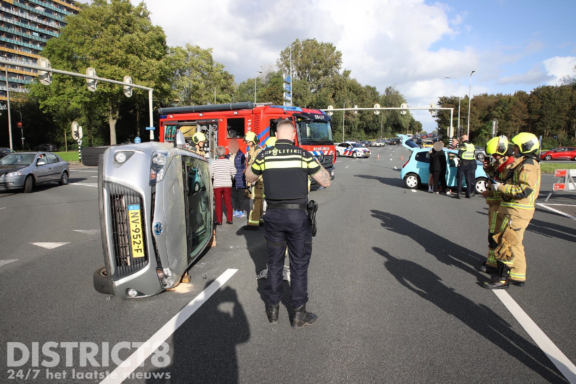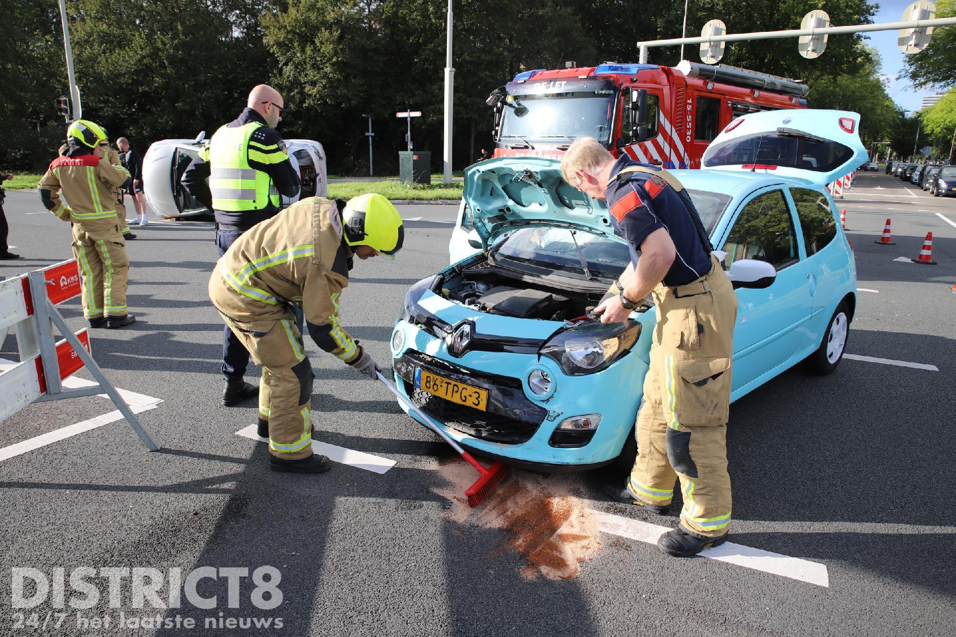 Als gevolg van de aanrijding tussen beide voertuigen belande de een auto op zijn kant. De brandweer heeft de bestuurster van de auto die op zn kant beland was geholpen het voertuig te verlaten. Hierna zijn twee personen nagekeken door het toegesnelde ambulancepersoneel.