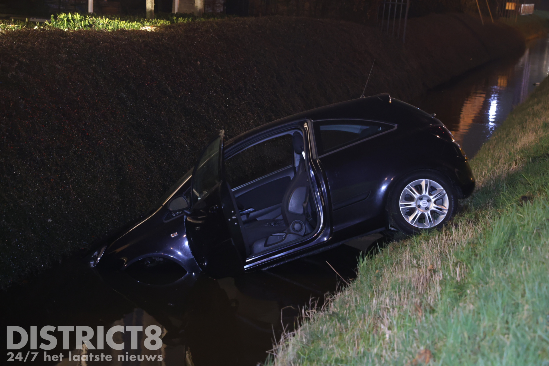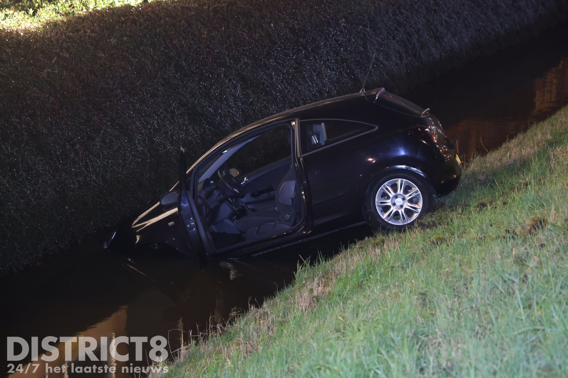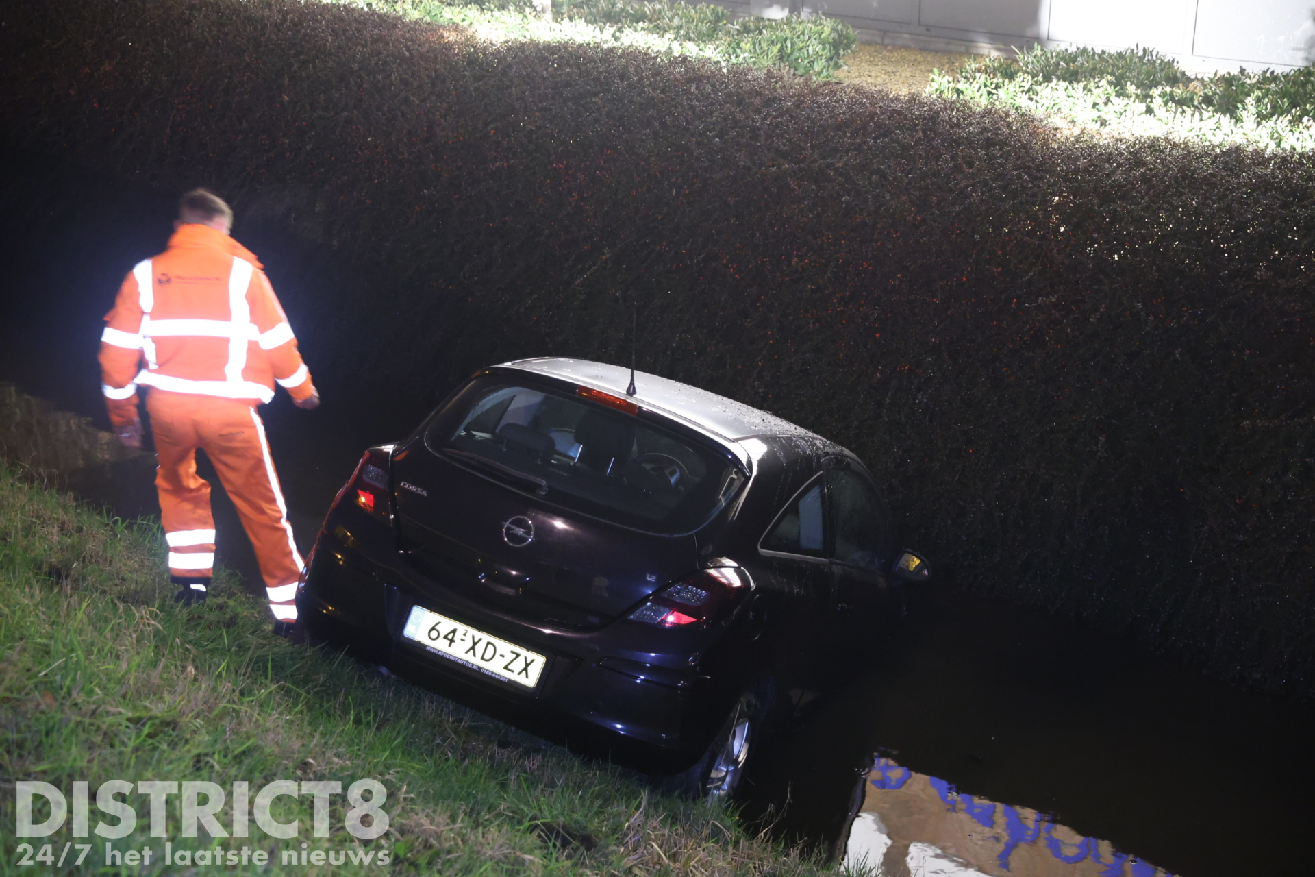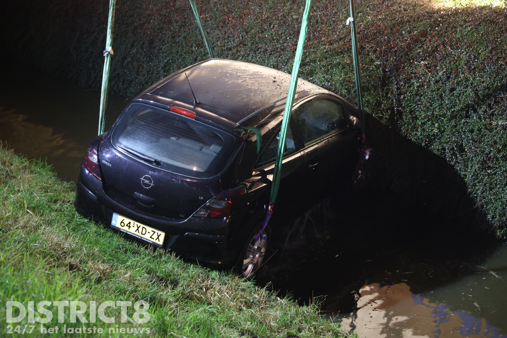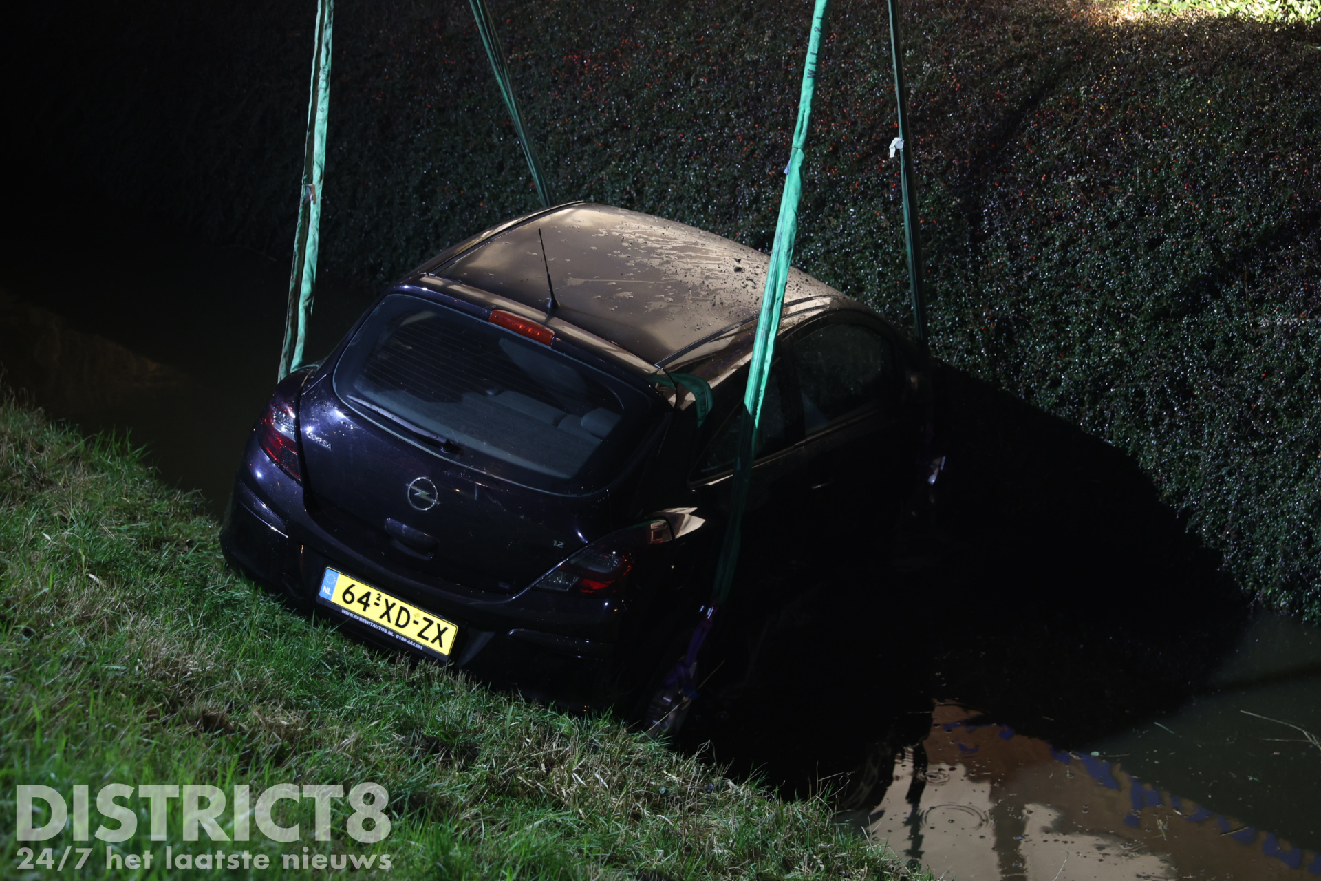 Hoe de automobilist te water kon raken is niet bekend, een berger van bergingsbedrijf Vreugdenhil heeft de auto uiteindelijk met een kraan uit het water getakeld.