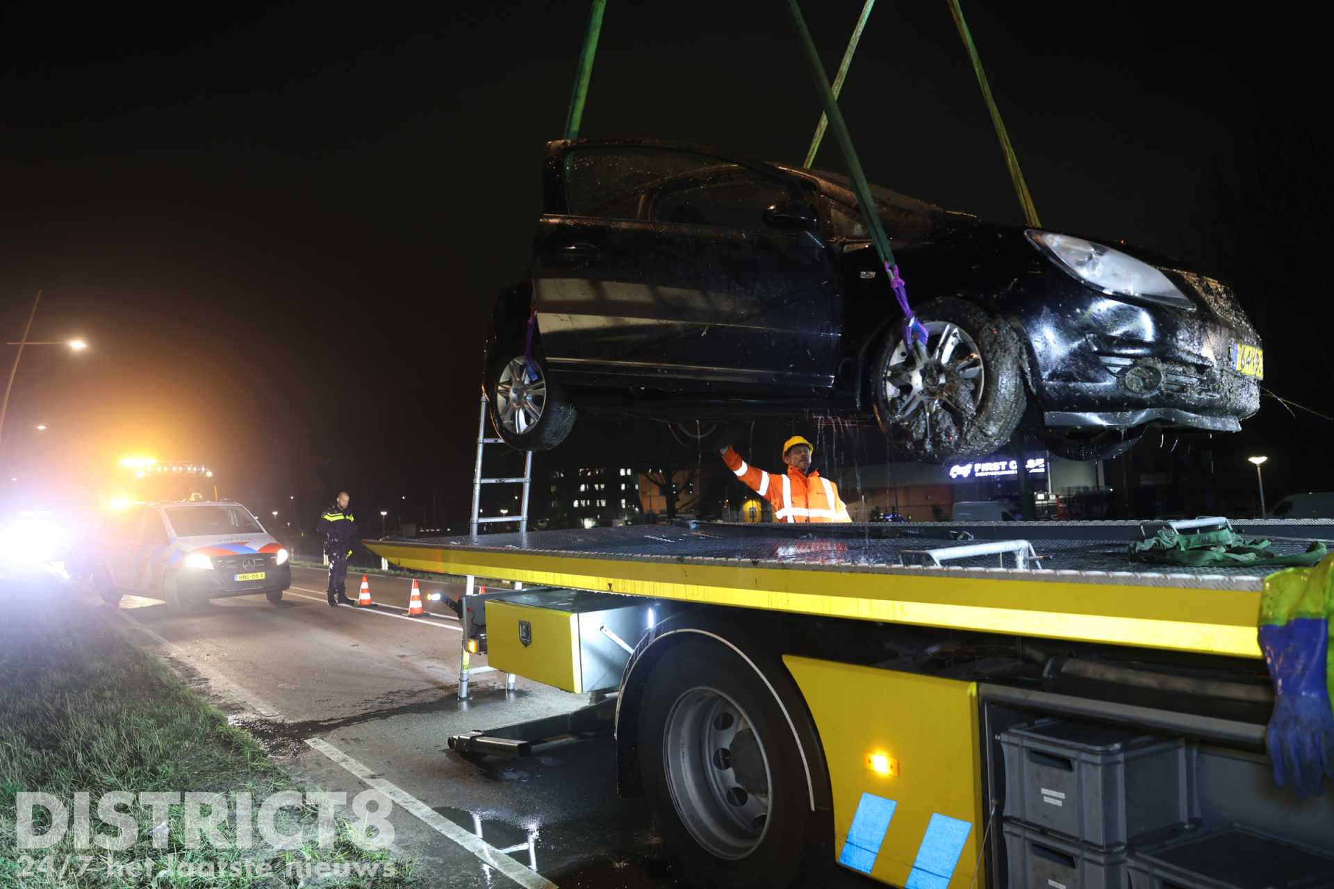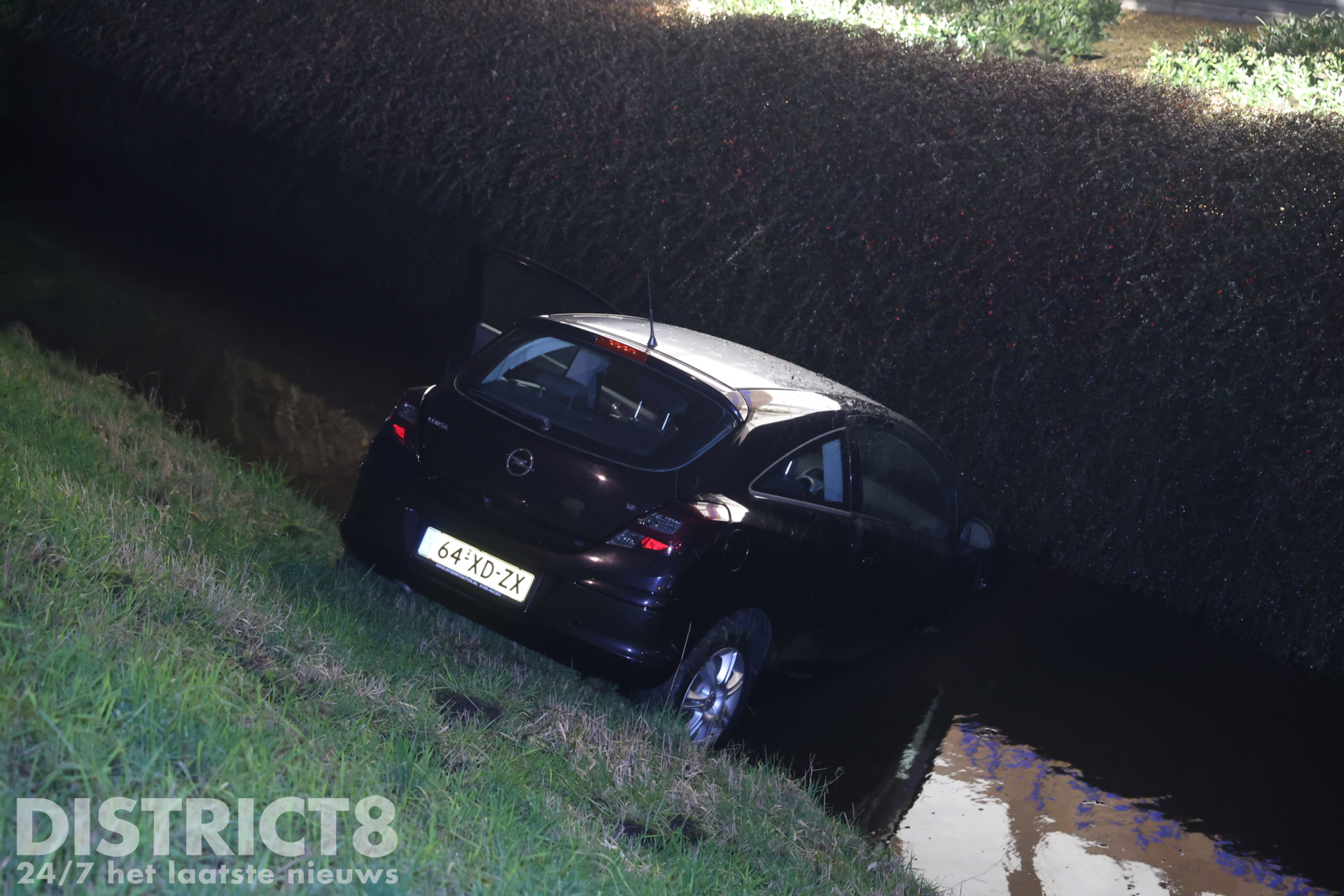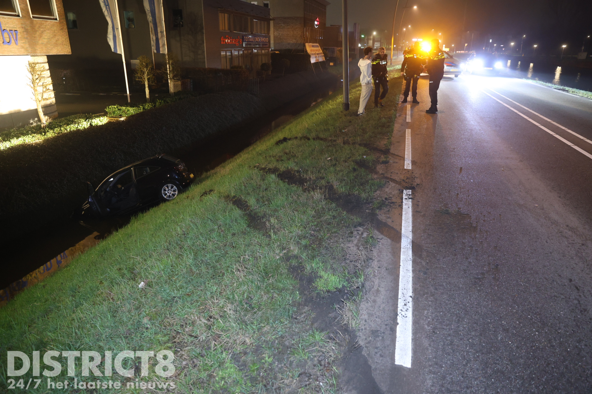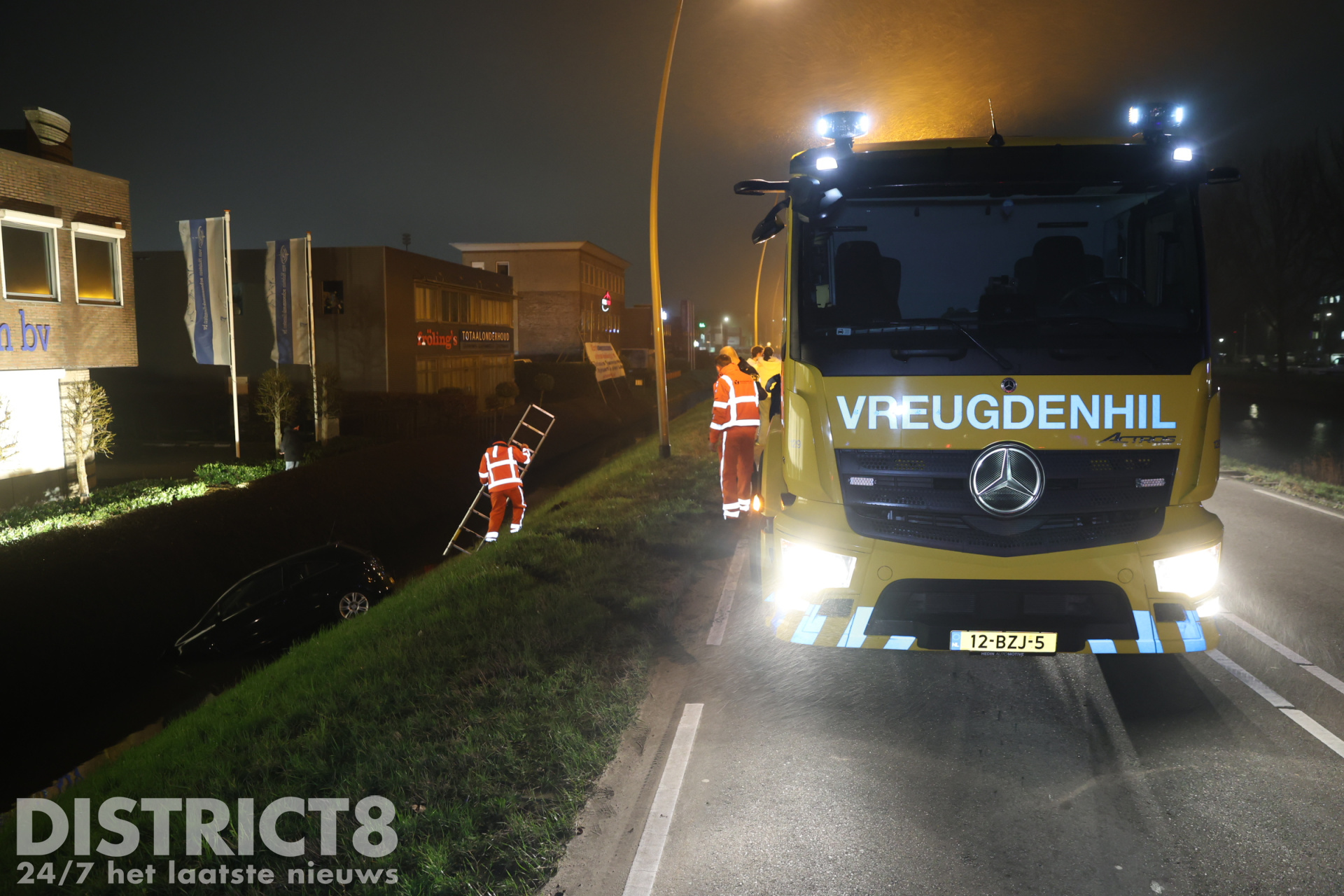 Hoe de automobilist te water kon raken is niet bekend, een berger van bergingsbedrijf Vreugdenhil heeft de auto uiteindelijk met een kraan uit het water getakeld.