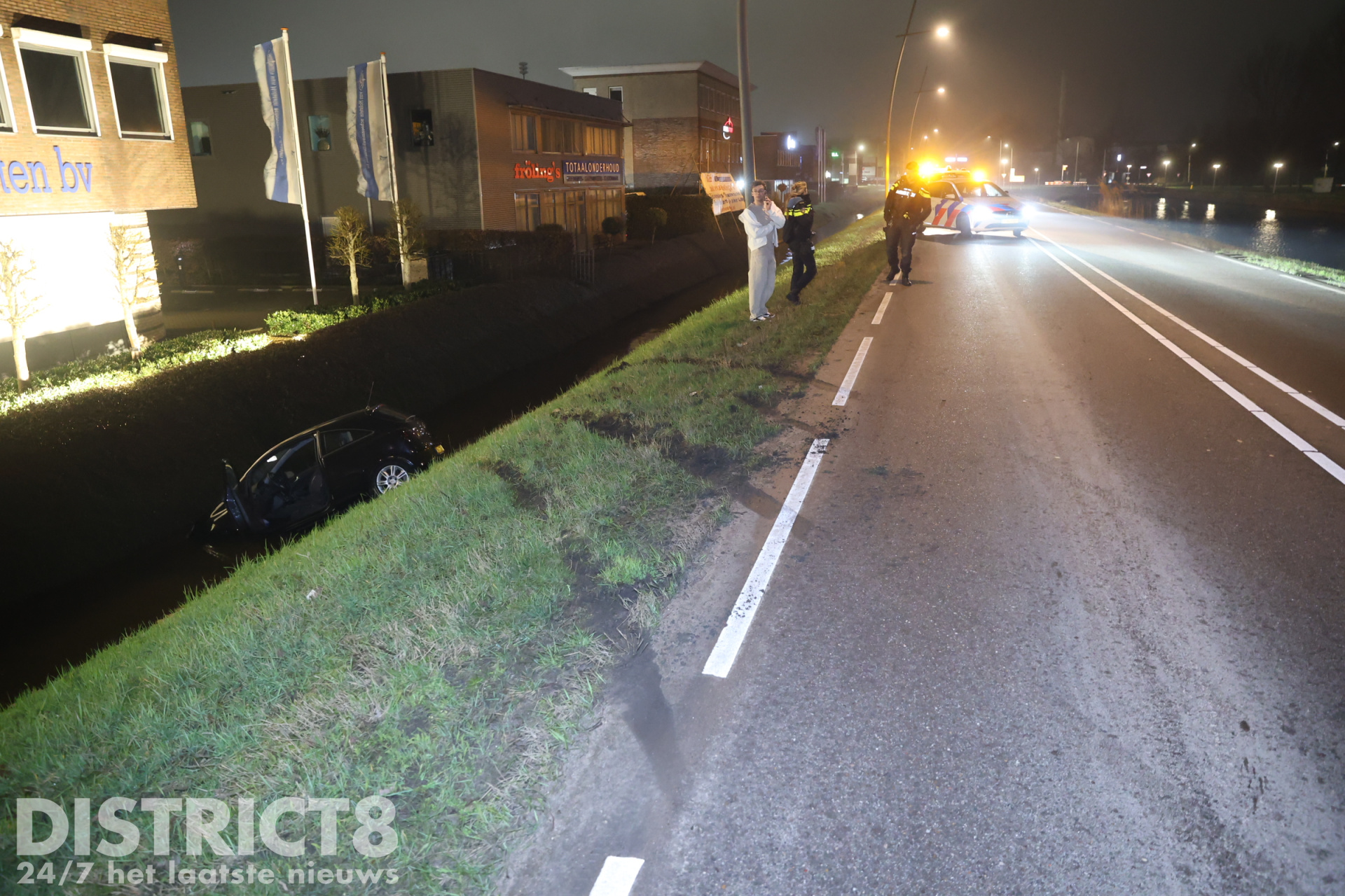 Personenauto raakt van de weg en belandt in water Dorpskade Wateringen