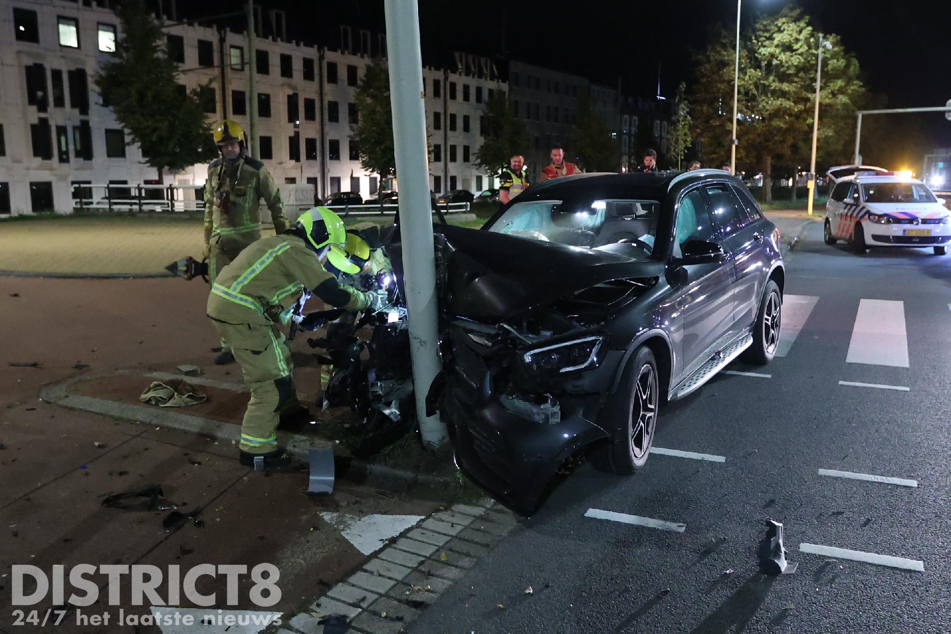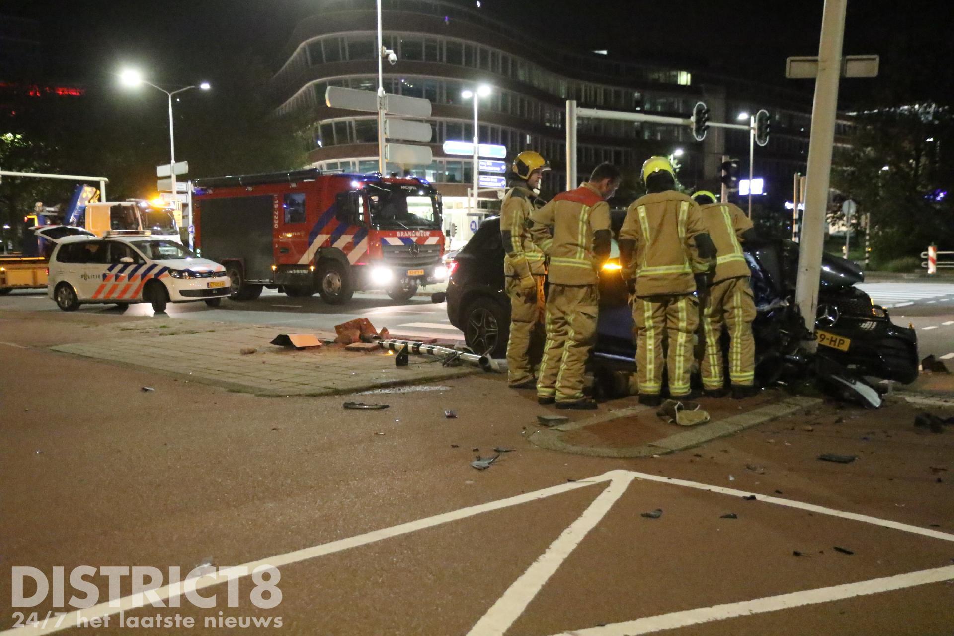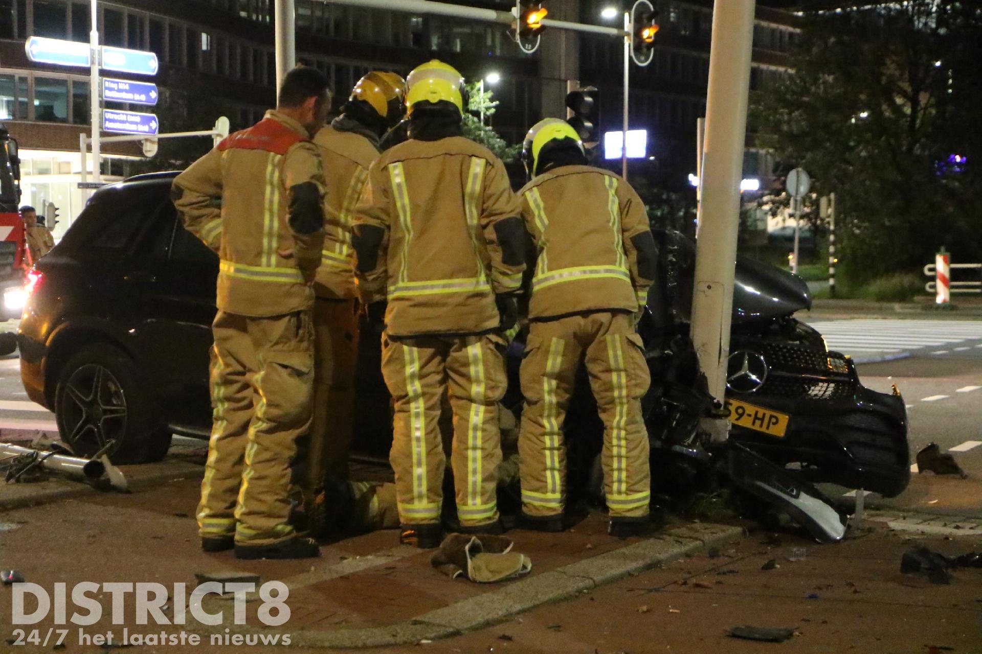 Ter plaatse was een personenauto over een verkeerslicht gereden en tot stilstand gekomen tegen een lichtmast.