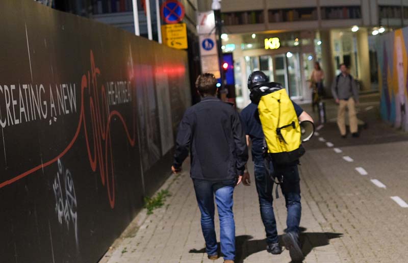 De onderhandelaar heeft met een megafoon geprobeerd om de persoon te benaderen. Echter krijgt hij vanaf de hijskraan geen reactie van een persoon. Om die reden is de politiehelikopter aangestuurd en is een arrestatieteam ter plaatse geroepen.