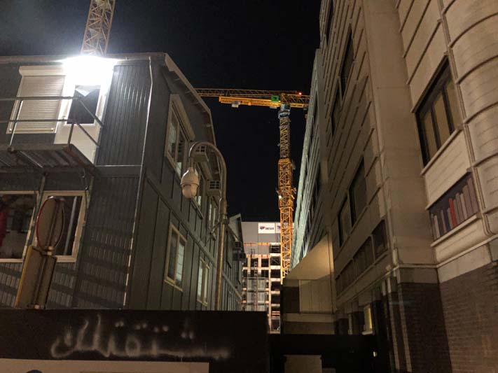 Op het bouwterrein zou een mogelijk verward persoon in een hijskraan zijn geklommen. Omdat de hulpdiensten niet zeker wisten of er daadwerkelijk een persoon in de hijskraan zat zijn zij groots uitgerukt naar de melding.