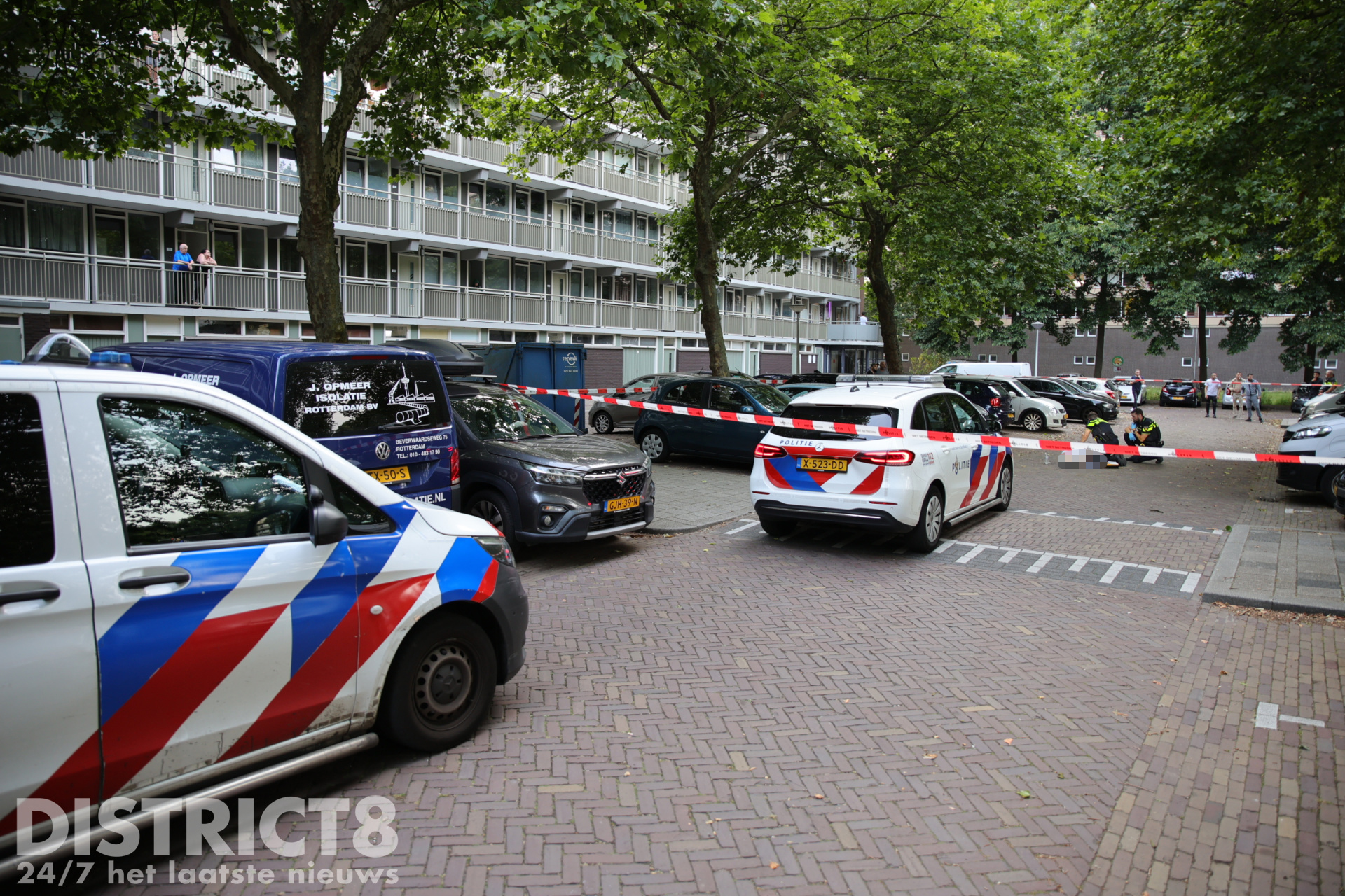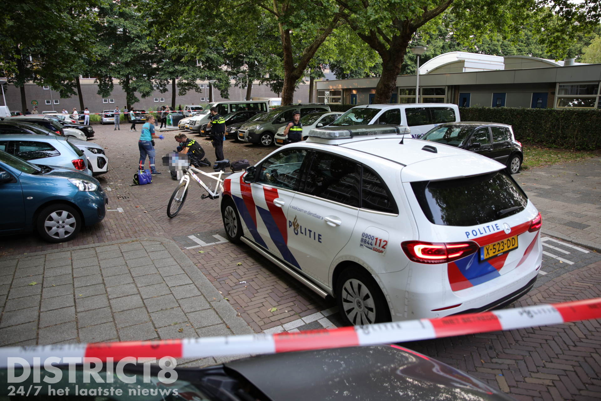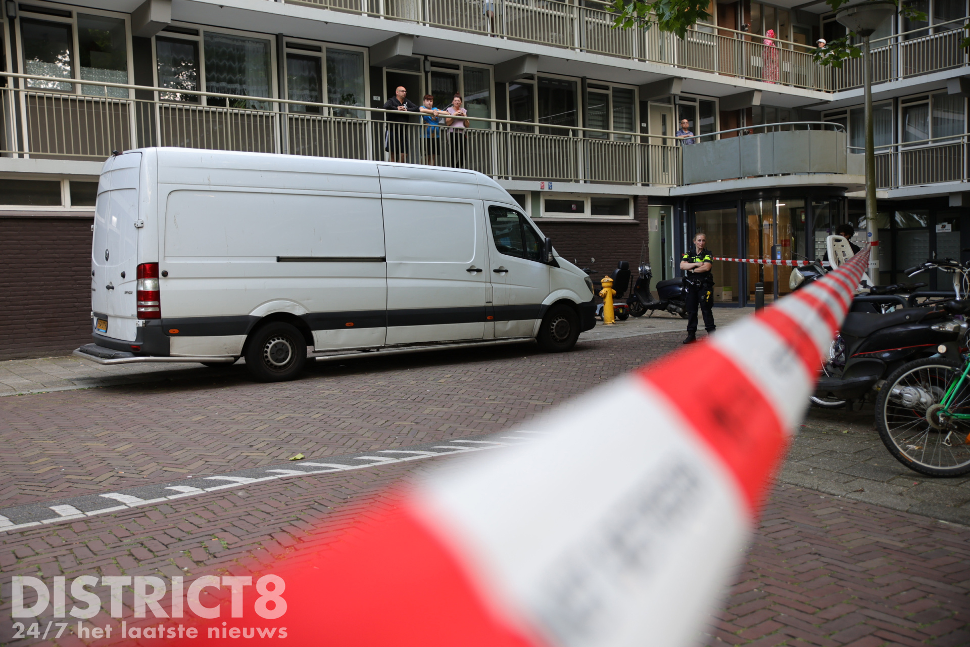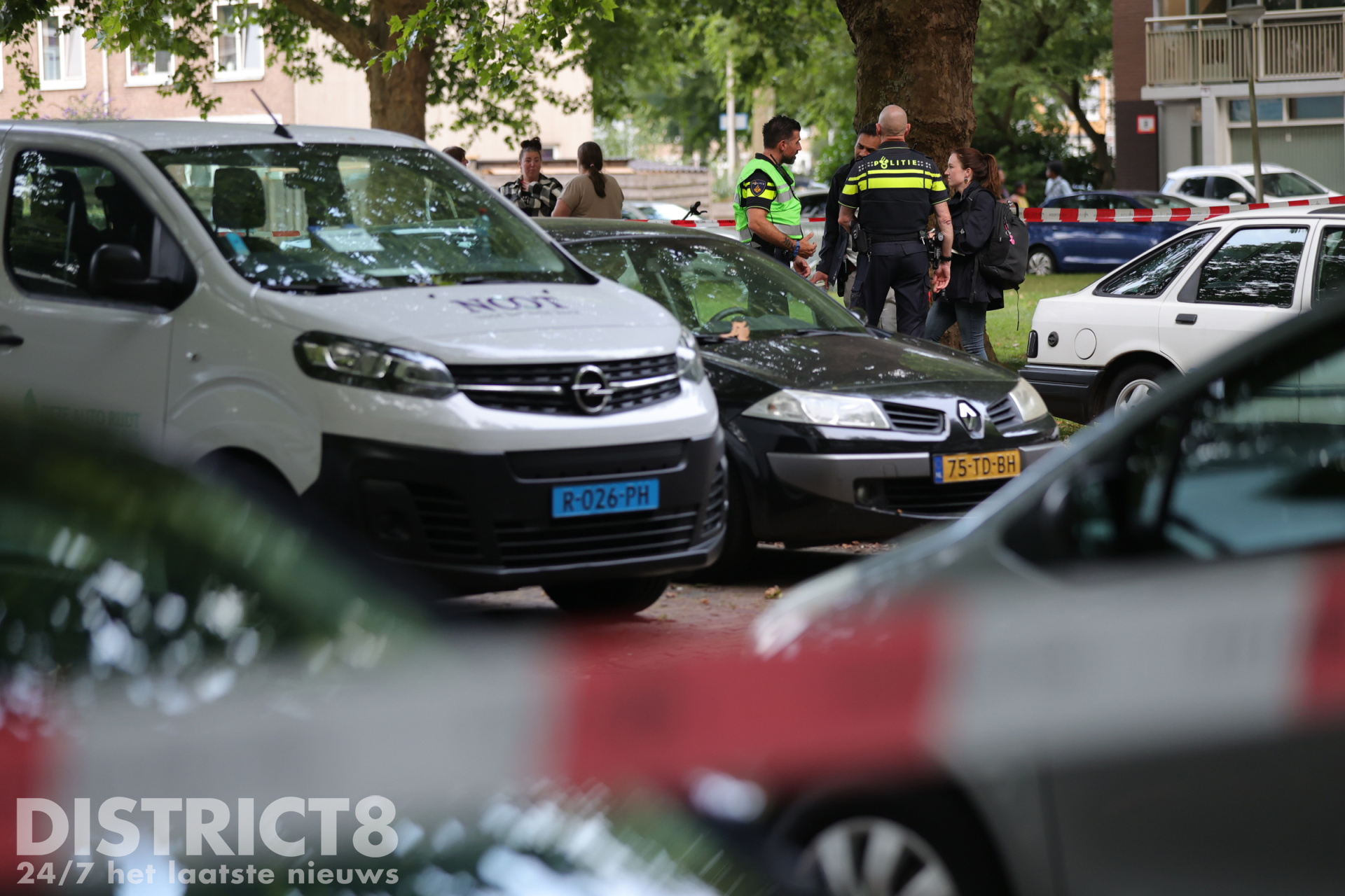 Uiteindelijk hebben agenten onder een witte bestelbus een groot jachtmes gevonden. Deze is in een speciale koker meegenomen om sporen op het mes veilig te houden.
