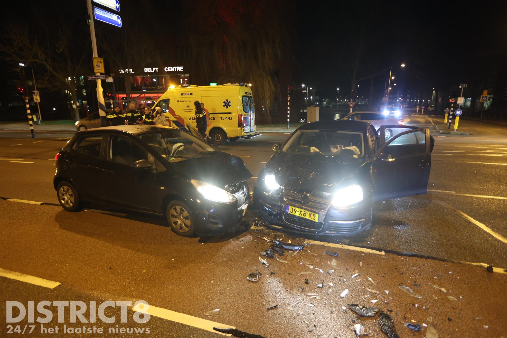 De brandweerlieden van Delft zijn ook kort ter plaatse geweest en hebben hand- en spandiensten verricht. Beide personenautos kunnen als total-loss worden beschouwd.