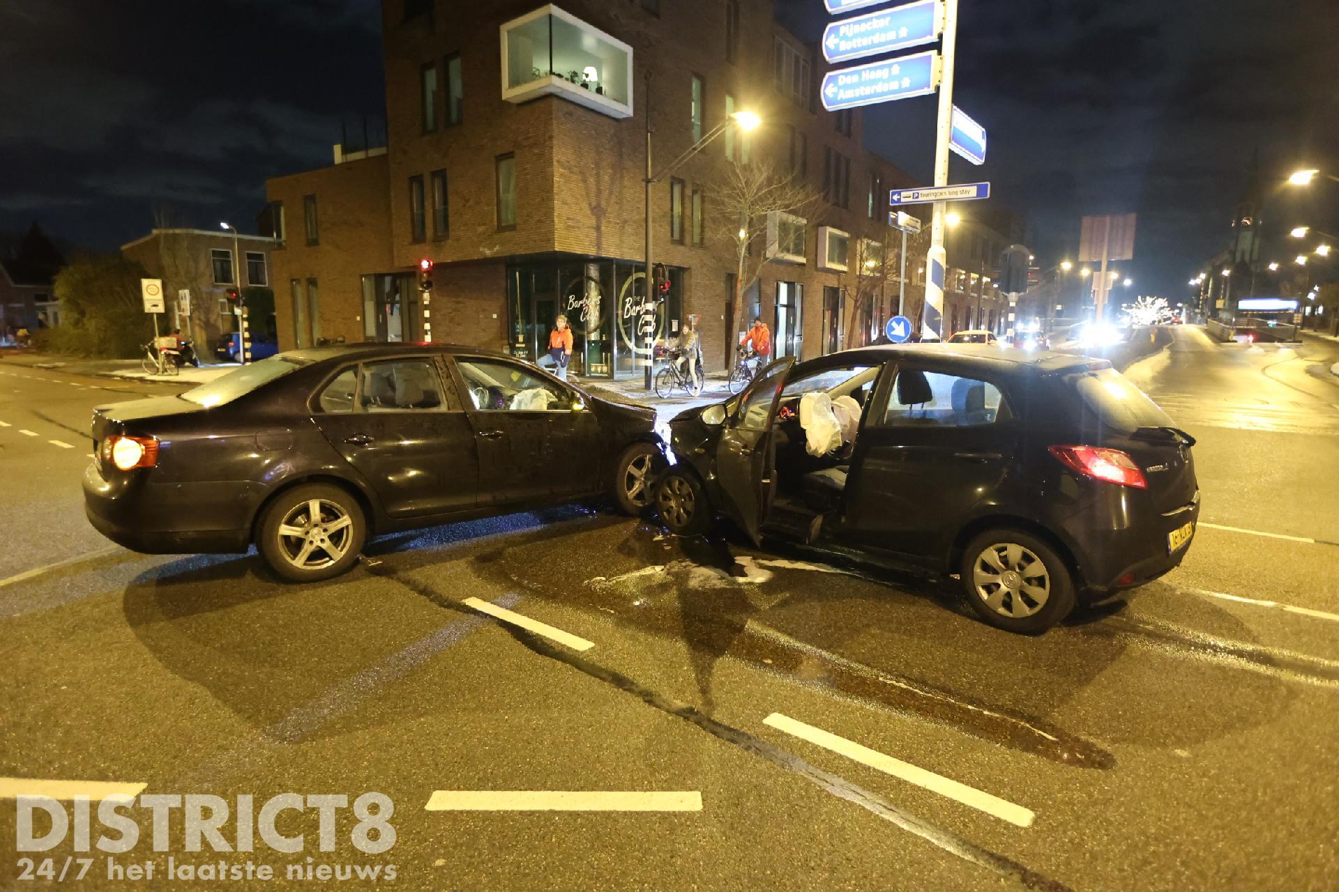 Delft – Op vrijdagavond 19 januari heeft er een aanrijding plaatsgevonden tussen twee personenautos op de kruising van de Willem Naghelstraat met de Stalpaert van der Wieleweg in Delft.