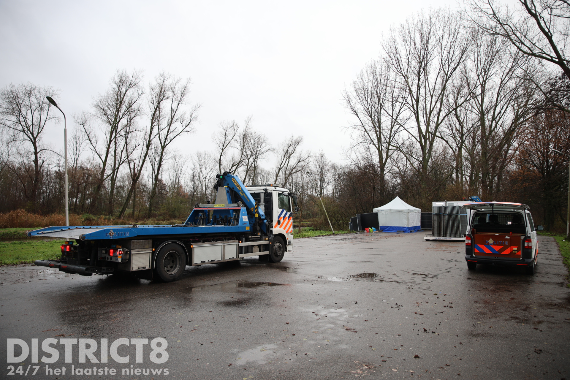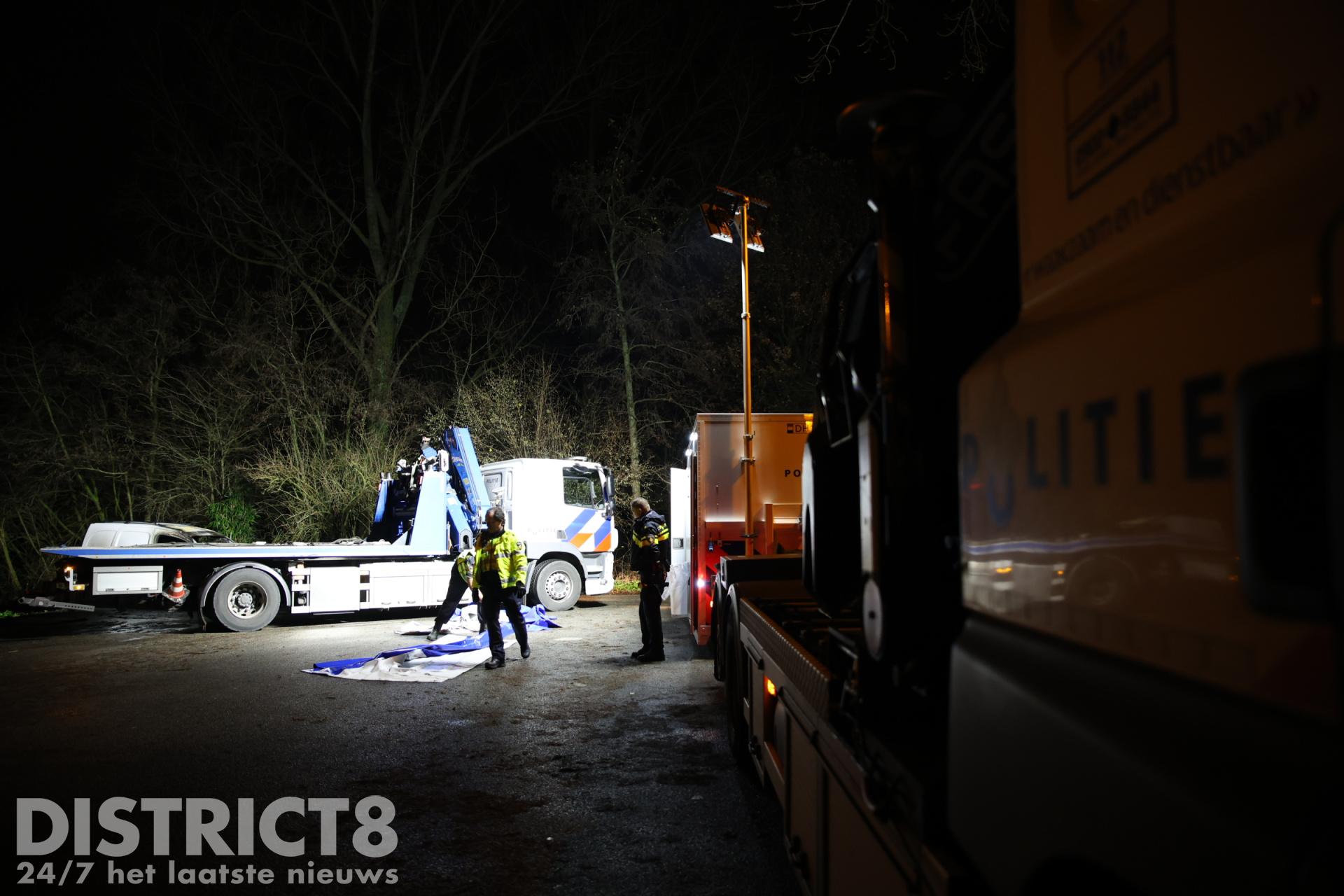 De Forensische Opsporing (FO) doet onderzoek naar de identiteit en de toedracht van het incident. Om het voertuig te onttrekken aan het zicht en het onderzoek makkelijker te laten verlopen is over de uitgebrande wagen een tent geplaatst. Enkele tassen die rondom het voertuig stonden zijn ook onderdeel van het onderzoek.