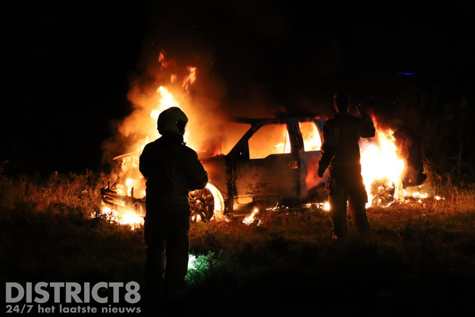 Tijdens de uitruk van de brandweer kwamen er meer telefoontjes binnen dat er een auto in brand zou staan, hierop is de brandweer met spoed doorgereden. Ter plaatse kon de brandweer niet makkelijk bij de brandende auto komen, uiteindelijk is de tankautospuit door een grasveld gereden om bij de brand te komen.