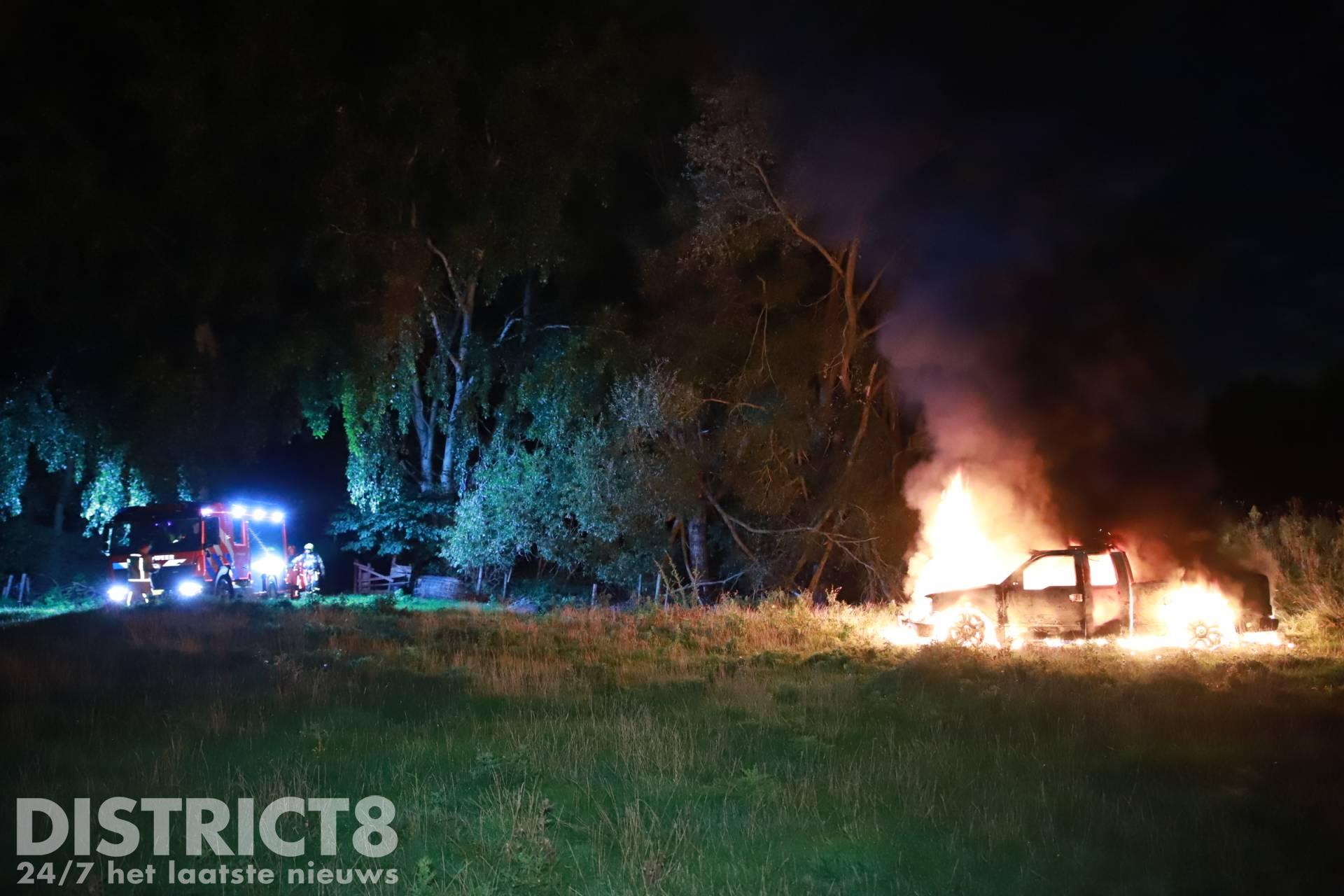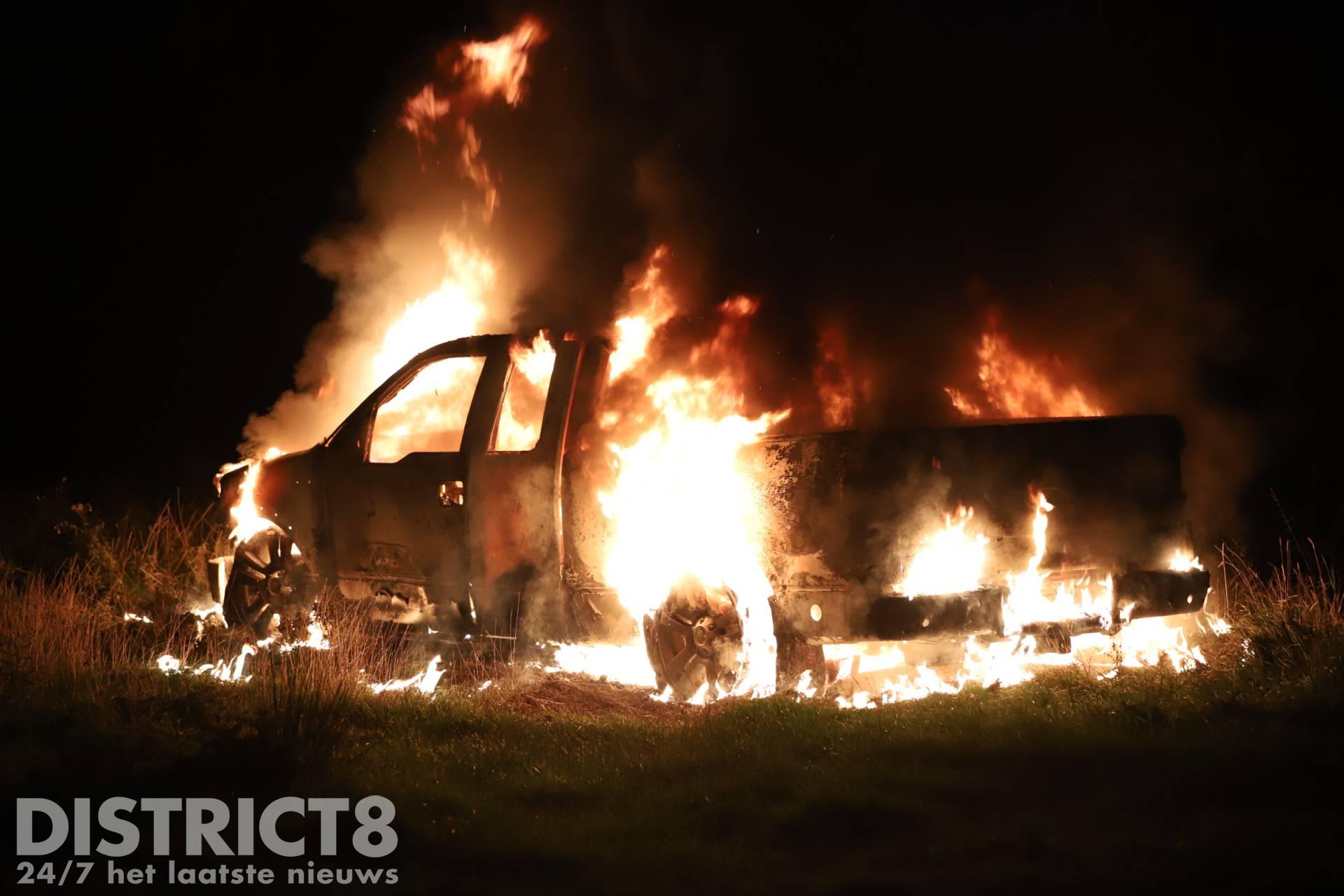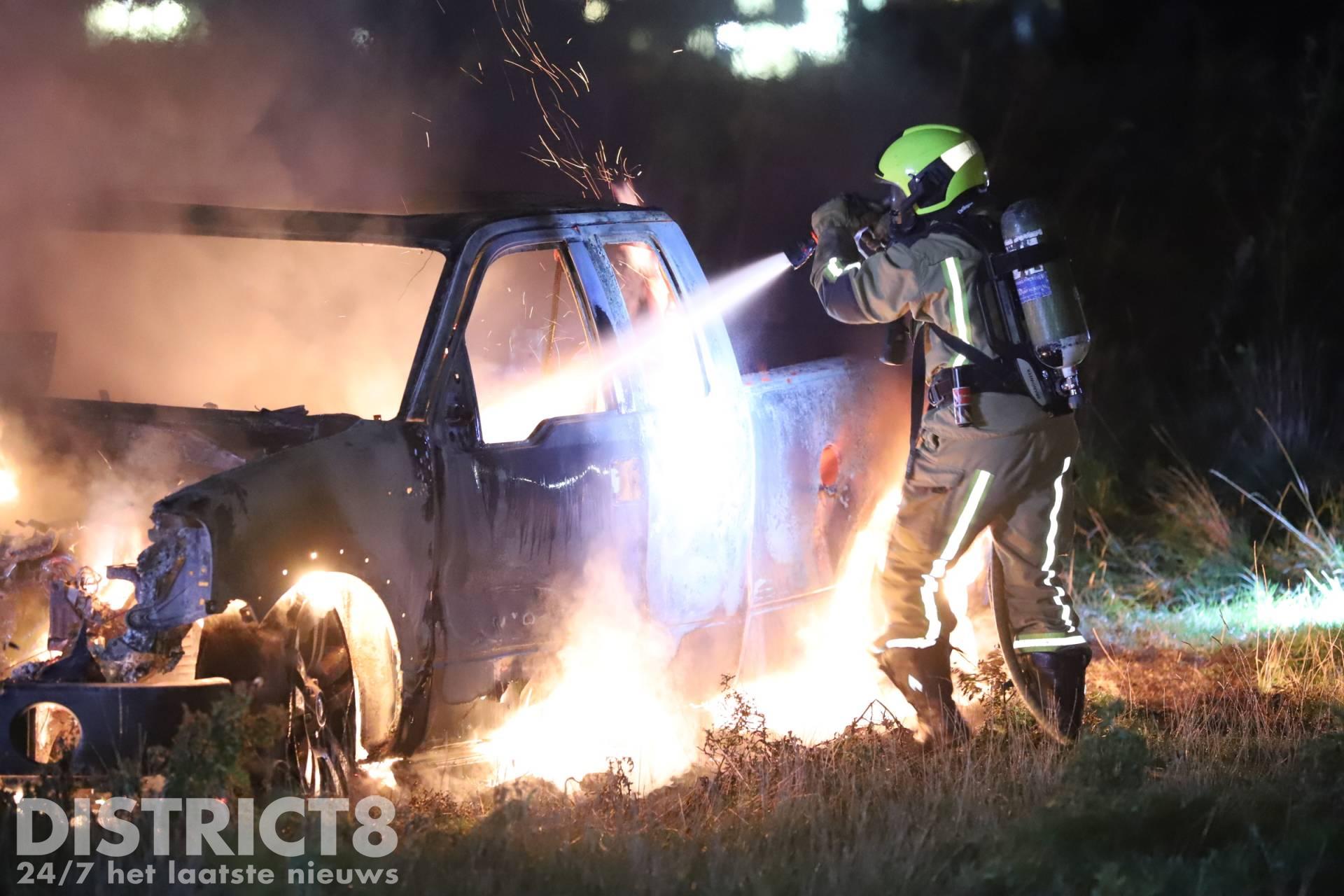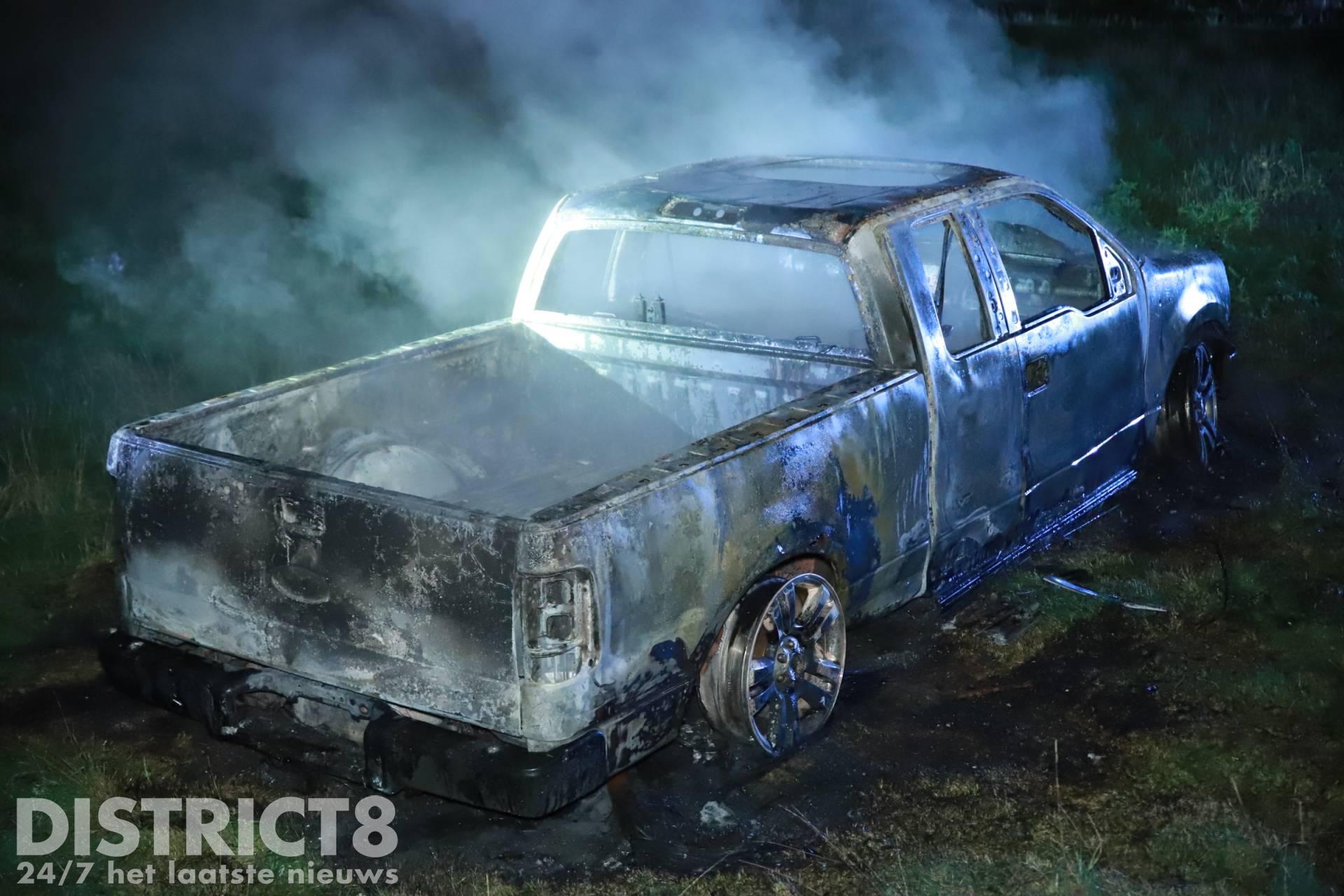 Omdat de auto al langere tijd in brand stond had de brandweer veel water nodig om de brand volledig uit te krijgen. Uiteindelijk kreeg de brandweer de brand onder controle. De brandweer heeft nog gezocht naar het kenteken van de uitgebrande Ford pick-up maar deze niet meer gevonden.