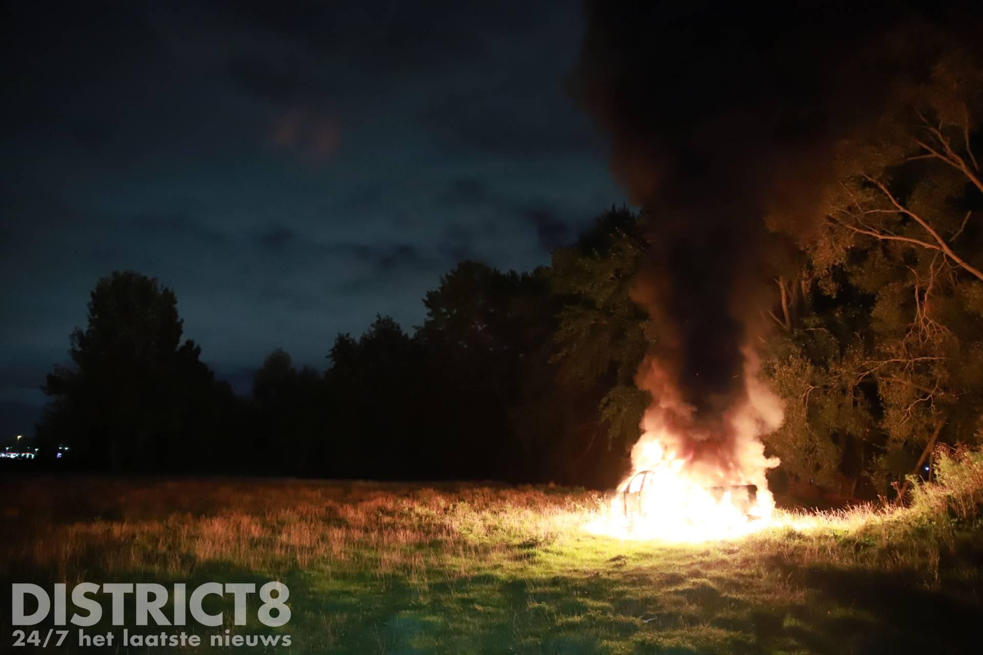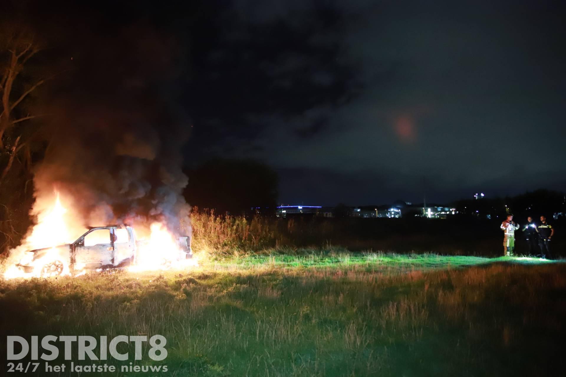Delft – Op een verlaten weiland tussen de Thijsseweg en de A13 bij Delft heeft dinsdagavond 20 september een pick-up in brand gestaan.