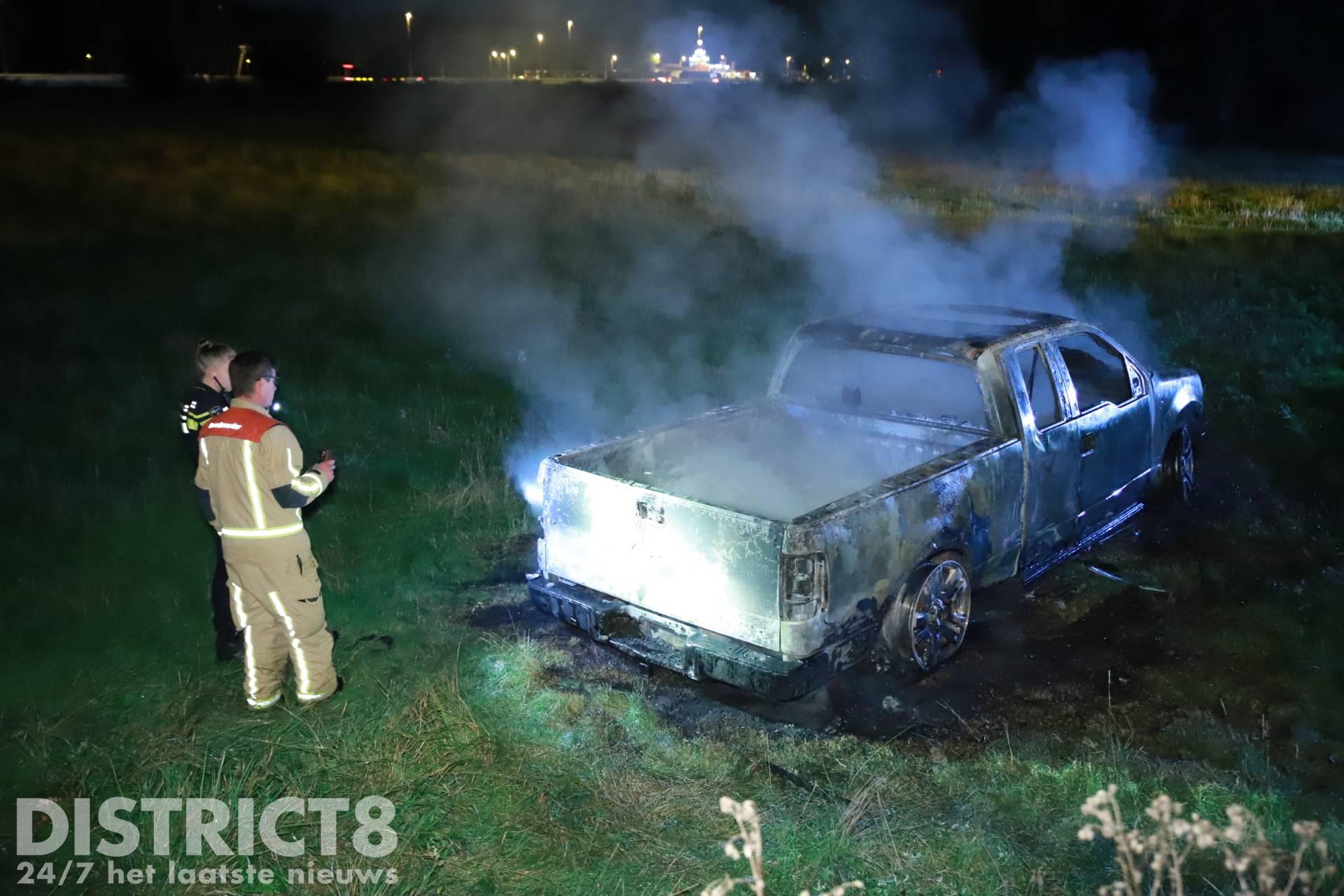 Pick-up uitgebrand op verlaten weiland Thijsseweg Delft